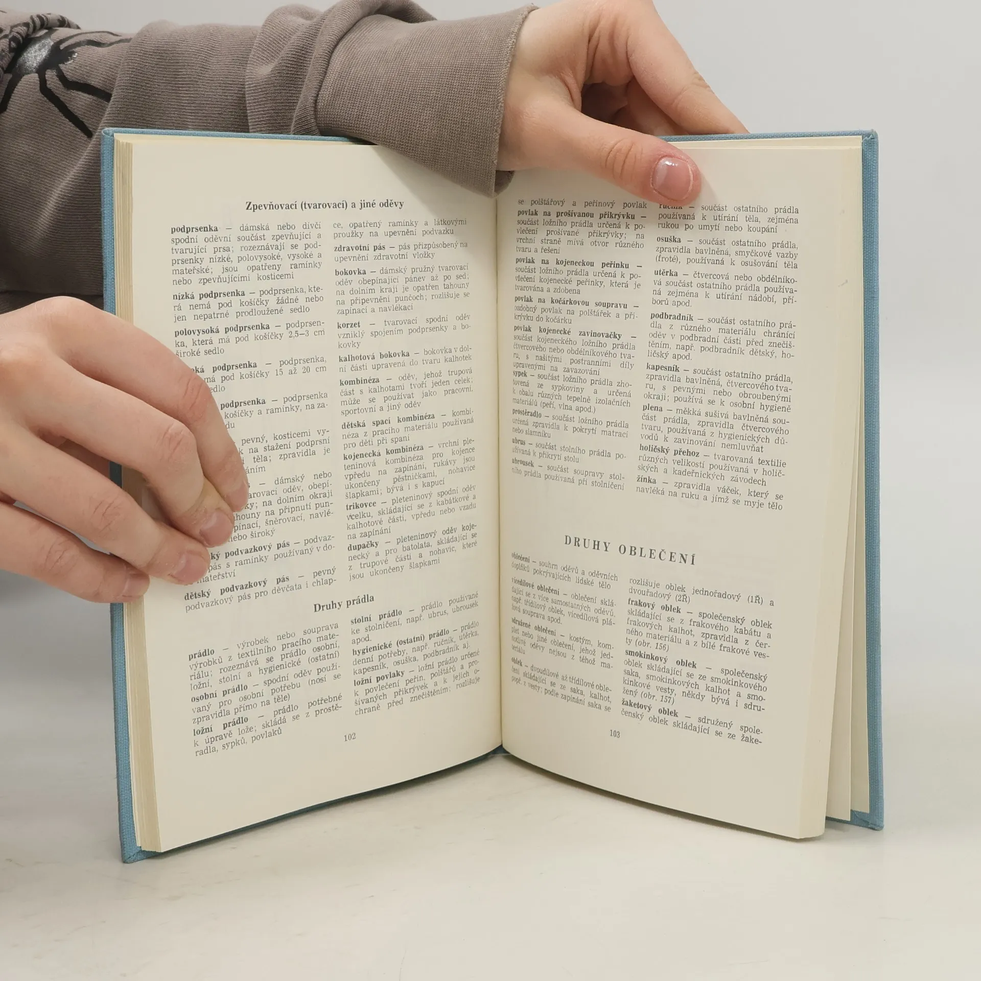 Učebnice pro studenty oděvnictví. Obsahuje terminologii z daného oboru obohacenou obrázky. Součástí jsou jednotlivé procesy výroby.