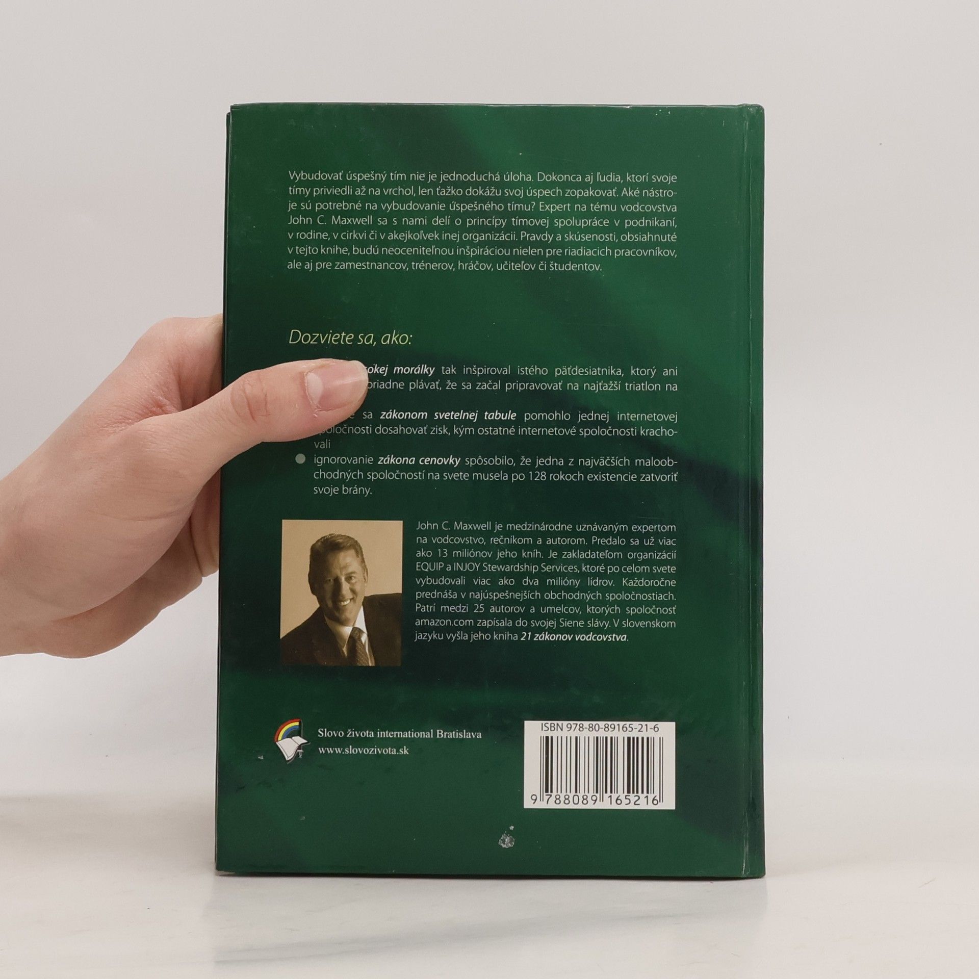 Vybudovať úspešný tím nie je jednoduchá úloha. Dokonca aj ľudia, ktorí svoje tímy priviedli až na vrchol, len ťažko dokážu svoj úspech zopakovať. Aké nástroje sú potrebné na vybudovanie úspešného tímu? Expert na tému vodcovstva John C. Maxwell sa s nami delí o princípy tímovej spolupráce v podnikaní, v rodine, v cirkvi či v akejkoľvek inej organizácii. Pravdy a skúsenosti, obsiahnuté v tejto knihe, budú neoceniteľnou inšpiráciou nielen pre riadiacich pracovníkov, ale aj pre zamestnancov, trénerov, hráčov, učiteľov či študentov.