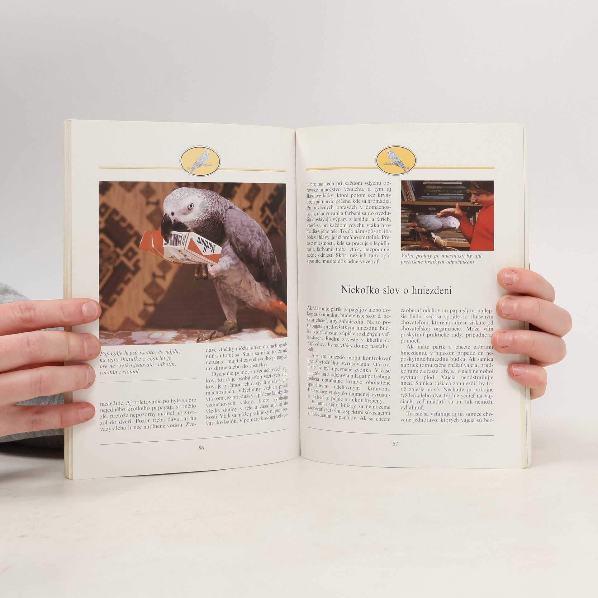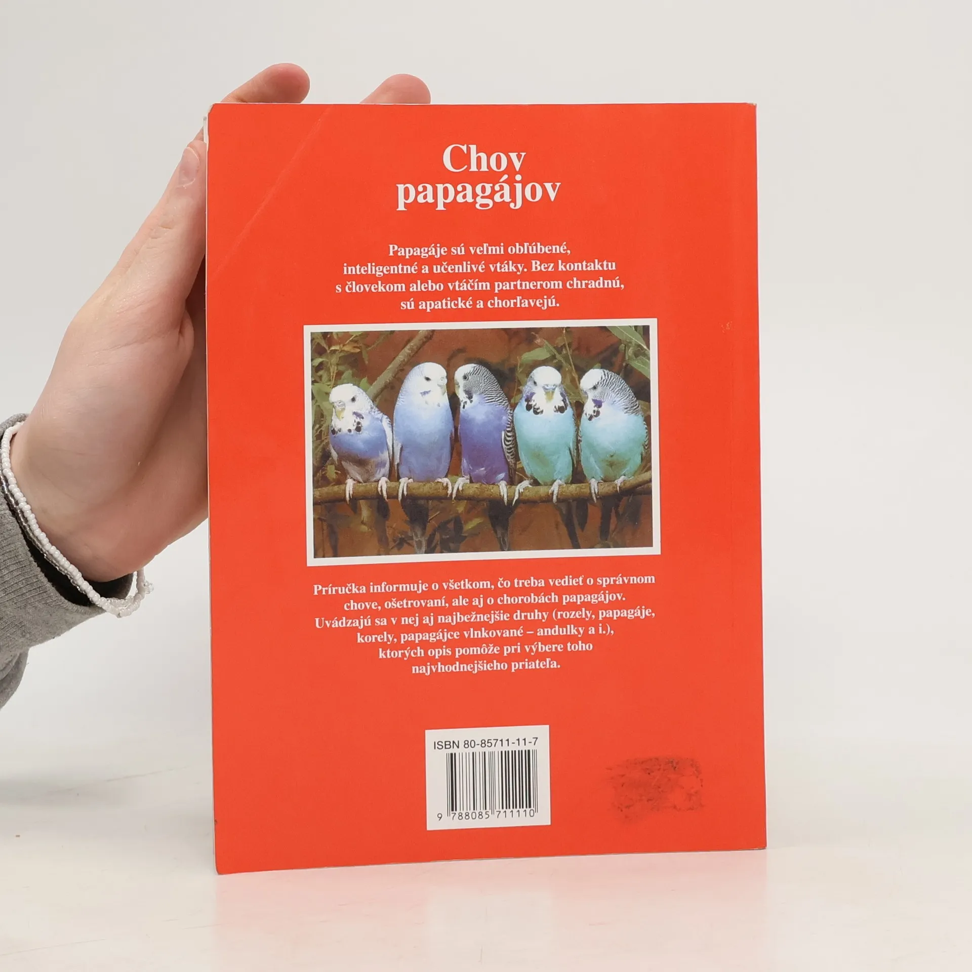 Príručka pre záujemcov o chov papagájov - ako vybrať toho správneho, ako s ním žiť, zaobchádzať, čo robiť, keď ochorie. Kniha obsahuje charakteristiku a vyobrazenie 15 najbežnejších druhov.