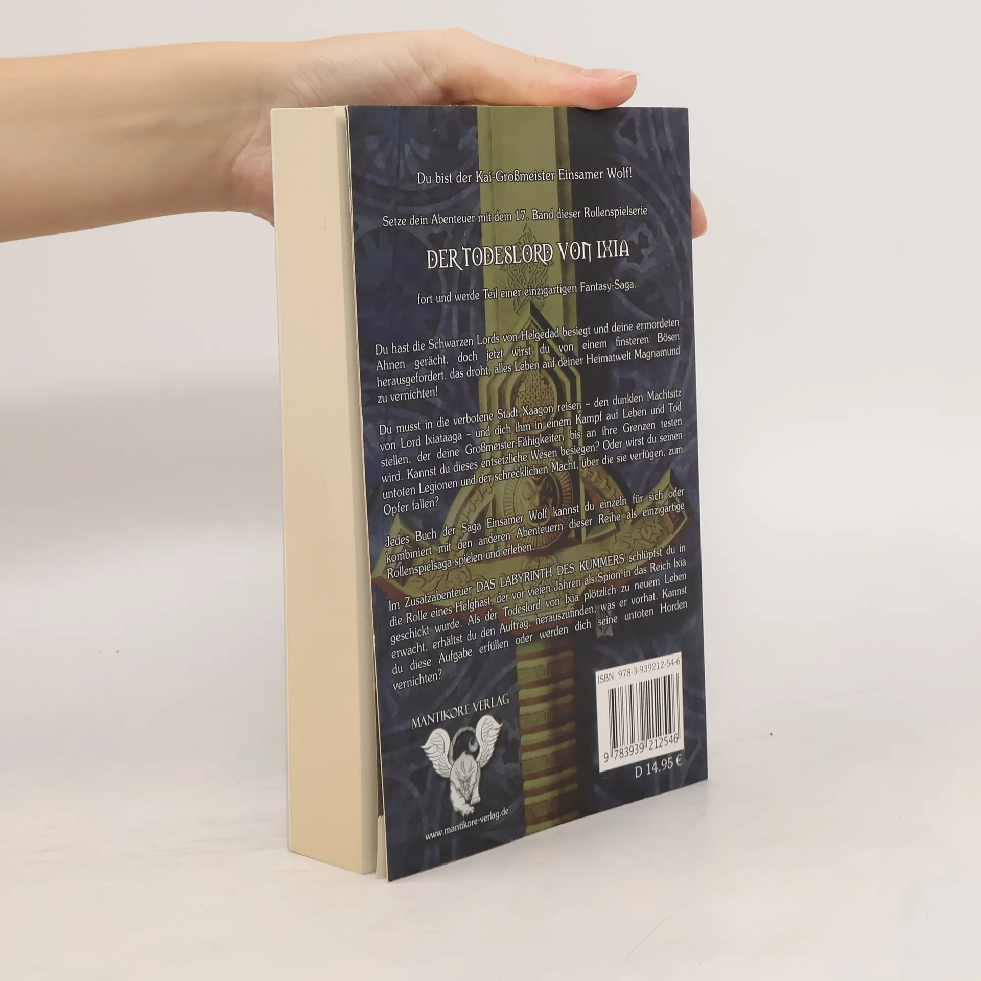Setze dein Abenteuer mit dem 17. Band dieser RollenspielserieDER TODESLORD VON IXIAfort und werde Teil einer einzigartigen Fantasy-Saga.Du hast die Schwarzen Lords von Helgedad besiegt und deine ermordeten Ahnen gerächt, doch jetzt wirst du von einem finsteren Bösen herausgefordert, das droht, alles Leben auf deiner Heimatwelt Magnamund zu vernichten!Du musst in die verbotene Stadt Xaagon reisen – dem dunklen Machtsitz von Lord Ixiataaga – und dich ihm in einem Kampf auf Leben und Tod stellen, der deine Großmeister-Fähigkeiten bis an ihre Grenzen testen wird. Kannst du dieses entsetzliche Wesen besiegen? Oder wirst du seinen untoten Legionen und der schrecklichen Macht, über die sie verfügen, zum Opfer fallen?Jedes Buch der Saga Einsamer Wolf kannst du einzeln für sich oder kombiniert mit den anderen Abenteuern dieser Reihe als einzigartige Rollenspielsaga spielen und erleben.Im Zusatzabenteuer DAS LABYRINTH DES KUMMERS schlüpfst du in die Rolle eines Helghast, der vor vielen Jahren von den inzwischen toten Schwarzen Lords als Spion in das Reich Ixia geschickt wurde. Als der Todeslord von Ixia plötzlich zu neuem Leben erwacht, erhältst du den Auftrag, herauszufinden, was er vorhat. Kannst du diese Aufgabe erfüllen oder werden dich seine untoten Horden vernichten?