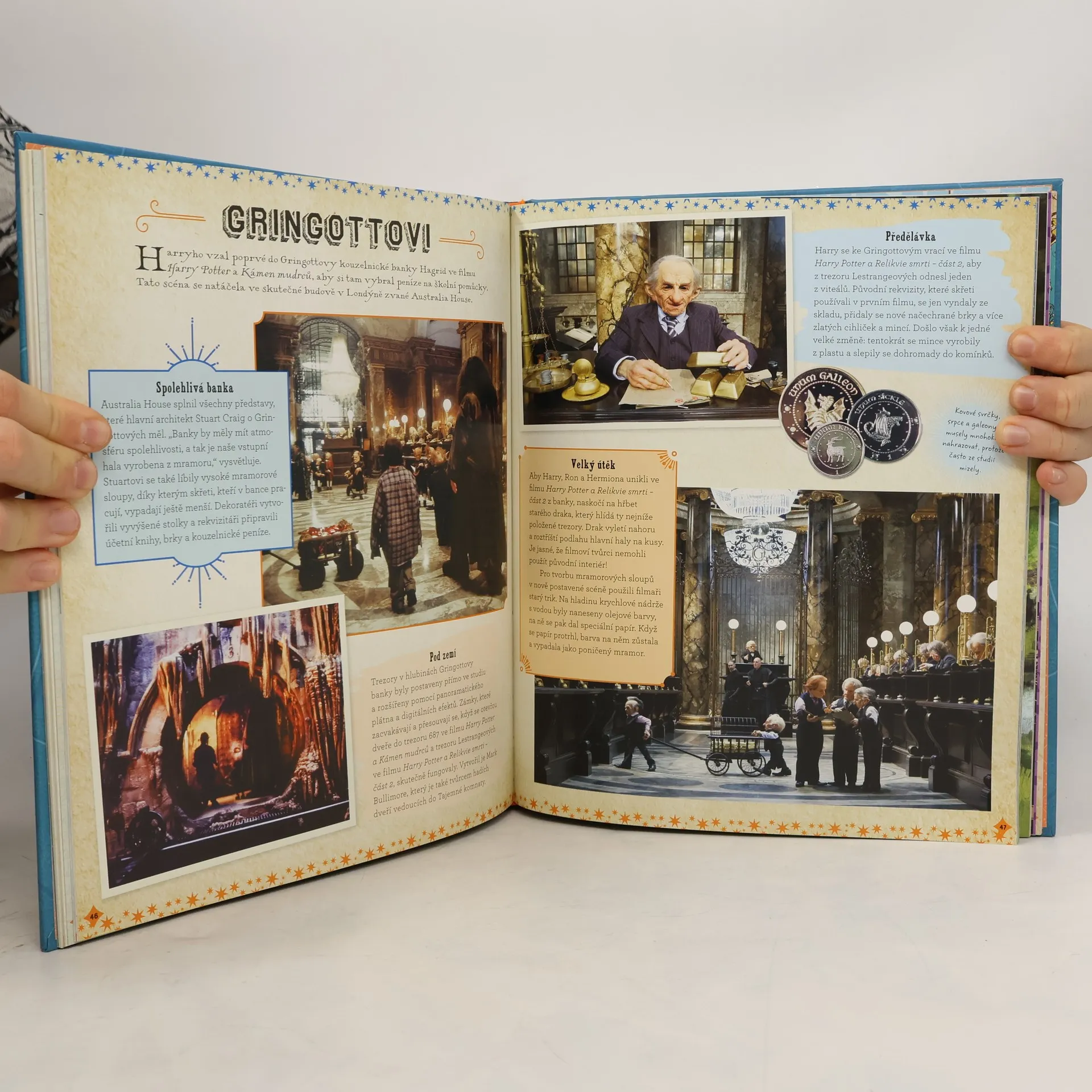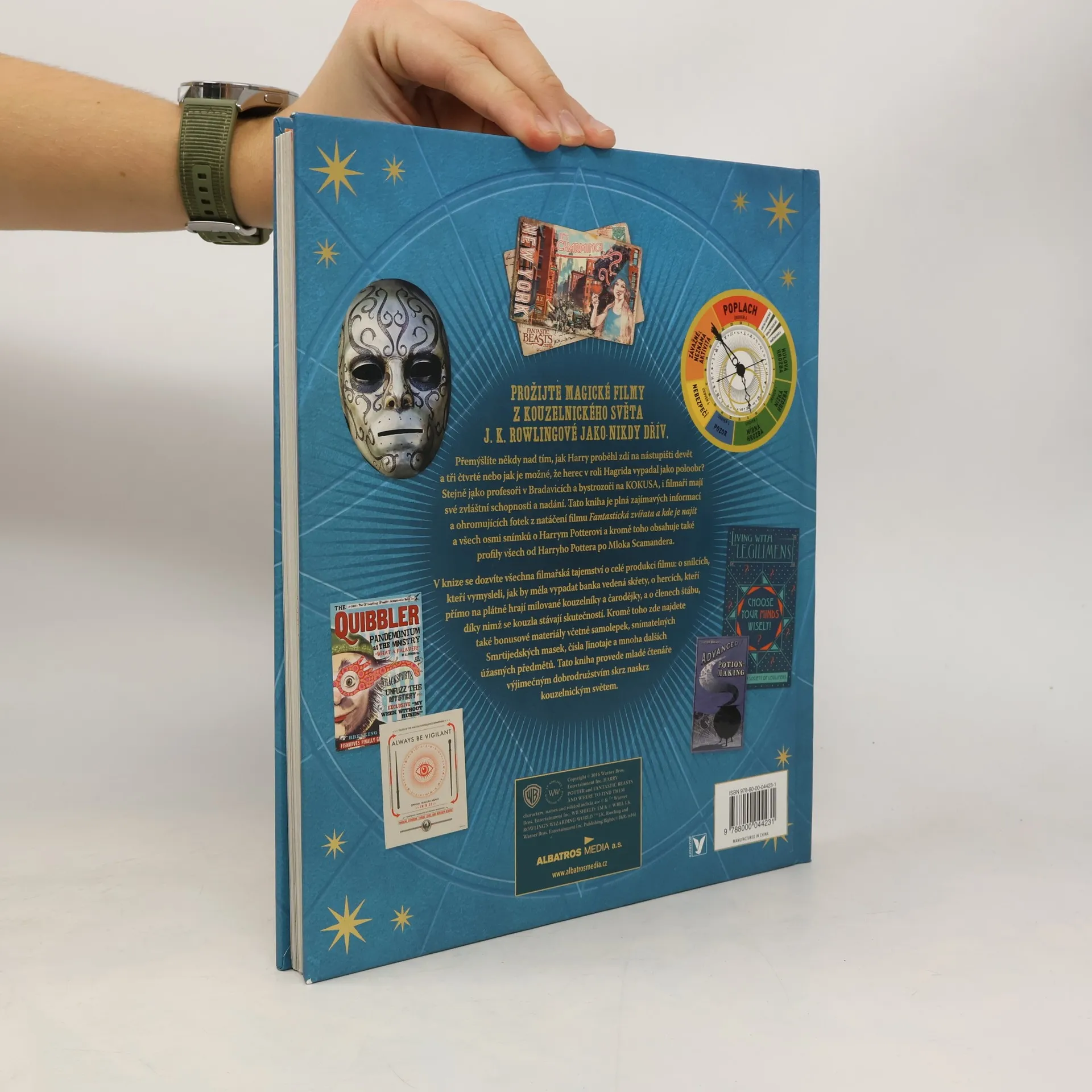 Prožijte magické filmy z kouzelnického světa J. K. Rowlingové jako nikdy dřív. Přemýšleli jste někdy nad tím, jak Harry proběhl zdí na nástupišti devět a tři čtvrtě nebo jako je možné, že herec v roli Hagrida vypadal jako poloobr? Stejně jako profesoři v Bradavicích a bystrozoři na KOKUSA, i filmaři mají zvláštní schopnosti a nadání. Tato kniha je plná zajímavých informací a ohromujících fotek z natáčení filmu Fantastická zvířata a kde je najít a všech osmi snímků o Harrym Potterovi. Kromě toho obsahuje také profily všech od Harryho Pottera po Mloka Scamandera. V knize se dozvíte všechna filmařská tajemství o celé produkci filmu: o snílcích, kteří vymysleli, jak by měla vypadat banka vedená skřety, o hercích, kteří přímo na plátně hrají milované kouzelníky a čarodějky, a o členech štábu, díky nimž se kouzla stávají skutečností. Kromě toho zde najdete také bonusové materiály včetně samolepek, snímatelných smrtijedských masek, čísla Jinotaje a mnoha dalších úžasných předmětů. Tato kniha provede mladé čtenáře výjimečným dobrodružstím skrz naskrz kouzelnickým světem.