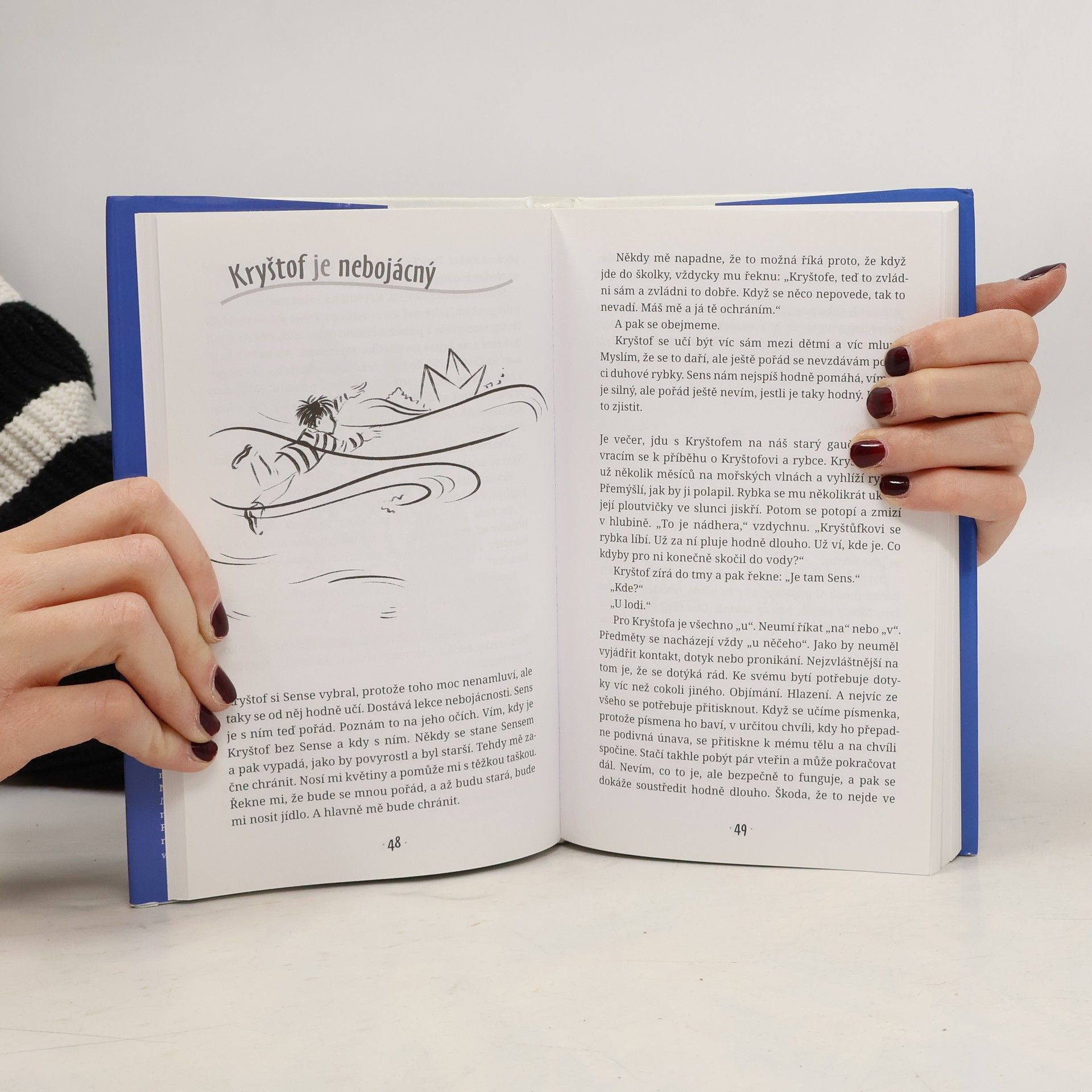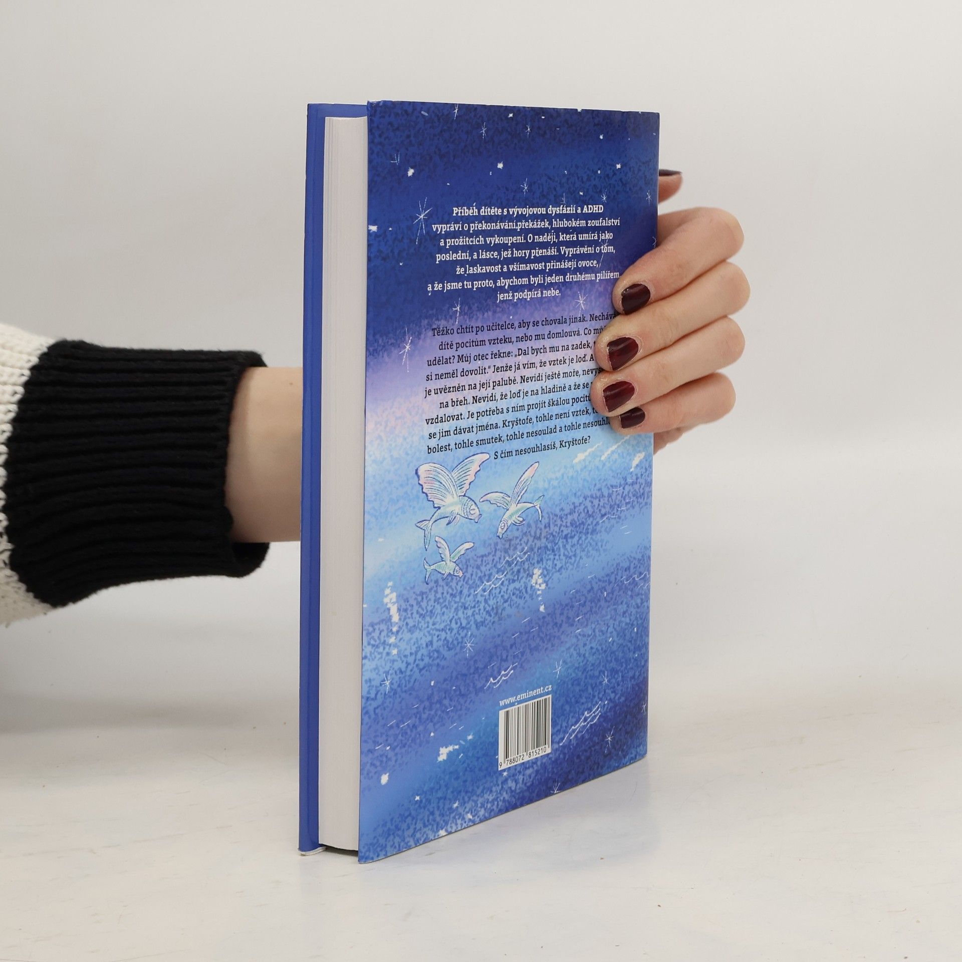 Příběh dítěte s vývojovou dysfázií a ADHD vypráví o překonávání překážek, hlubokém zoufalství a prožitcích vykoupení. O naději, která umírá jako poslední, a lásce, jež hory přenáší. Vyprávění o tom, že laskavost a všímavost přinášejí ovoce, a že jsme tu proto, abychom byli jeden druhému pilířem, jenž podpírá nebe. Těžko chtít po učitelce, aby se chovala jinak. Nechává dítě pocitům vzteku, nebo mu domlouvá. Co může udělat? Můj otec řekne: „Dal bych mu na zadek, tohle by si neměl dovolit.“ Jenže já vím, že vztek je loď. A Kryštof je uvězněn na její palubě. Nevidí ještě moře, nevystoupil na břeh. Nevidí, že loď je na hladině a že se může vzdalovat. Je potřeba s ním projít škálou pocitů a naučit se jim dávat jména. Kryštofe, tohle není vztek, tohle je bolest, tohle smutek, tohle nesoulad a tohle nesouhlas. S čím nesouhlasíš, Kryštofe?