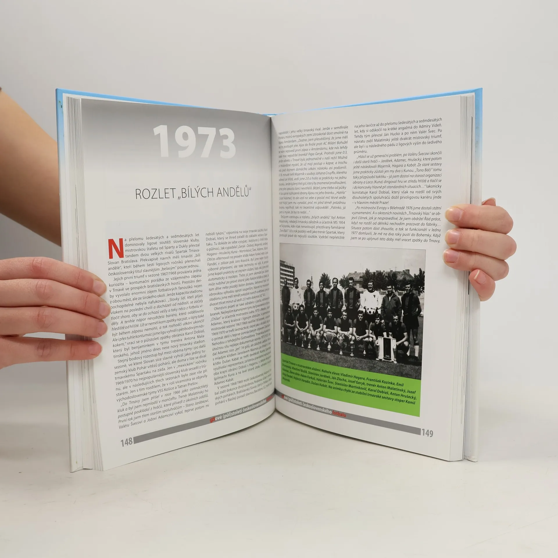 Kniha spojuje a zároveň oslavuje dvě letošní kulatá výročí – sto let od založení Československa a půlstoletí existence nejstaršího tuzemského časopisu. Co rok, to příběh z fotbalového prostředí. Nevšedního úkolu se ujali tři zkušení muži - novináři Miloslav Jenšík, Jaroslav Kolář a Václav Tichý, kteří zažili fotbal z různých pozic a mnohé z toho, o čem píší, zažili na vlastní kůži. Co třeba najdete ve stovce příběhů? Jak paní Sedláčková narušila olympiádu v roce 1924 v Paříži, proč fotbalová reprezentace v baráži s Maďarskem v prosinci 1969 střídala při vedení 4:0 minutu před koncem svého brankáře? O Panenkově penaltě z Bělehradu 1976 bylo napsáno vše, ale jak finále a jeho dozvuky po návratu prožil jediný československý fotoreportér Stanislav Tereba, který málem přišel o práci, asi zná málokdo. Jak se Vladimíru Šmicerovi odvděčil kouč Benítez za vítězství Liverpoolu v Lize mistrů? Co zlomového se přihodilo v kabině před zápasem s Řeckem na EURO 2012 v Polsku, že Češi na soupeře „vlítli“ a za šest minut dali dvě branky? A samozřejmě mnoho dalších zajímavostí, vždy s doprovodnými fotografiemi. Pokud nebyly z některého roku k „mání“ nebo ve špatné kvalitě, tak je plnohodnotně zastoupily originální kresby Petra Urbana a Milana Kounovského.