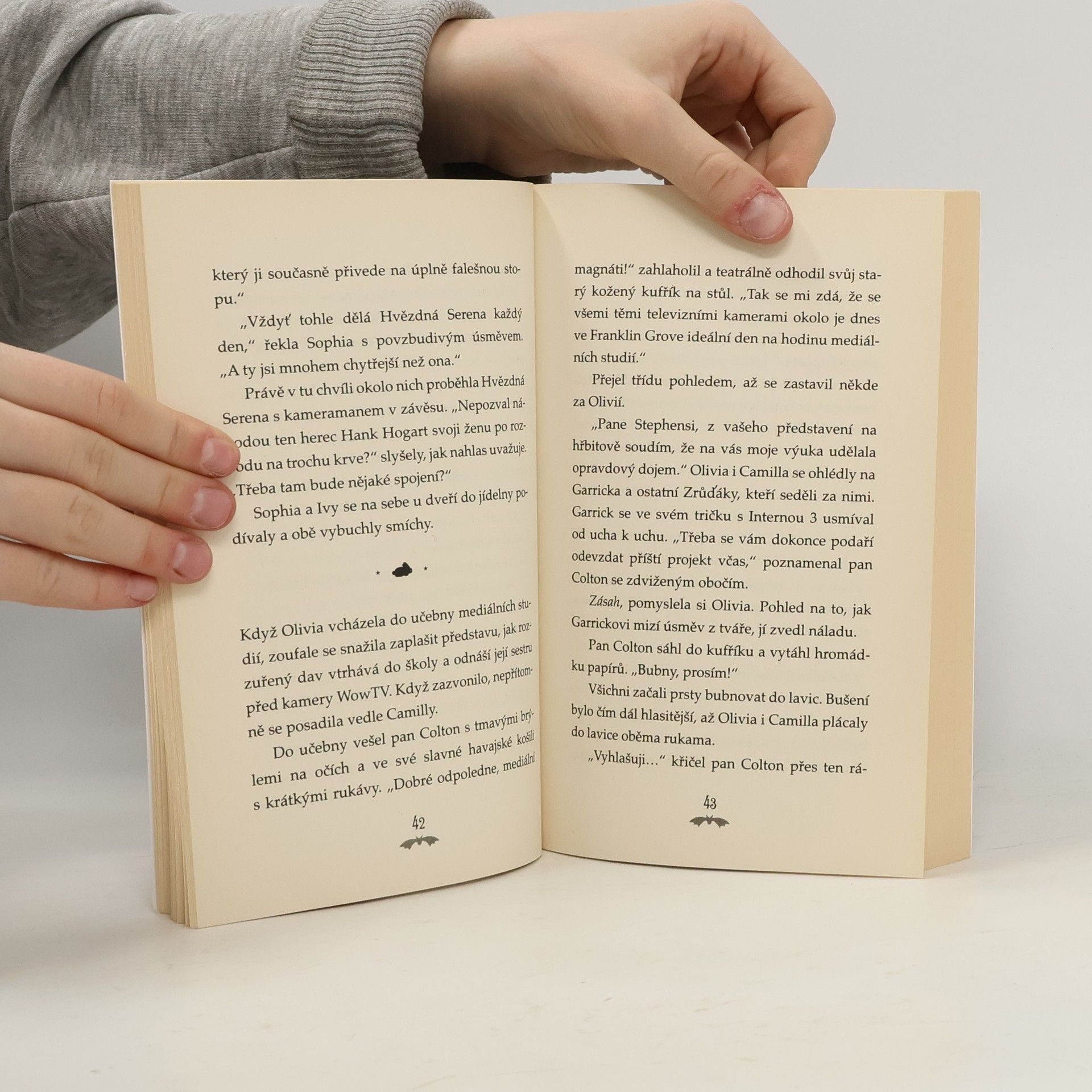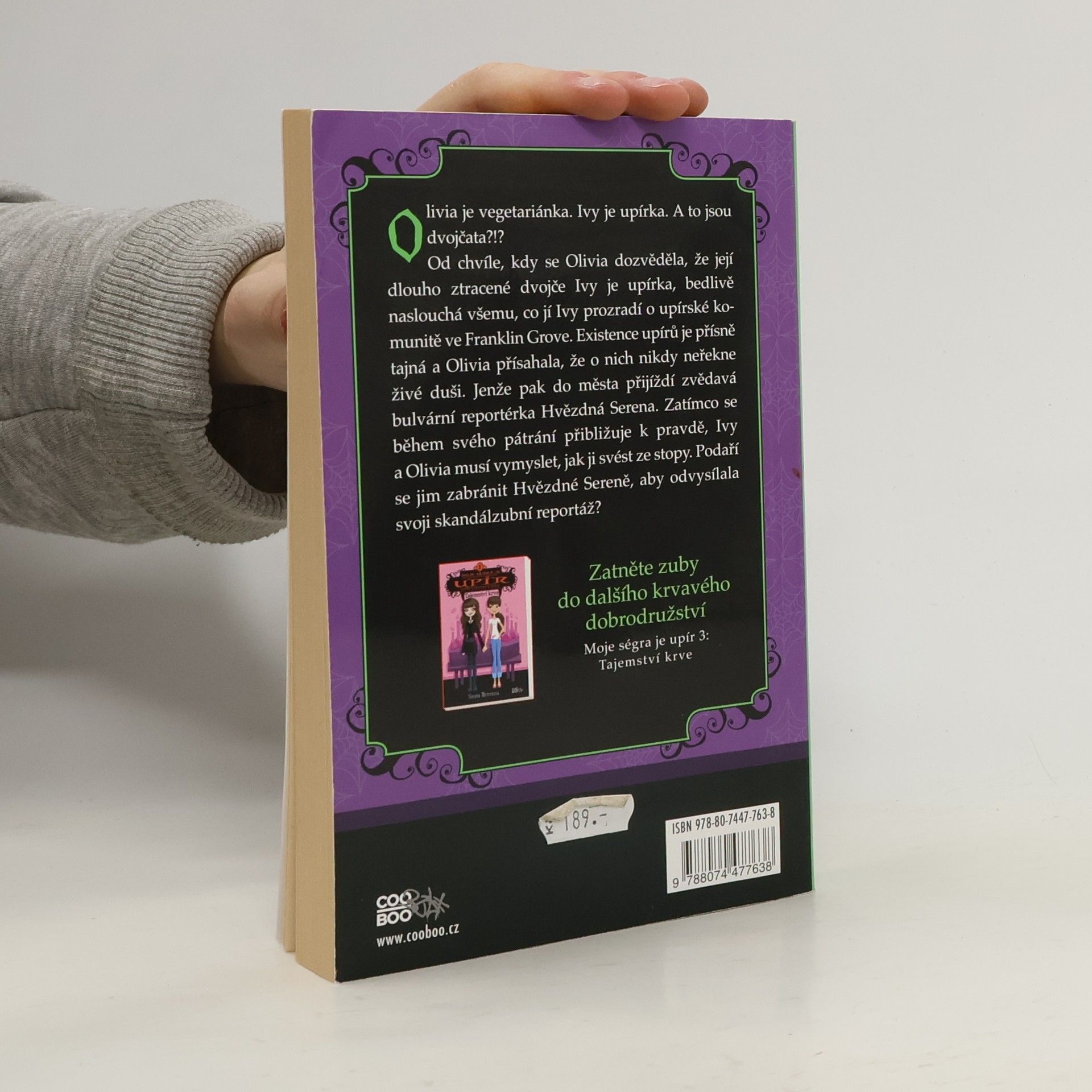 Olivia je vegetariánka. Ivy je upírka. A to jsou dvojčata?!? Od chvíle, kdy se Olivia dozvěděla, že její dlouho ztracené dvojče Ivy je upírka, bedlivě naslouchá všemu, co jí Ivy prozradí o upírské komunitě ve Franklin Grove. Existence upírů je přísně tajná a Olivia přísahala, že o nich nikdy neřekne žádné živé duši. Jenže pak do města přijíždí zvědavá bulvární reportérka Hvězdná Serena. Zatímco se během svého pátrání přibližuje k pravdě, Ivy a Olivia musí vymyslet, jak ji svést ze stopy. Podaří se jim zabránit Hvězdné Sereně, aby odvysílala svoji skandálzubní reportáž?