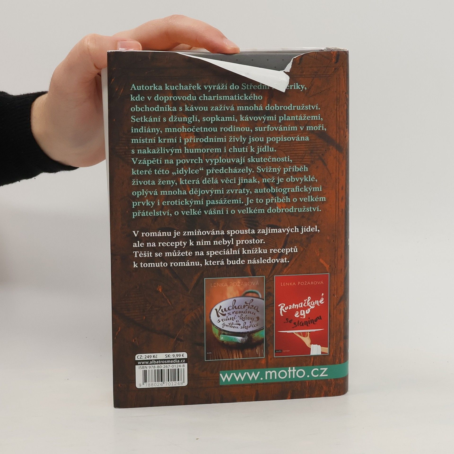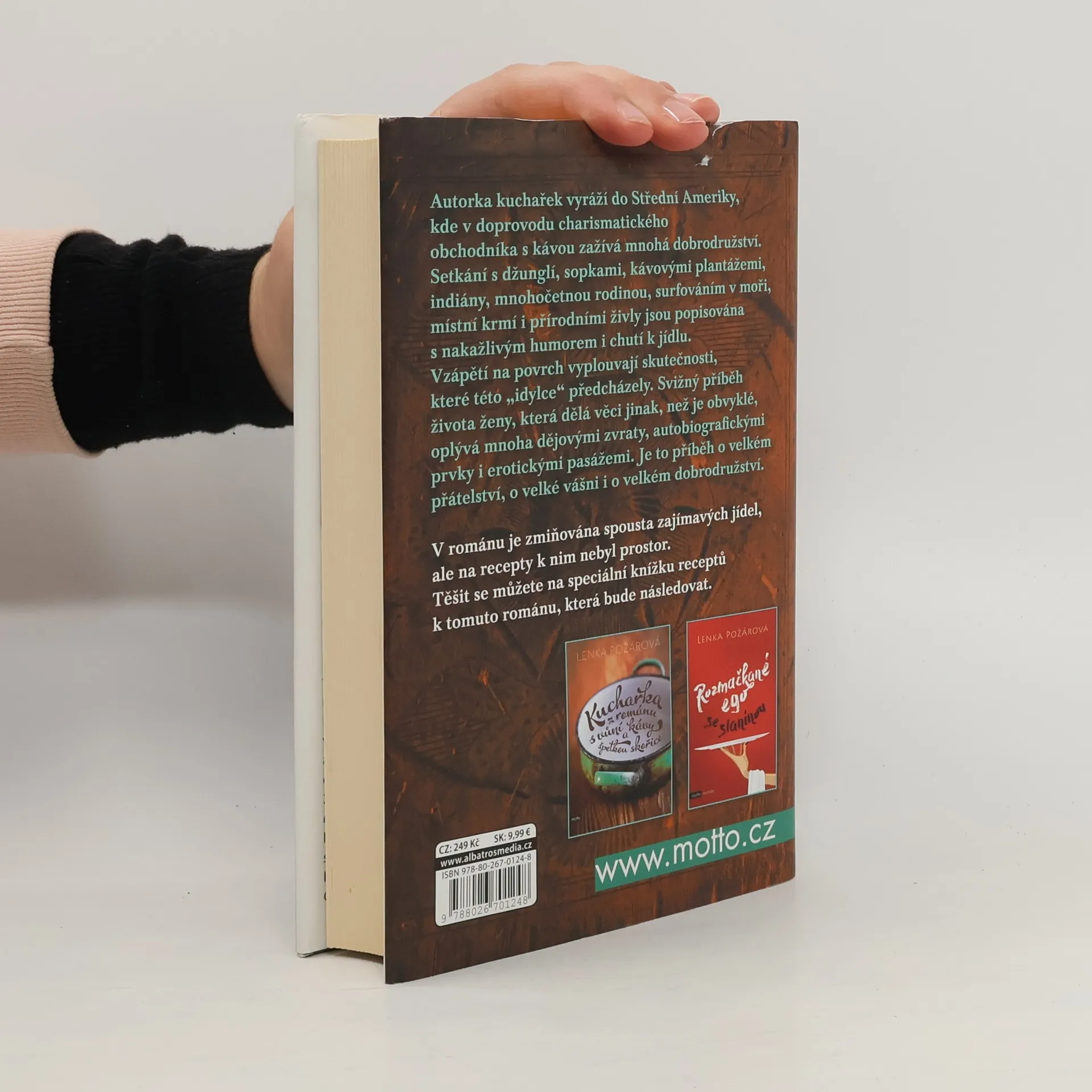 Autorka kuchařek vyráží do Střední Ameriky, kde v doprovodu neobyčejně charismatického obchodníka s kávou zažívá mnohá dobrodružství. Tento svižný příběh o ženě, která dělá věci jinak, než je obvyklé, oplývá mnoha dějovými zvraty a je popisován s nakažlivým humorem i chutí k jídlu.