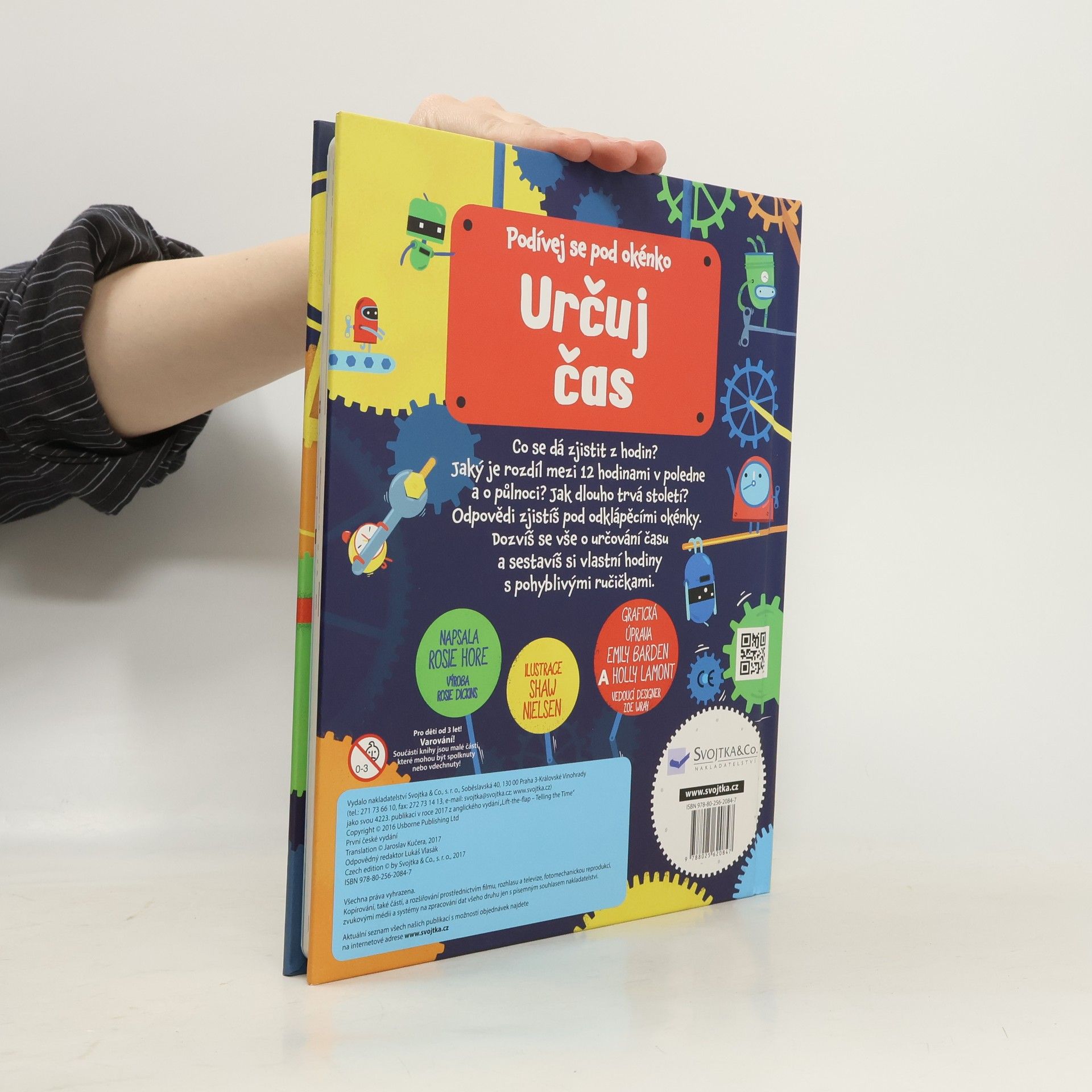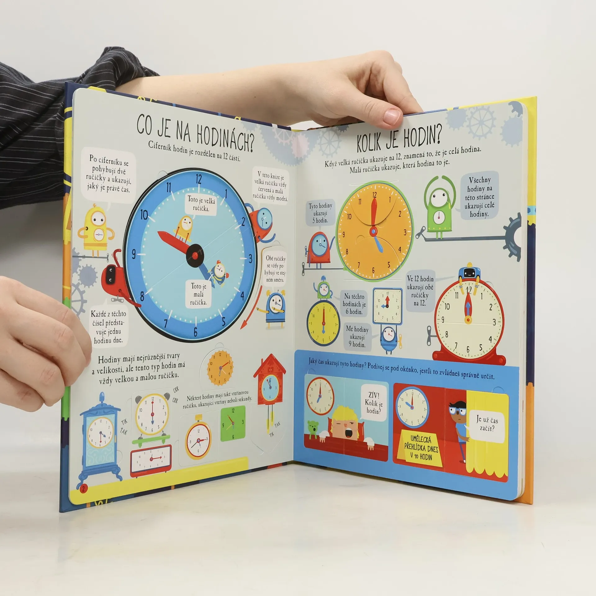 Čas. Nikdo ho nikdy neviděl, lidé si pořád stěžují, že ho mají málo. Čas ovlivňuje naše životy. Co je to vlastně čas? Co všechno se dá zjistit z hodin? Jaký je rozdíl mezi 12 hodinami v poledne a o půlnoci? Jak dlouho trvá století nebo milénium? Odpovědi na všechny své otázky o čase zjistíš pod odklápěcími okénky. Dozvíš se vše o určování času a postavíš si vlastní hodiny s pohyblivými ručičkami. Tak neztrácej čas a procvič se v určování času! České vydání publikace nakladatelství Usborne.