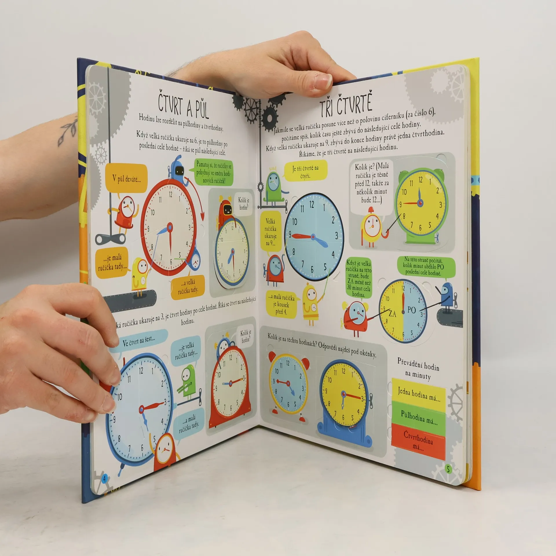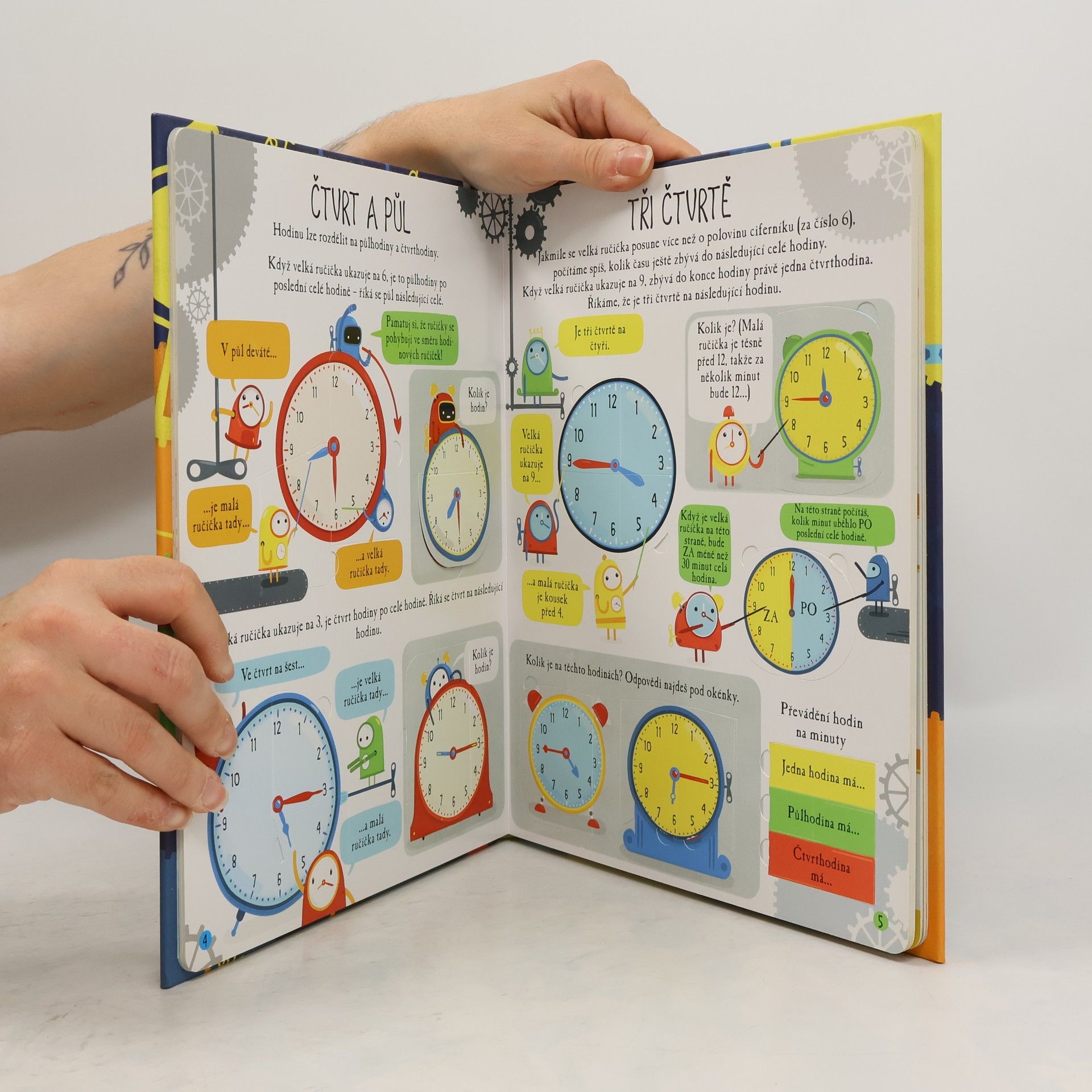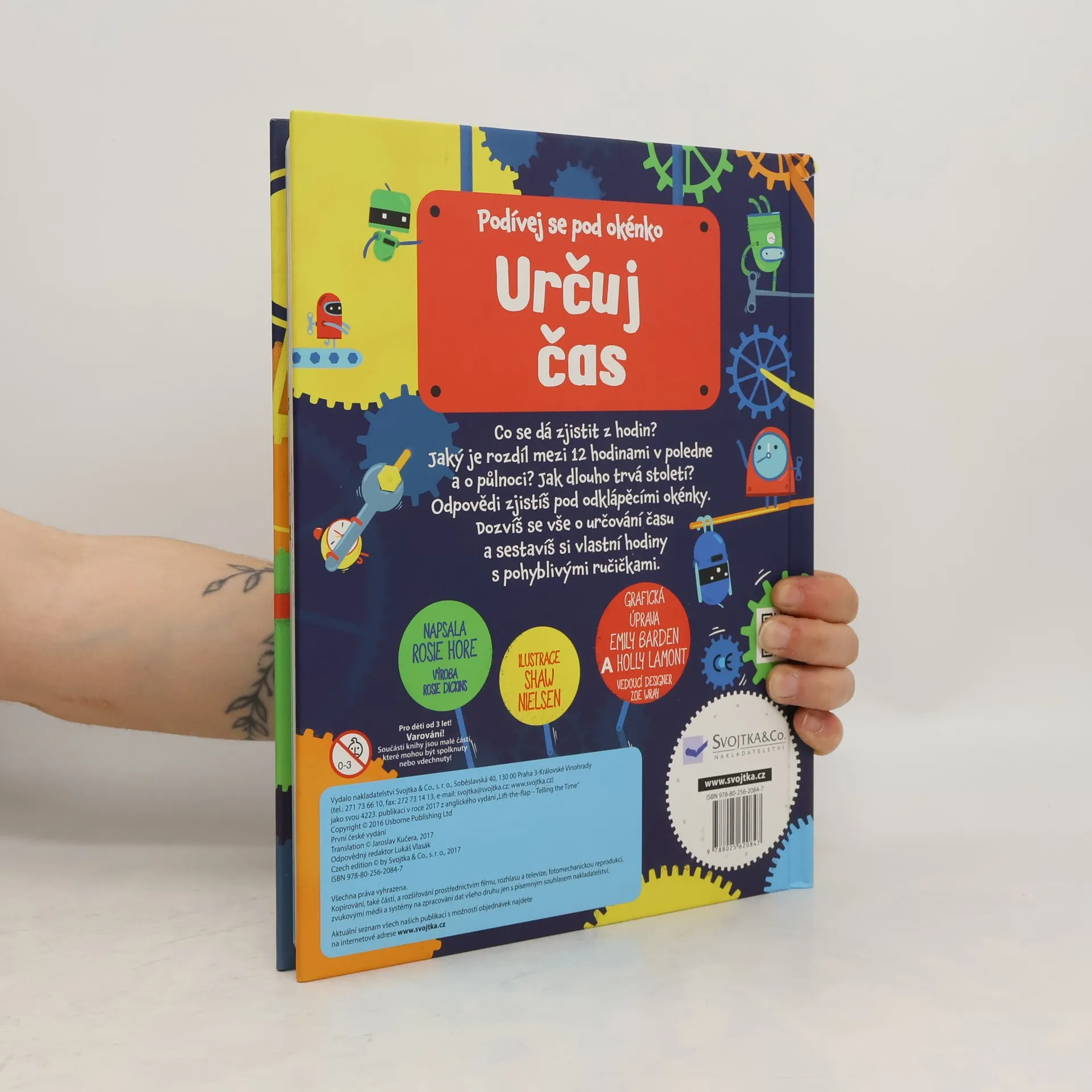 Čas. Nikdo ho nikdy neviděl, lidé si pořád stěžují, že ho mají málo. Čas ovlivňuje naše životy. Co je to vlastně čas? Co všechno se dá zjistit z hodin? Jaký je rozdíl mezi 12 hodinami v poledne a o půlnoci? Jak dlouho trvá století nebo milénium? Odpovědi na všechny své otázky o čase zjistíš pod odklápěcími okénky. Dozvíš se vše o určování času a postavíš si vlastní hodiny s pohyblivými ručičkami. Tak neztrácej čas a procvič se v určování času! České vydání publikace nakladatelství Usborne.