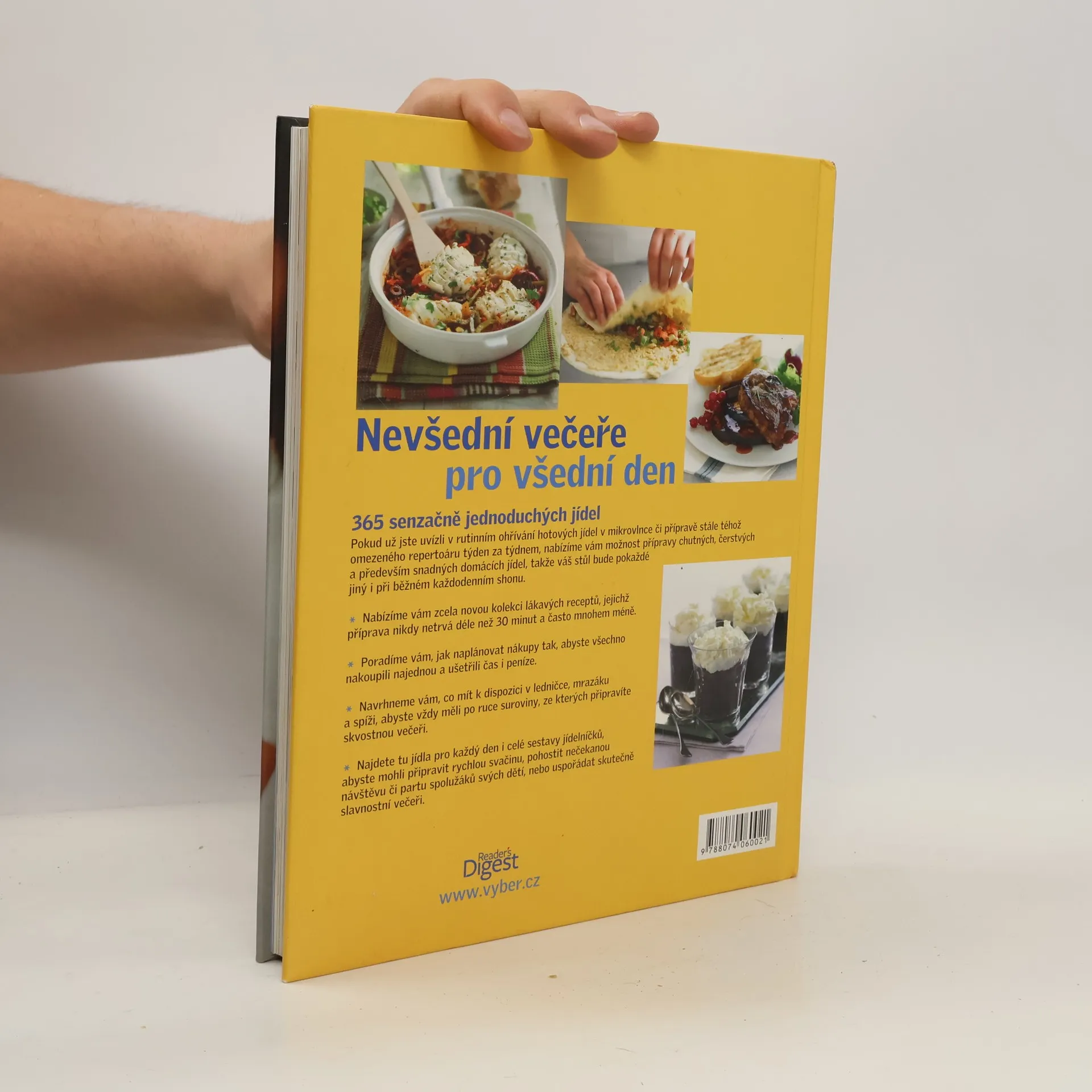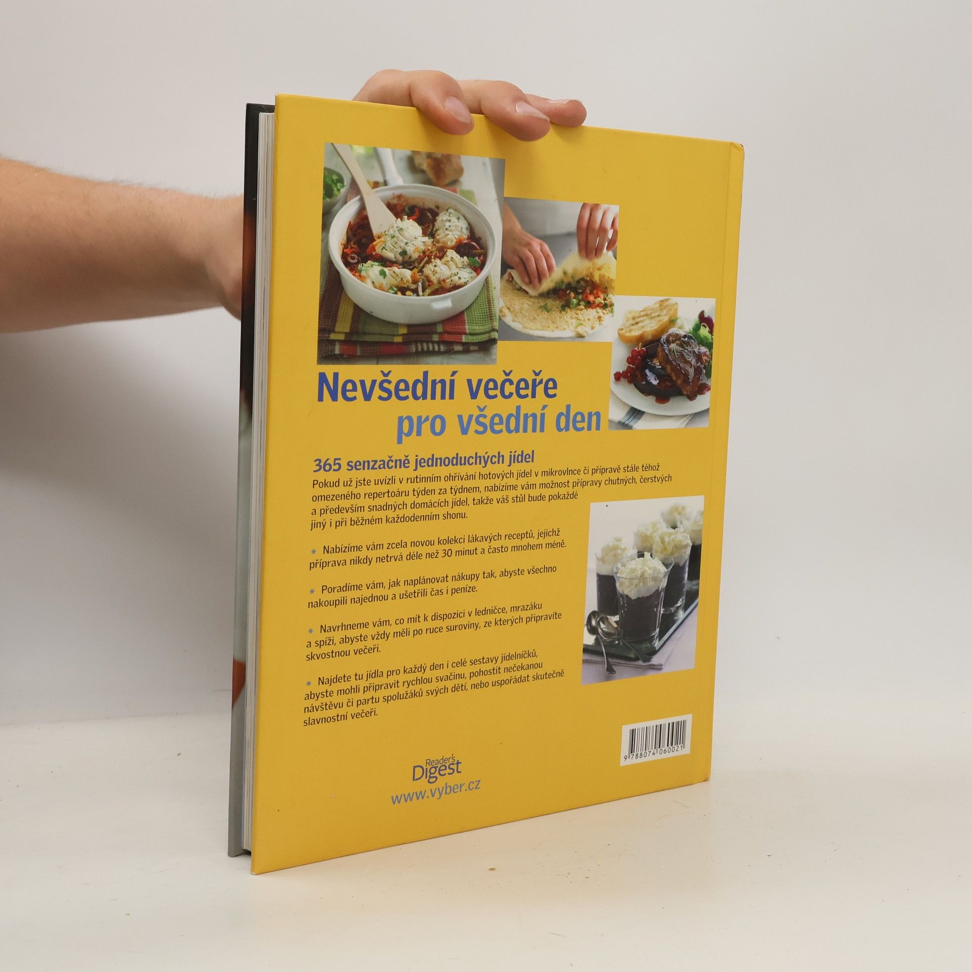 Kuchařka NEVŠEDNÍ VEČEŘE PRO VŠEDNÍ DEN je opravdu výjimečná. Přináší 365 rychlých a snadných receptů – na každý den v roce jeden. Bez ohledu na to, jak jste zaneprázdněni, s touto knihou si doma zvládnete připravit chutný čerstvý pokrm každý večer.
