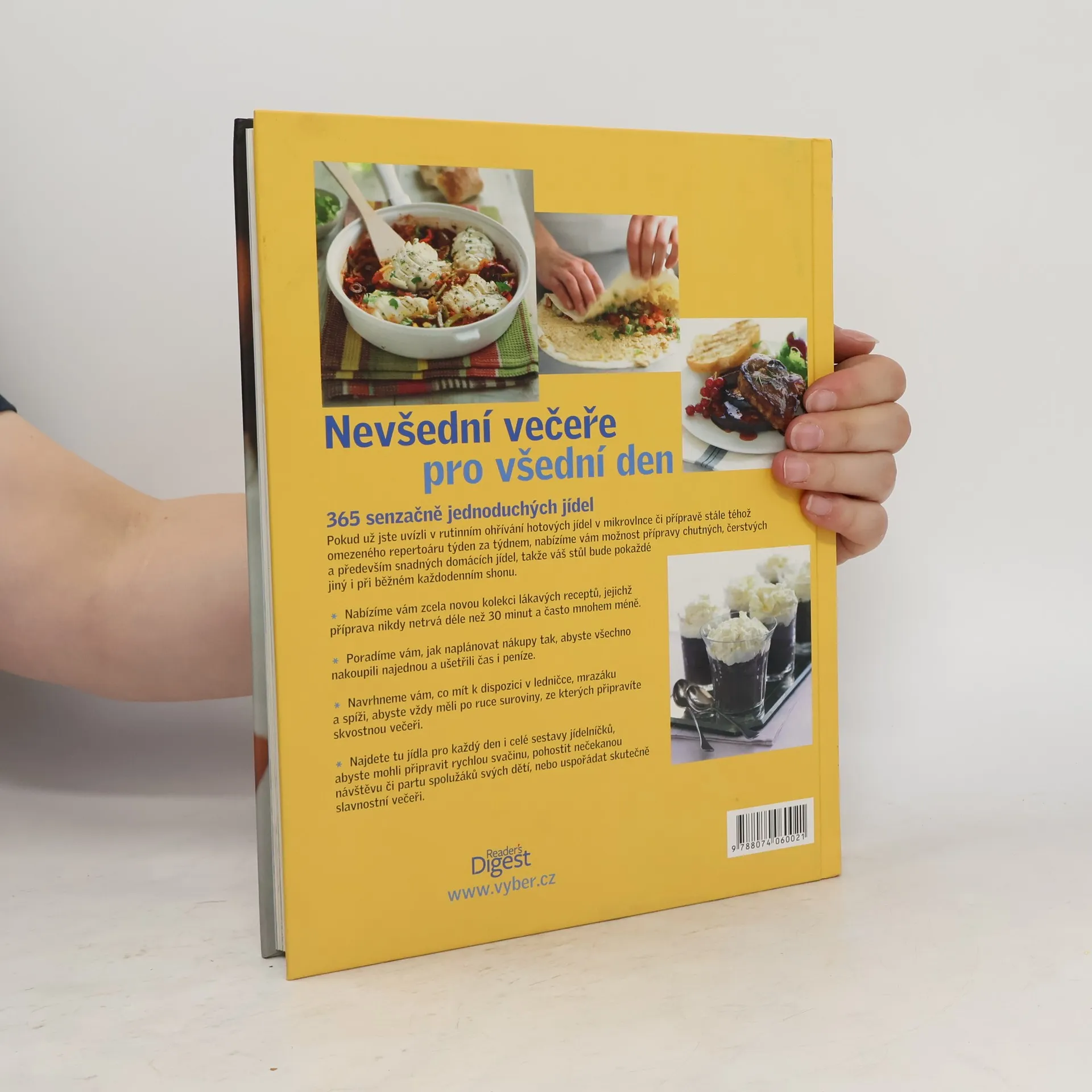 Kuchařka NEVŠEDNÍ VEČEŘE PRO VŠEDNÍ DEN je opravdu výjimečná. Přináší 365 rychlých a snadných receptů – na každý den v roce jeden. Bez ohledu na to, jak jste zaneprázdněni, s touto knihou si doma zvládnete připravit chutný čerstvý pokrm každý večer.