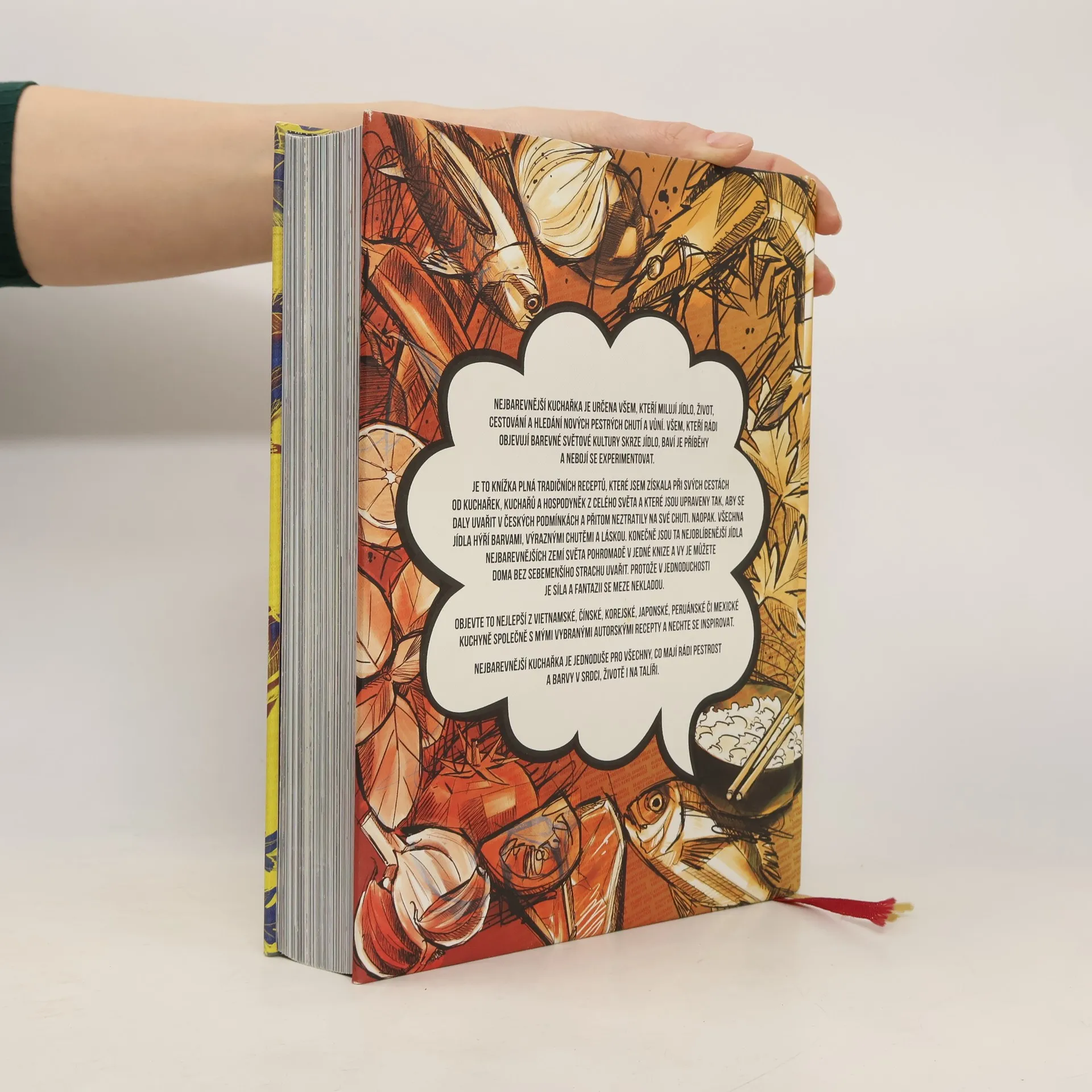 Je určena všem, kteří milují jídlo, život, cestování a hledání nových pestrých chutí a vůní. Všem, kteří rádi objevují barevné světové kultury skrze jídlo, baví je příběhy a nebojí se experimentovat. Je to knížka plná tradičních receptů, které jsem získala při svých cestách od kuchařek, kuchařů a hospodyněk z celého světa a které jsou upraveny tak, aby se daly uvařit v českých podmínkách a přitom neztratily na své chuti. Naopak. Všechna jídla hýří barvami, výraznými chutěmi a láskou. Konečně jsou ta nejoblíbenější jídla nejbarevnějších zemí světa pohromadě v jedné knize a vy je můžete doma bez sebemenšího strachu uvařit. Protože v jednoduchosti je síla a fantazii se meze nekladou. Objevte to nejlepší z vietnamské, čínské, korejské, japonské, peruánské či mexické kuchyně společně s mými vybranými autorskými recepty a nechte se inspirovat. Nejbarevnější kuchařka je jednoduše pro všechny, co mají rádi pestrost a barvy v srdci, životě i na talíři.