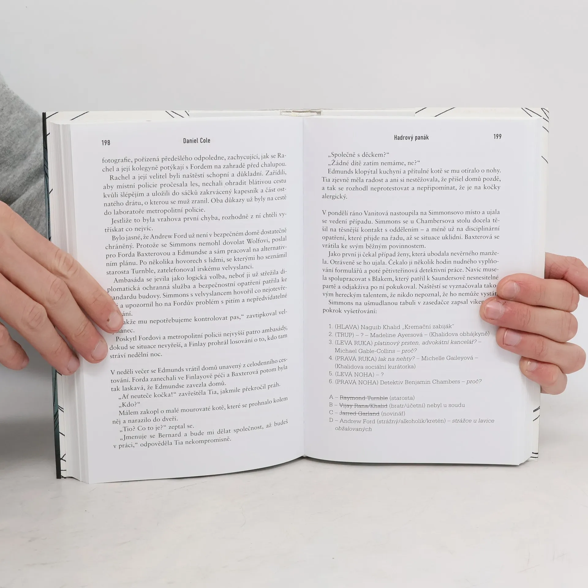 Cole se s úvodem nijak nezdržuje a hned vás vtáhne do děje, což oceňuju. Zápletka je přesně tak nechutná, jak si to současná krimi žádá. Figurína sešitá z částí různých mrtvol je originální a dost znepokojivý nápad, který slibuje pořádně vyšinutého padoucha. Postavy jsou vykreslené tak akorát .Žádné zbytečné sáhodlouhé introspekce, ale zároveň dost na to, abyste je vnímali jako živé lidi. Charakterové vady jsou šikovně rozprostřené napříč celým spektáklem a dodávají příběhu hloubku. Navíc autor výborně pracuje se suchým humorem, který dávkuje s citem a příběh díky tomu získává ten správný říz.