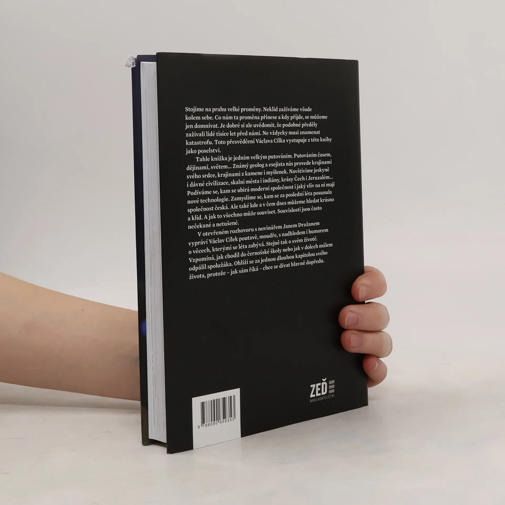 Stojíme na prahu velké proměny. Neklid zažíváme všude kolem sebe. Co nám ta proměna přinese a kdy přijde, se můžeme jen domnívat. Je dobré si ale uvědomit, že podobné předěly zažívali lidé tisíce let před námi. Ne vždycky musí znamenat katastrofu. Toto přesvědčení Václava Cílka vystupuje z této knížky jako poselství. Tahle knížka je jedním velkým putováním. Putováním časem, dějinami, světem… Známý geolog a esejista nás provede krajinami svého srdce, krajinami z kamene i myšlenek. Navštívíme jeskyně i dávné civilizace, skalní města i indiány, krásy Čech i Jeruzalém... Podíváme se, kam se ubírá moderní společnost i jaký vliv na ni mají nové technologie. Zamyslíme se, kam se za poslední léta posunula společnost česká. Ale také kde a v čem dnes můžeme hledat krásno a klid. A jak to všechno může souviset. Souvislosti jsou často nečekané a netušené. V otevřeném rozhovoru s novinářem Janem Dražanem vypráví Václav Cílek poutavě, moudře, s nadhledem i humorem o věcech, kterými se léta zabývá. Stejně tak o svém životě. Vzpomíná, jak chodil do černošské školy nebo jak v dolech málem odpálil spolužáka. Ohlíží se za jednou dlouhou kapitolou svého života, protože – jak sám říká – chce se dívat hlavně dopředu.