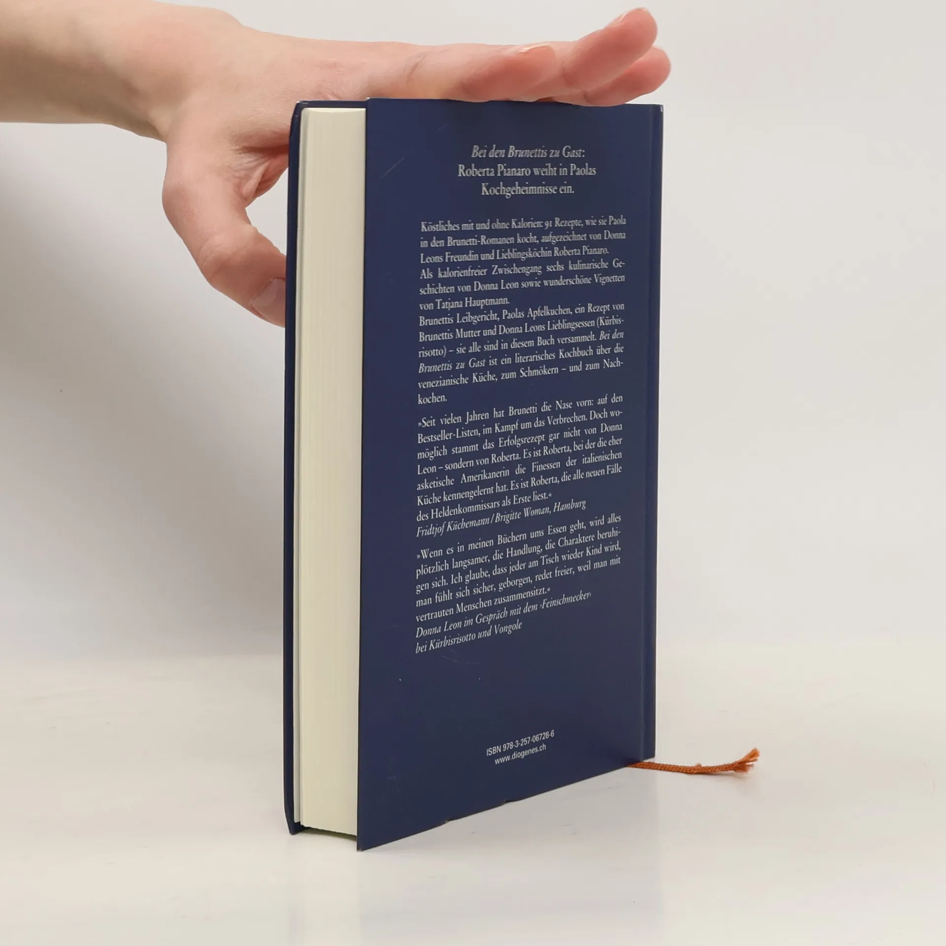 Köstliches mit und ohne Kalorien: 91 Rezepte, wie sie Paola in den Brunetti-Romanen kocht, aufgezeichnet von Donna Leons Freundin und Lieblingsköchin Roberta Pianaro. Als kalorienfreier Zwischengang sechs kulinarische Geschichten von Donna Leon sowie wunderschöne Vignetten von Tatjana Hauptmann.