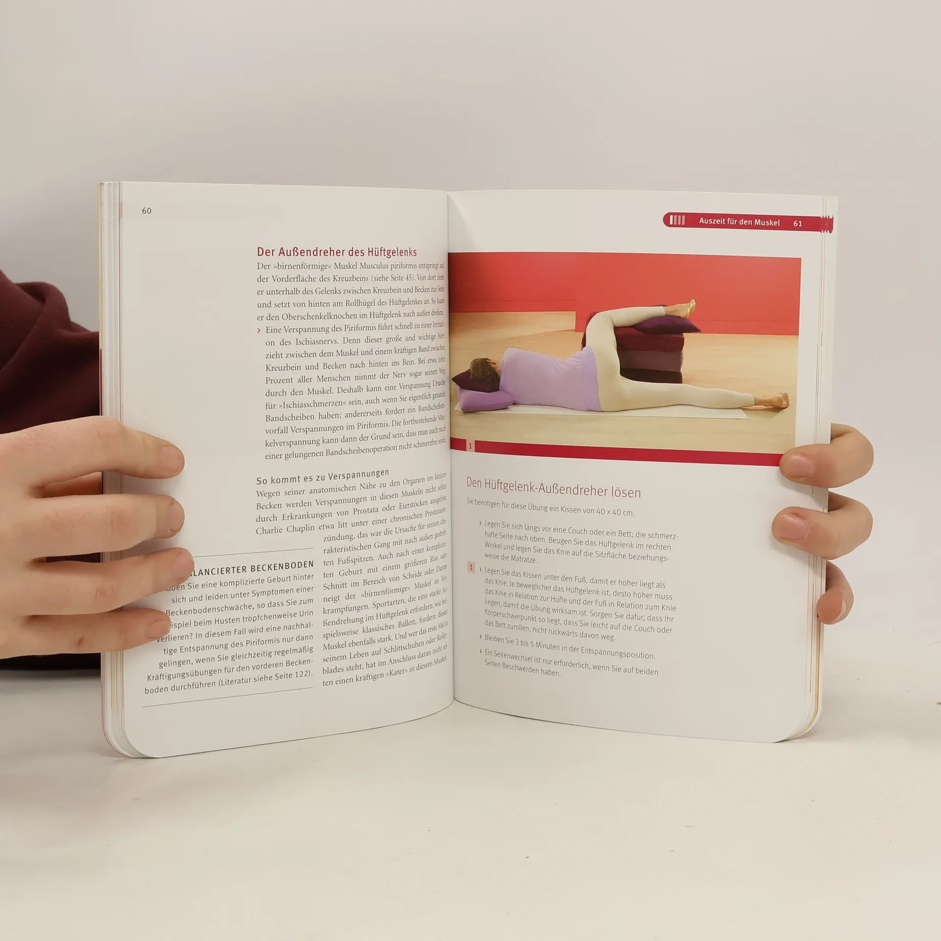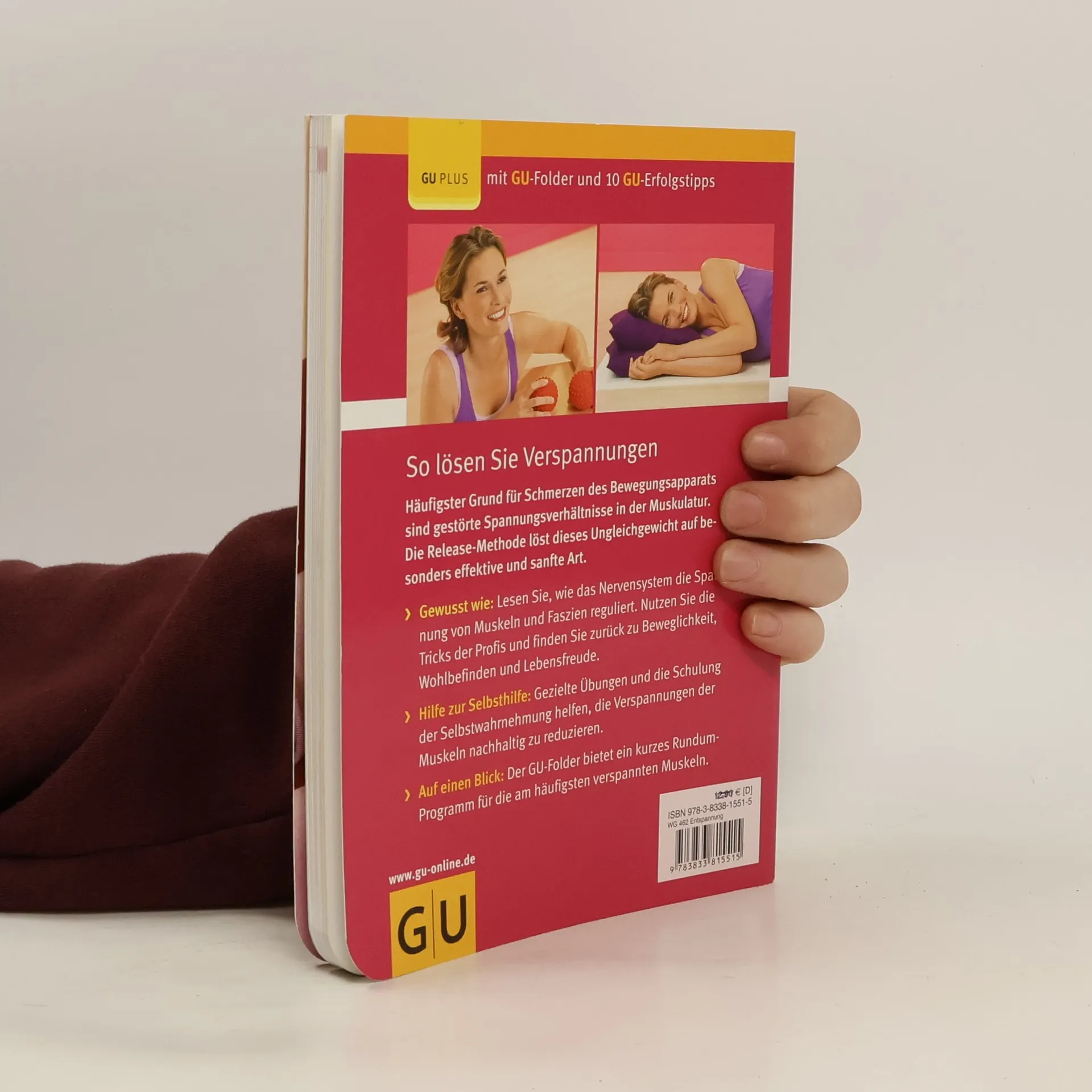Millionen von Menschen leiden unter Schmerzen und Verspannungen am ganzen Körper. Die Auslöser sind Haltungsfehler, Organerkrankungen oder emotionale Spannungen. Um die damit verbundene Dysbalance der Muskeln zu beheben, hat die Münchner Fachärztin für Physikalische und Rehabilitative Medizin Dr. Ellen Fischer auf der Basis der Osteopathie eine neuartige Selbsthilfemethode, die Release-Methode, entwickelt. Diese Methode bringt die Muskulatur wieder in Balance, indem sie systematisch Techniken für die Lösung der verspannten Muskeln mit Kräftigungsübungen für die zu schwachen Muskeln kombiniert. Helfen kann die Methode sowohl bei akuten und chronischen Rücken-, Nacken- und Schulterschmerzen als auch bei verschiedensten organischen Beschwerden sowie bei psychosomatischen Problemen. Die Übungen sind überall gut durchführbar, nicht anstrengend und schließen sonst vernachlässigte Muskelgruppen mit ein. Der beiliegende Folder enthält Übungen mit den wichtigsten Positional Release Techniken.