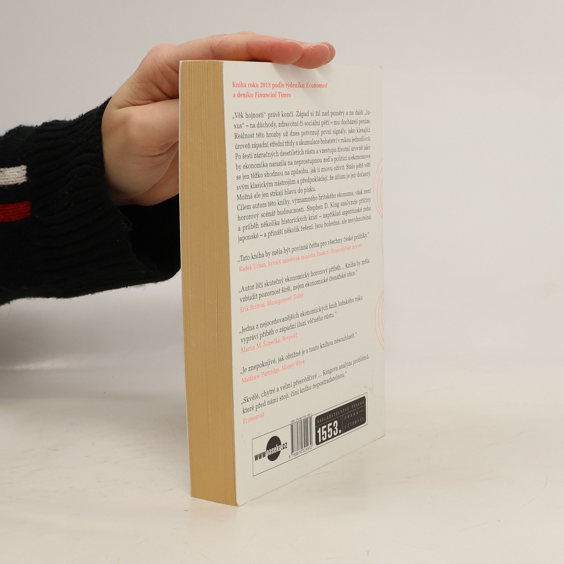 Trvalý hospodářský růst na Západě v posledních šesti dekádách je historickou anomálii a současná stagnace může velmi záhy přerůst v krizi nebývalých rozměrů. Významný britský ekonom tvrdí, že zdaleka nejde jen o konec „věku hojnosti“. Cíle, jež jsme si stanovili, naplníme jen v případě další ekonomické expanze. Může se tak docela dobře stát, že nám pro očekávané budoucí benefity, například na důchody a zdravotní či sociální péči, prostě dojdou peníze. Reálnost této hrozby už dnes potvrzují první signály, jako klesající úroveň západní střední třídy a akumulace bohatství v rukou jednotlivců. Kdo na tento vývoj doplatí? Hororový scénář budoucnosti však není sám o sobě autorovým cílem. King přináší několik řešení. Jsou bolestná, ale nevyhnutelná.