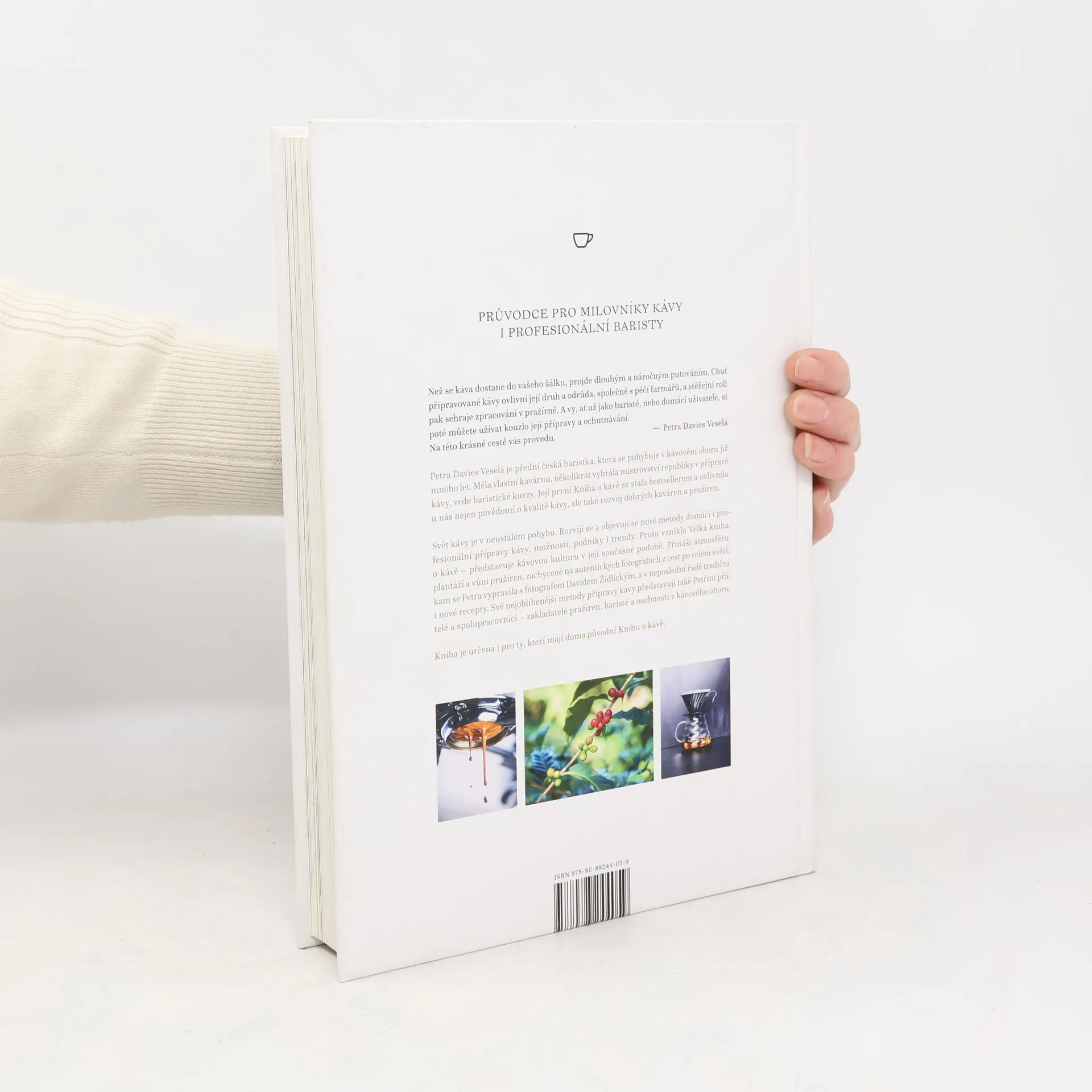 Petra Davies Veselá je mistryní ČR v přípravě kávy, podílí se na mezinárodních soutěžích a vede baristické kurzy. Její první Kniha o kávě je v oboru zásadním titulem, kterého se prodalo přes 29 000 ks. Rozšířila a aktualizovala svou první úspěšnou Knihu o kávě. Sepsala spoustu nových poznatků a zohledňuje své nové zkušenosti i velký rozkvět kávové kultury. Kniha je určena i těm, kteří svou první Knihu o kávě mají – obsahuje zcela nové fotografie a mnoho nových informací včetně nových receptů kávových nápojů. Nádherné nové fotografie vtáhnou čtenáře do děje. Zavedou je přímo na kávové plantáže, do pražíren či k zajímavým osobnostem z oboru. Kniha seznamuje s řadou nových metod přípravy kávy a receptur, s domácími i profesionálními mlýnky a kávovary a další vybavením. Také v ní najdete i praktické rady jak založit a úspěšně provozovat vlastní podnik. Velkorysý formát a výjimečné vizuální, grafické a obrazové zpracování. Ideální dárek pro kohokoli, kdo miluje kávu. Pro běžné spotřebitele, kteří si dobrou kávu rádi uvaří doma, ale i pro profesionální kavárníky a baristy.
