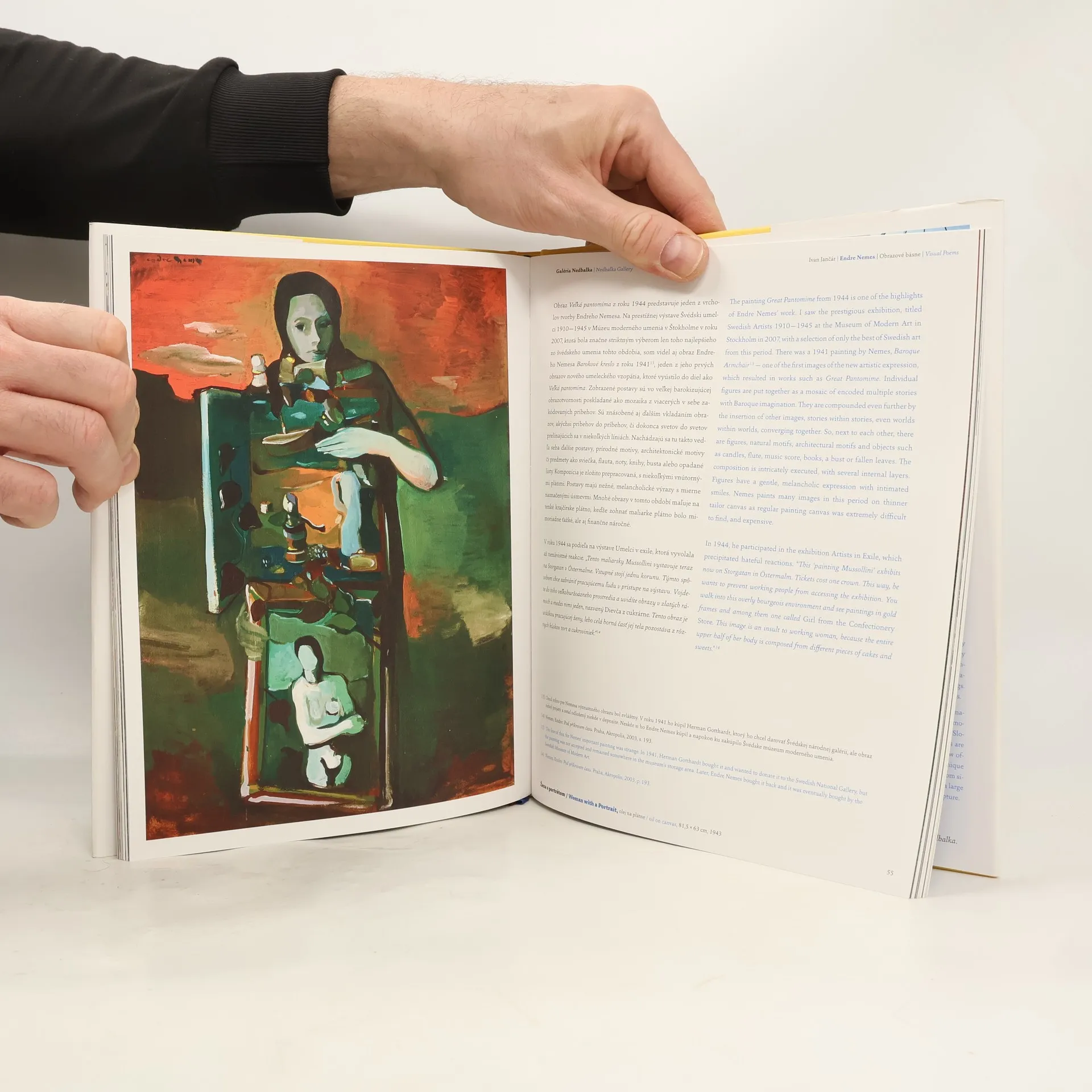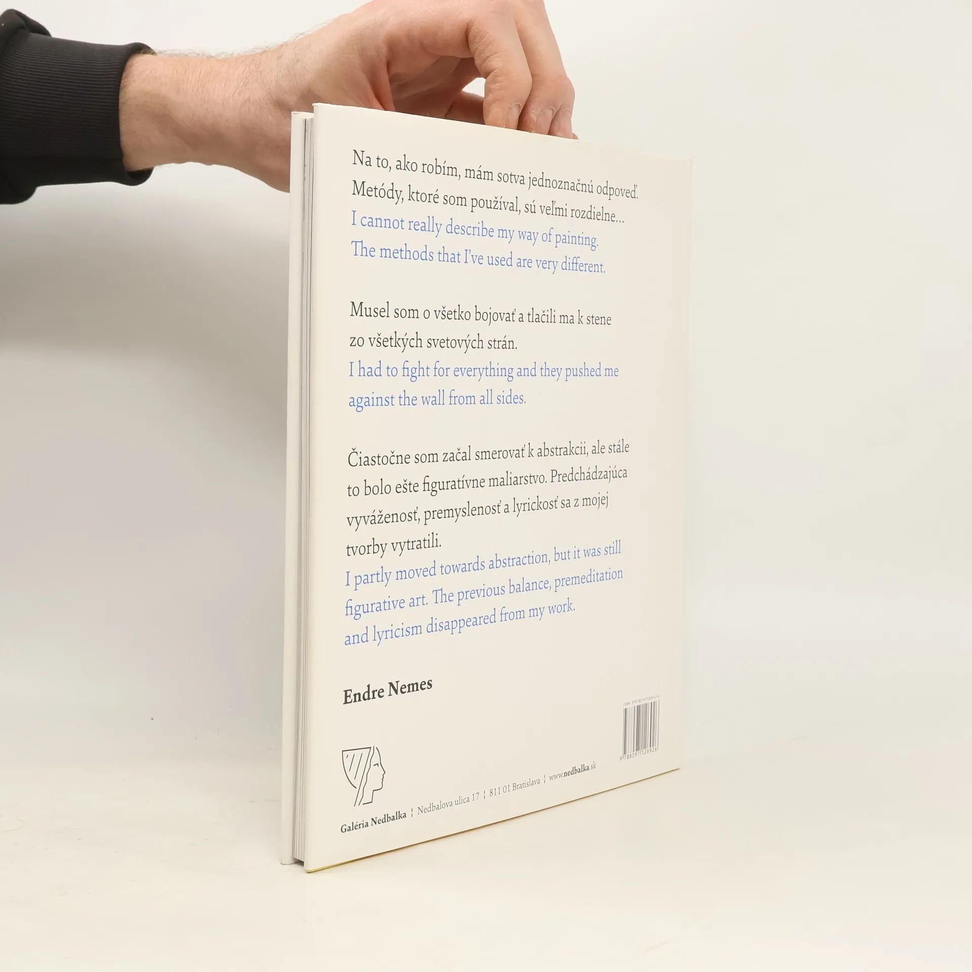 Po výstavách a publikáciách Stana Filka a Milana Paštéku pripravila Galéria Nedbalka prezentáciu ďalšej mimoriadnej osobnosti slovenského výtvarného umenia – Endre Nemesa (1909 – 1985). Bol jedným z prvých, ktorý otočil zrak od vonkajšej reality k vnútornému, často sebatrýznivému skúmaniu. V jeho obrazoch sa postupne ozývajú odkazy na expresionizmus, kubizmus a surrealizmus, vo svojej neskoršej tvorbe sa vyjadruje prostredníctvom nefiguratívnej tvorby, v záverečnej etape sa koncentruje na koláže, kde sa opätovne objavujú aj figuratívne prvky. O jeho tvorbe sa po roku 1948 v bývalom Československu dlhé roky mlčalo, po krátkom záujme v 60. rokoch začala byť jeho tvorba opätovne prehodnocovaná až po roku 1989. Začiatky Endre Nemesa po nútenej emigrácií pred fašizmom v roku 1938 do Švédska (po krátkych pobytoch vo Fínsku a Nórsku) boli zložité a náročné, postupne sa však so svojou tvorbou aj v umelecky pomerne konzervatívnom Švédsku výrazne presadil. Galérii Nedbalka sa podarilo vybudovať najväčšiu kolekciu autorových diel na Slovensku s viacerými ťažiskovými obrazmi dokumentujúcimi jeho jednotlivé tvorivé obdobia.