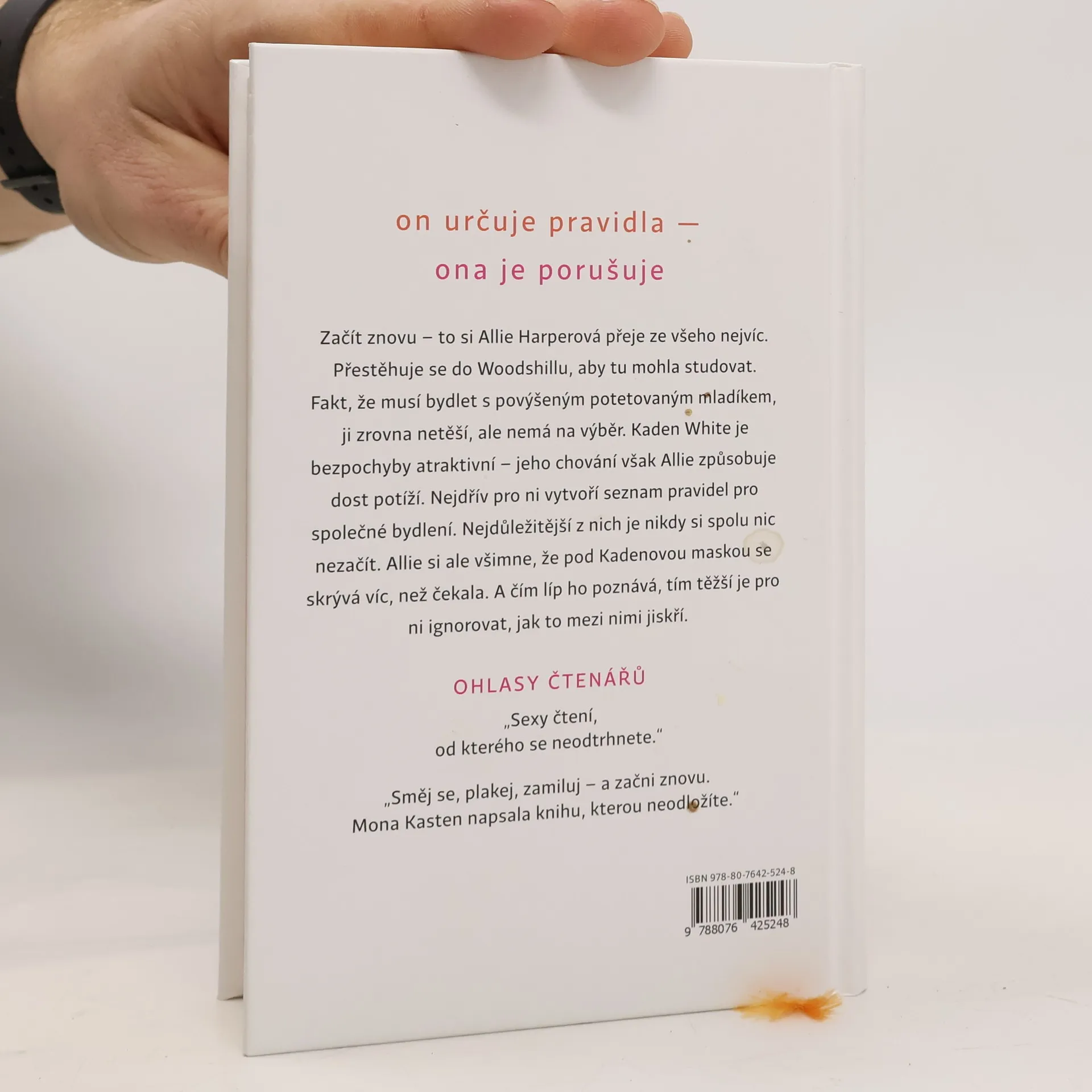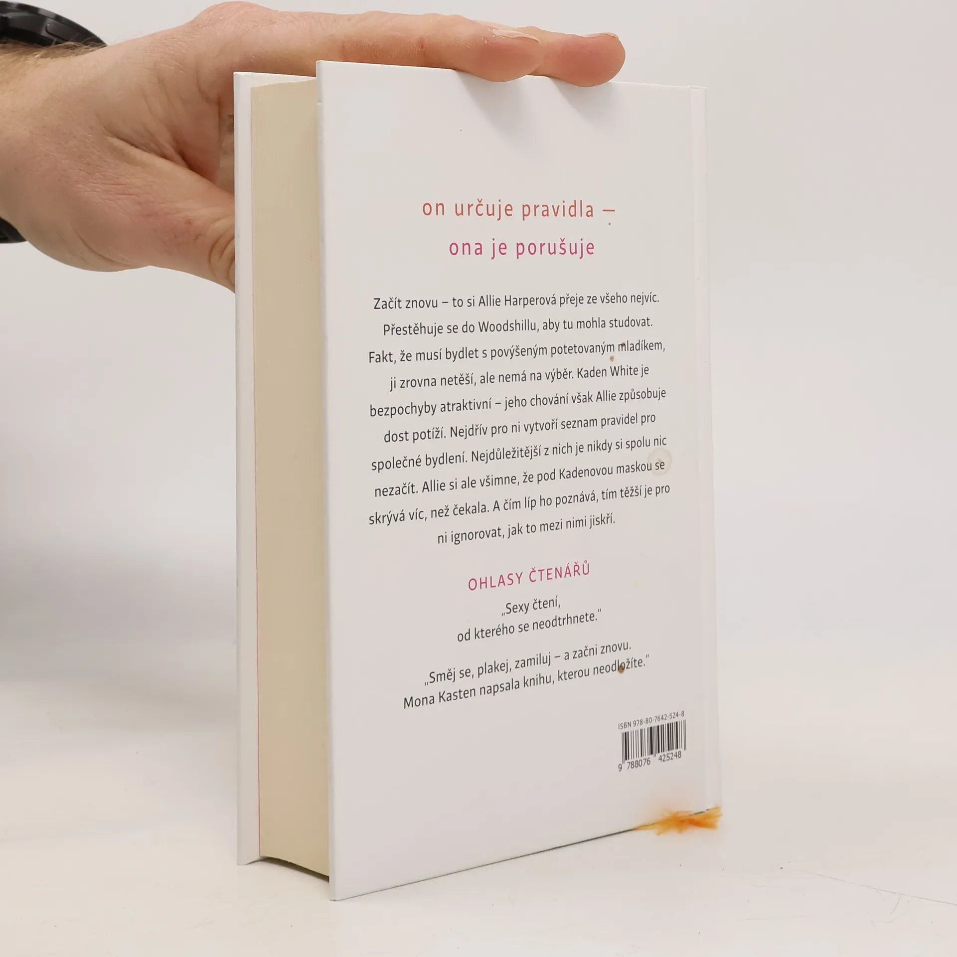 Nové jméno, nový účes, nové město: stovky kilometrů od své minulosti chce Allie Harperová začít znovu. Touží studovat a najít nové přátele jako každá obyčejná devatenáctiletá holka. Jediné, co potřebuje, je vlastní pokoj. Když se setká s Kadenem Whitem, pochopí, že tenhle arogantní sexy týpek je ten poslední, s kým by chtěla sdílet byt. Jenže jí nic jiného nezbývá. Kaden, který také zrovna netouží po spolubydlící, jí nadiktuje seznam pravidel pro společné bydlení. Nejdůležitější z nich je podmínka nikdy si spolu nic nezačít.