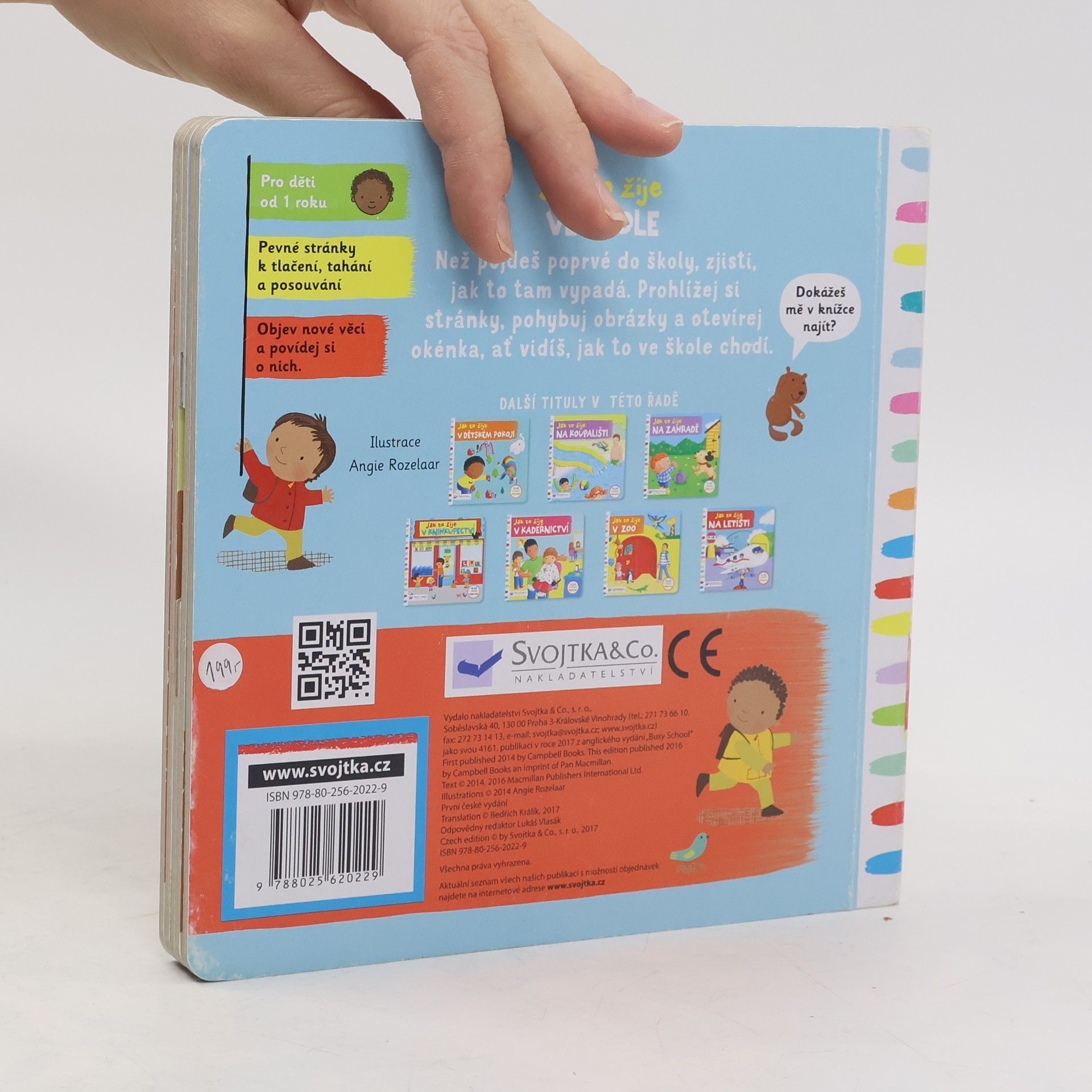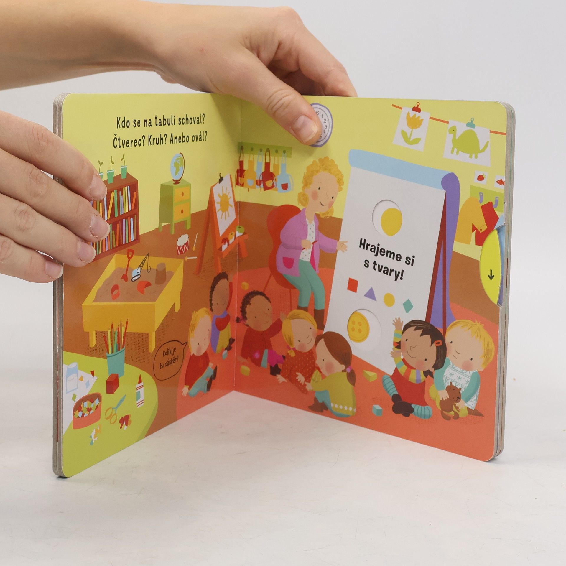 Ve škole čeká spousta překvapení. Otevři knížku a podívej se! Před školou se všichni honí. Ještě chvilku – potom zvoní! Podívej, co všechno na děti ve škole čeká! Toto dětské leporelo je určeno pro děti od jednoho roku. Má pevné stránky s posuvnými a otočnými prvky, a tak si dítě při prohlížení knížky současně procvičí jemnou motoriku – může na jednotlivých stránkách posouvat, tahat, otáčet. Objeví nové věci a můžete si o nich společně povídat! Tak honem, ve třídě čeká spousta překvapení.