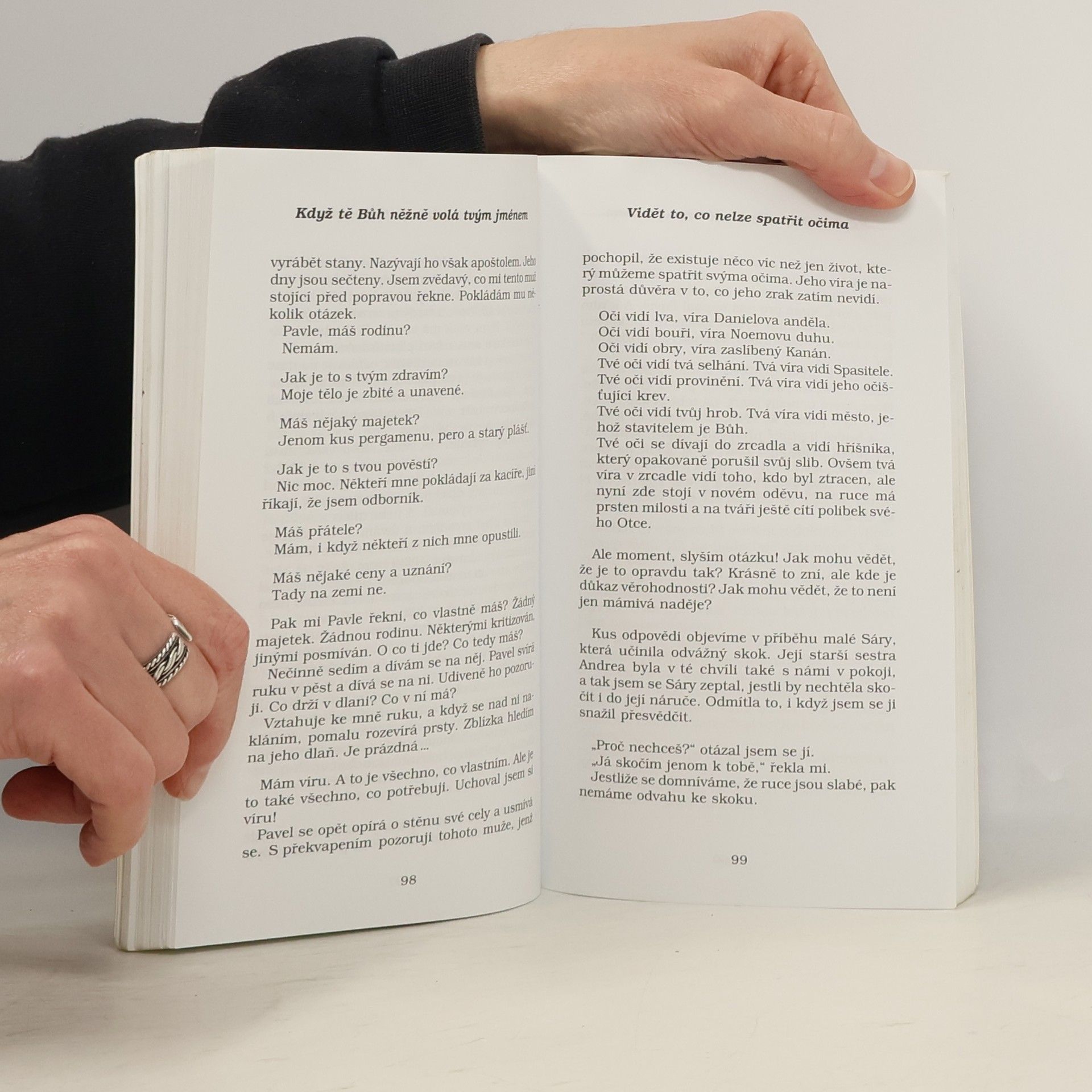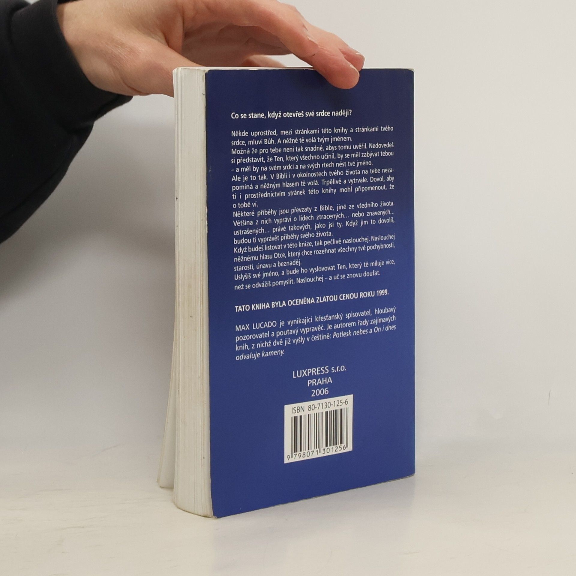 Naslouchej a uč se znovu doufat / Ze stránek této knihy poznáš, že k tvému srdci promlouvá Bůh. Volá tě něžně tvým jménem. Snad se ti to zdá nemožné, nedovedeš si představit, že Ten, který stvořil a učinil všechno, myslí na tebe a zná tvé jméno. A přece, tvé jméno vyslovuje s láskou, něžně, trpělivě. TATO KNIHA BYLA OCENĚNA ZLATOU CENOU ROKU 1999. Někde uprostřed, mezi stránkami této knihy a stránkami tvého srdce, mluví Bůh. A něžně tě volá tvým jménem. Možná to pro tebe není tak snadné, abys tomu uvěřil. Nedovedeš si představit, že Ten, který všechno učinil, by se měl zabývat tebou – a měl by na svém srdci a na svých rtech nést tvé jméno. Ale je to tak. V Bibli i v okolnostech tvého života nezapomíná na tebe a něžným hlasem tě volá. Trpělivě a vytrvale. Dovol, aby ti i prostřednictvím stránek této knihy mohl připomenout, že o tobě ví. Některé příběhy jsou převzaty z Bible, jiné ze všedního života. Většina z nich vypráví o lidech ztracených… nebo znavených… ustrašených... právě takových, jako jsi ty. Když jim to dovolíš, budou ti vyprávět příběhy svého života. Když budeš listovat v této knize, tak pečlivě naslouchej. Naslouchej něžnému hlasu Otce, který chce rozehnat všechny tvé pochybnosti, starosti, únavu a beznaděj. Budeš slyšet opravdu tvé jméno, a bude ho vyslovovat ten, který tě miluje více, než se odvážíš pomyslit. Naslouchej – a uč se znovu doufat.