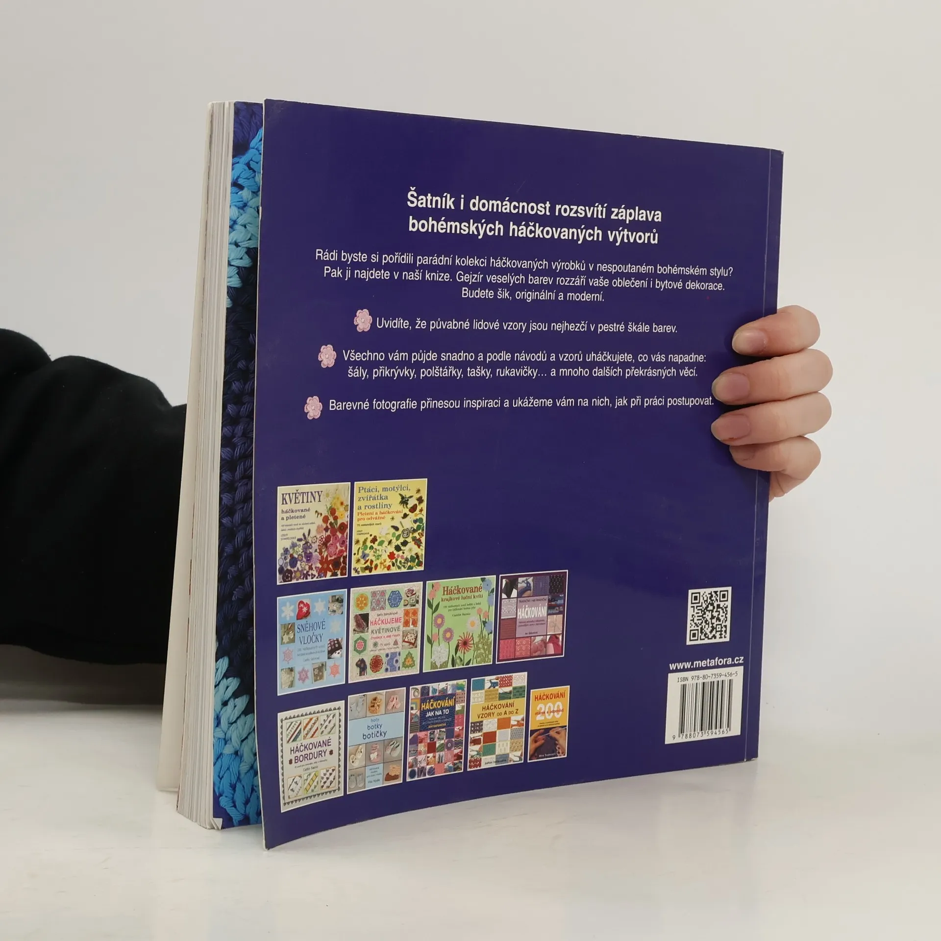 Šatník i domácnost rozsvítí záplava bohémských háčkovaných výtvorů. Rádi byste si pořídili parádní kolekci háčkovaných výrobků v nespoutaném bohémském stylu? Pak vám nabízíme tři desítky úžasných pestrobarevných modelů inspirovaných tradičními lidovými vzory. Tato jedinečná sbírka háčkovaných doplňků obsahuje projekty, jejichž výroba je rychlá a snadná, jako jsou třeba polštářky a nejrůznější malé podložky. Najdete zde ale i rozměrnější výrobky, například šály či deky, jejichž zhotovení zabere o něco více času. Uvidíte, že půvabné lidové vzory jsou nejhezčí v pestré škále barev. Všechno vám půjde snadno a podle návodů a vzorů našich talentovaných umělkyň uháčkujete, co jen vás napadne: tašky, rukavičky… a mnoho dalších překrásných věcí. Seznámíte se s fantastickými technikami háčkování a získáte spoustu inspirace. Barevné fotografie vám pomohou pochopit, jak přesně při práci postupovat a jak úžasné věci vás na konci čekají. Ohňostroj veselých barev rozzáří vaše oblečení i bytové dekorace a vnese do vašeho domova i šatníku duhovou vlnu bohémské elegance. Budete šik, originální a moderní.