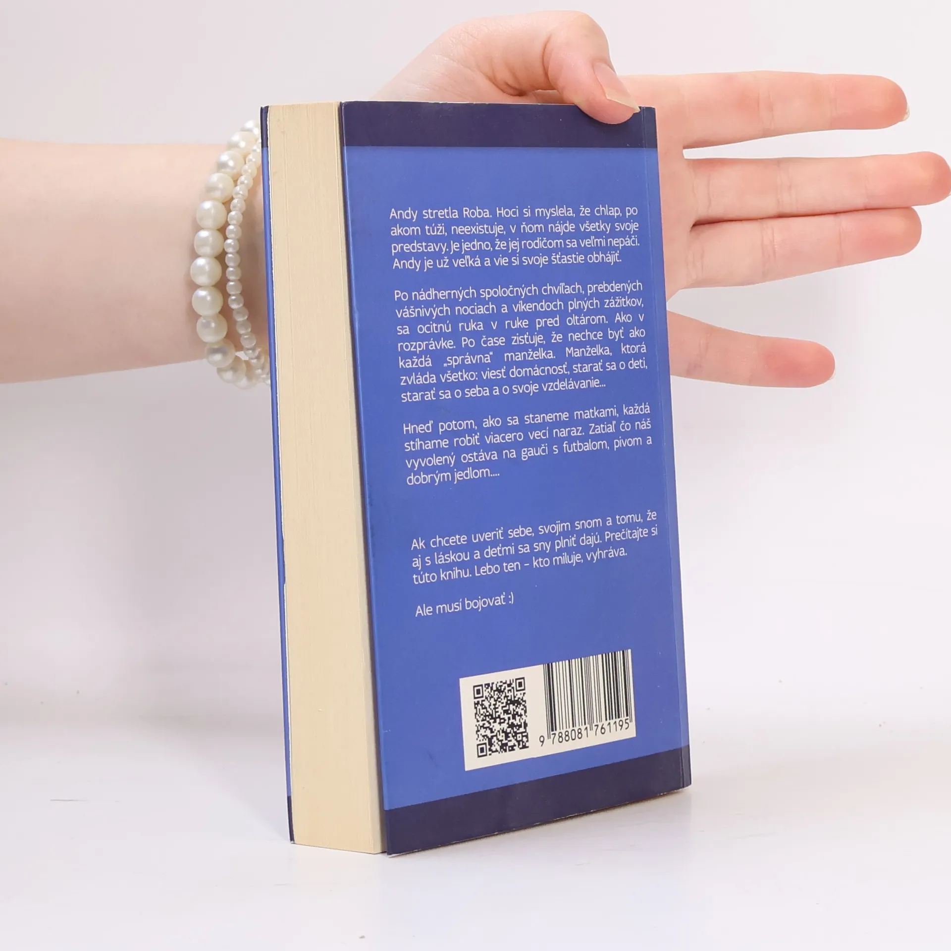 Knižka o tom, že muža spoznáte až vtedy, keď s ním máte deti :-) Máte pocit, že dosť bolo žúrov? Cestovania? Túžite po rodine? Andy stretla Roba. Hoci si myslela, že chlap, po akom túži, neexistuje, v ňom nájde všetky svoje predstavy. Je jedno, že jej rodičom sa veľmi nepáči. Andy je už veľká a vie si svoje šťastie obhájiť. Po nádherných spoločných chvíľach, prebdených vášnivých nociach a víkendoch plných zážitkov, sa ocitnú ruka v ruke pred oltárom. Ako v rozprávke. Po čase zisťuje, že nechce byť ako každá „správna“ manželka. Manželka, ktorá zvláda všetko: viesť domácnosť, starať sa o deti, starať sa o seba a o svoje vzdelávanie... Hneď potom, ako sa staneme matkami, každá stíhame robiť viacero vecí naraz. Zatiaľ čo náš vyvolený ostáva na gauči s futbalom, pivom a dobrým jedlom...