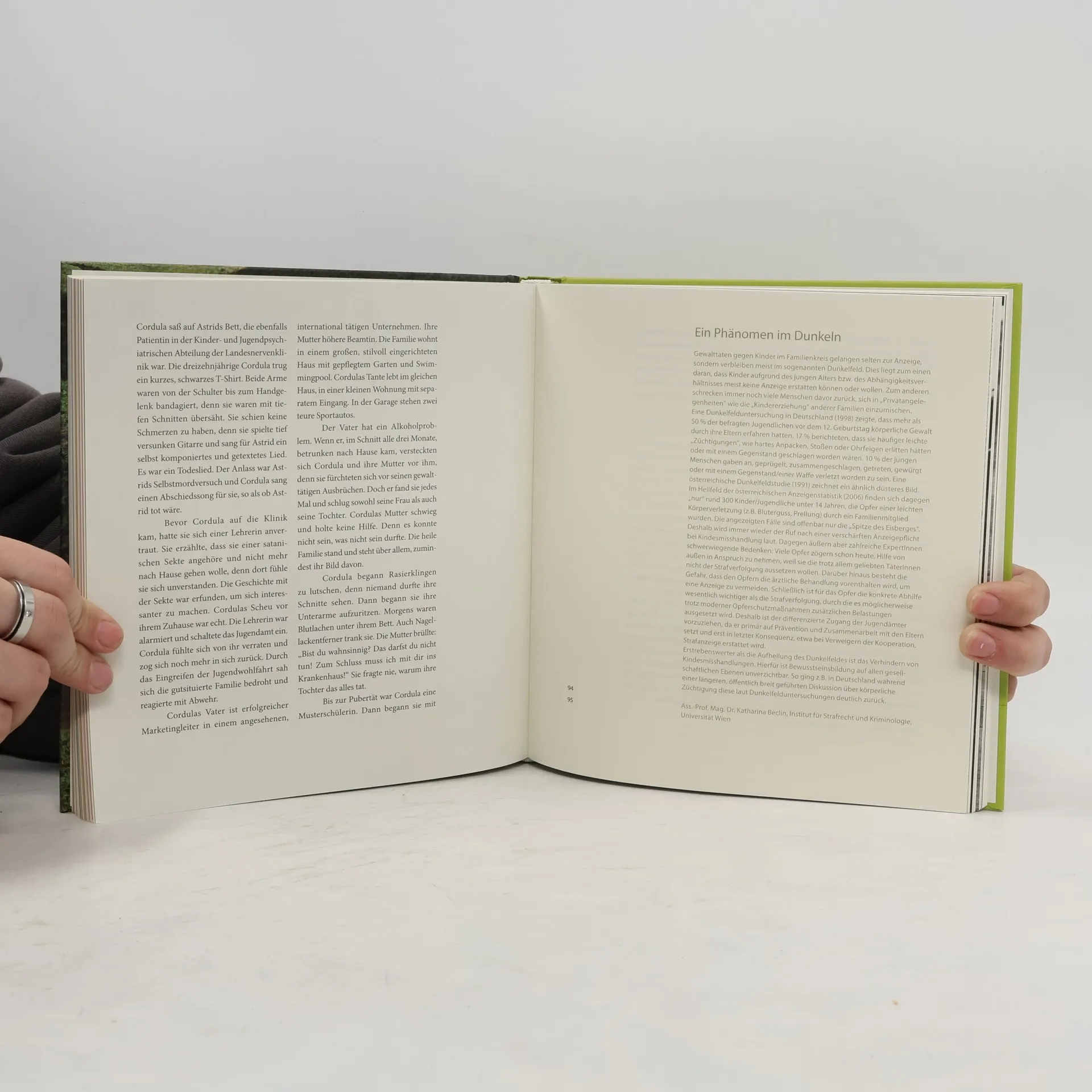 „Man hat mir vieles genommen, aber mein Lachen nicht.“ 15 wahre Geschichten schildern die Auswirkungen einer bitteren Kindheit, geprägt von Gewalt, Missbrauch, Sucht, Krankheit, Armut, Behinderung, Verwahrlosung oder Flucht. Diese Erlebnisse beeinflussen das Leben der Kinder und zeigen die unterschiedlichen Wege der Verarbeitung traumatischer Erfahrungen. Neben den Erzählungen stehen Kommentare und Analysen von ExpertInnen aus dem psychosozialen Bereich sowie Beiträge von Schriftstellern wie Dimitré Dinev und Arno Geiger, die Hintergründe und Zusammenhänge beleuchten. Der Herausgeber, SOS-Kinderdorf, ist ein weltweites, konfessionell und politisch unabhängiges Sozialwerk, das 1949 von Hermann Gmeiner in Innsbruck gegründet wurde. Es bietet gesellschaftlich benachteiligten Kindern, die ohne Eltern aufwachsen, ein neues Zuhause, familiäre Wärme und eine gute Ausbildung – die Grundlage für eine gelungene Kindheit und Jugend mit Perspektiven. Die Betreuung der Kinder und Jugendlichen erfolgt bis zur Selbstständigkeit, und zahlreiche neue pädagogische-therapeutische sowie präventive Programme bieten in Krisensituationen auch kurzfristige Unterstützung und Beratung für junge Menschen und Familien an.
