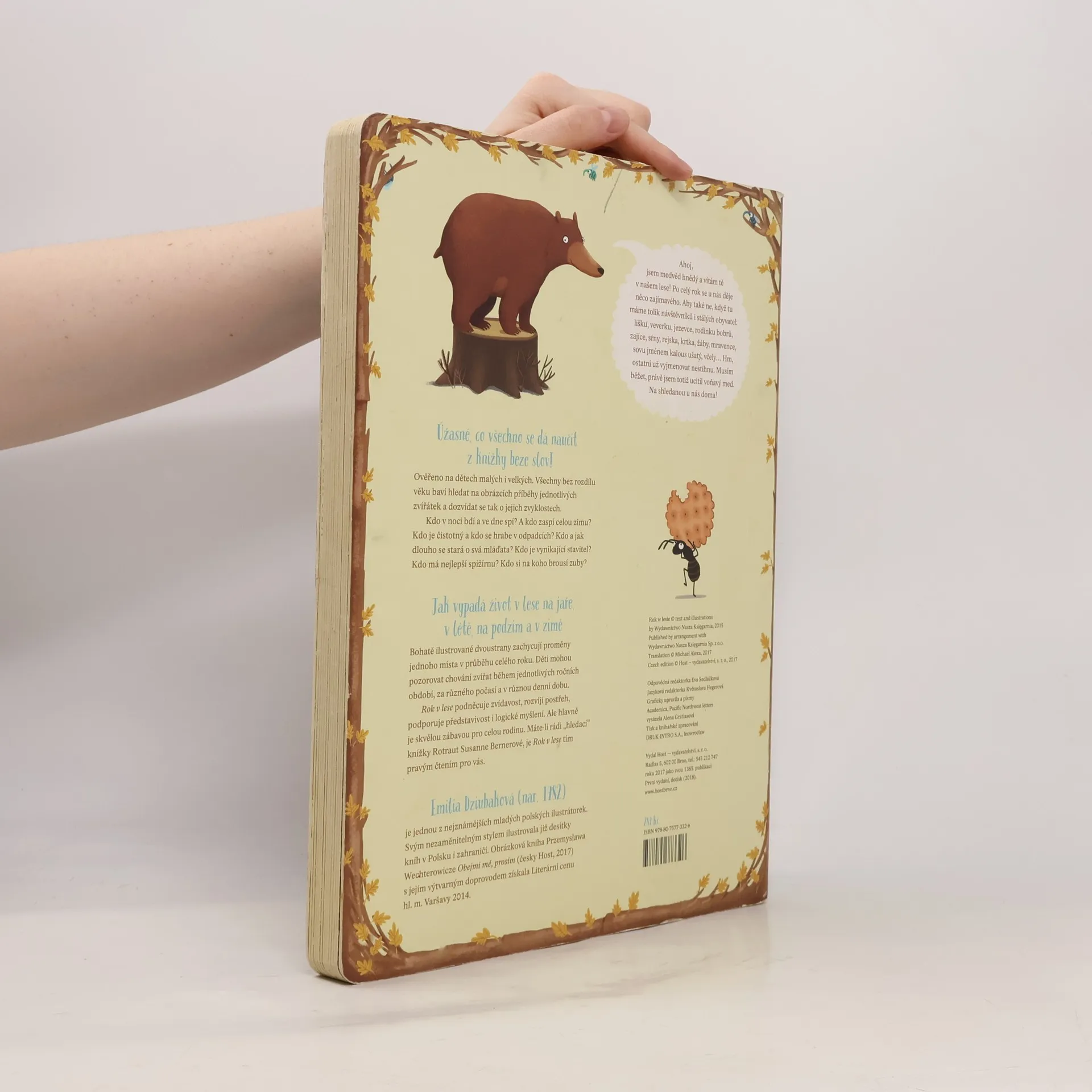 Jak vypadá život v lese na jaře, v létě, na podzim a v zimě? Bohatě ilustrované dvoustrany zachycují proměny jednoho místa v průběhu celého roku. Děti mohou pozorovat chování zvířat během jednotlivých ročních období, za různého počasí a v různou denní dobu. Rok v lese podněcuje zvídavost, rozvíjí postřeh, podporuje představivost i logické myšlení. Ale především je skvělou zábavou pro celou rodinu.