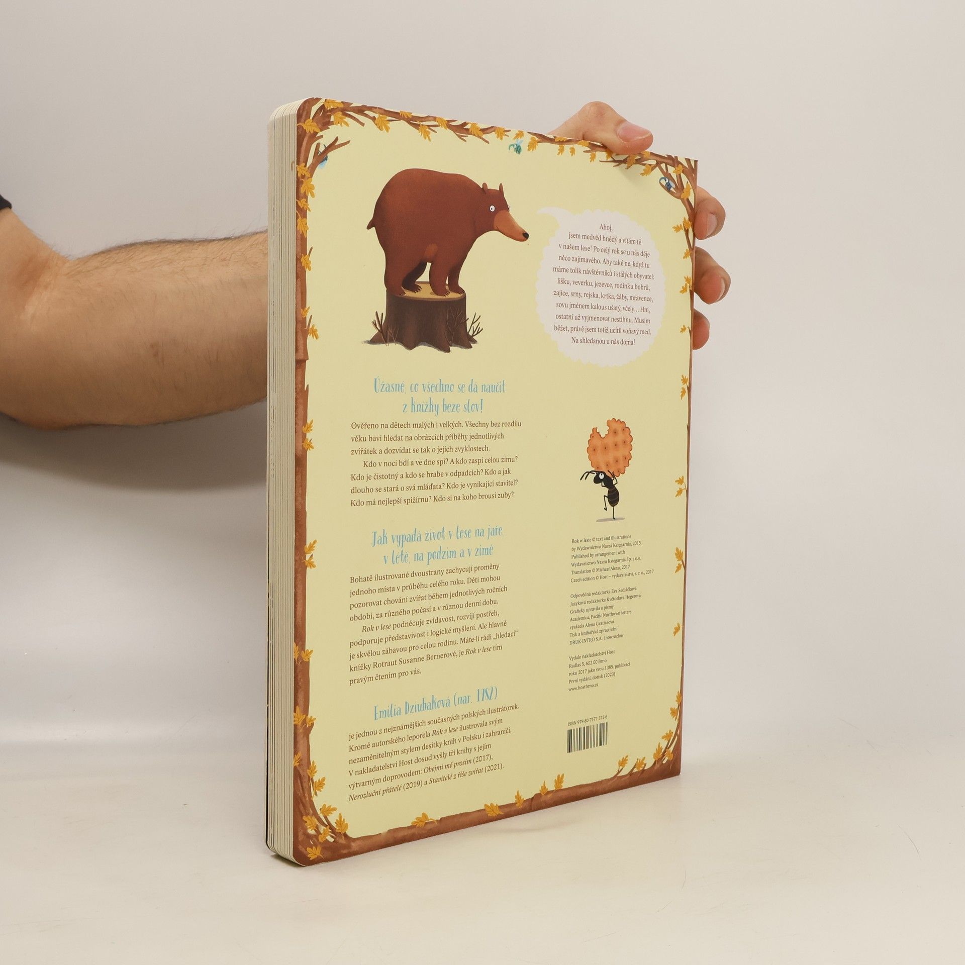 Jak vypadá život v lese na jaře, v létě, na podzim a v zimě? Bohatě ilustrované dvoustrany zachycují proměny jednoho místa v průběhu celého roku. Děti mohou pozorovat chování zvířat během jednotlivých ročních období, za různého počasí a v různou denní dobu. Rok v lese podněcuje zvídavost, rozvíjí postřeh, podporuje představivost i logické myšlení. Ale především je skvělou zábavou pro celou rodinu.