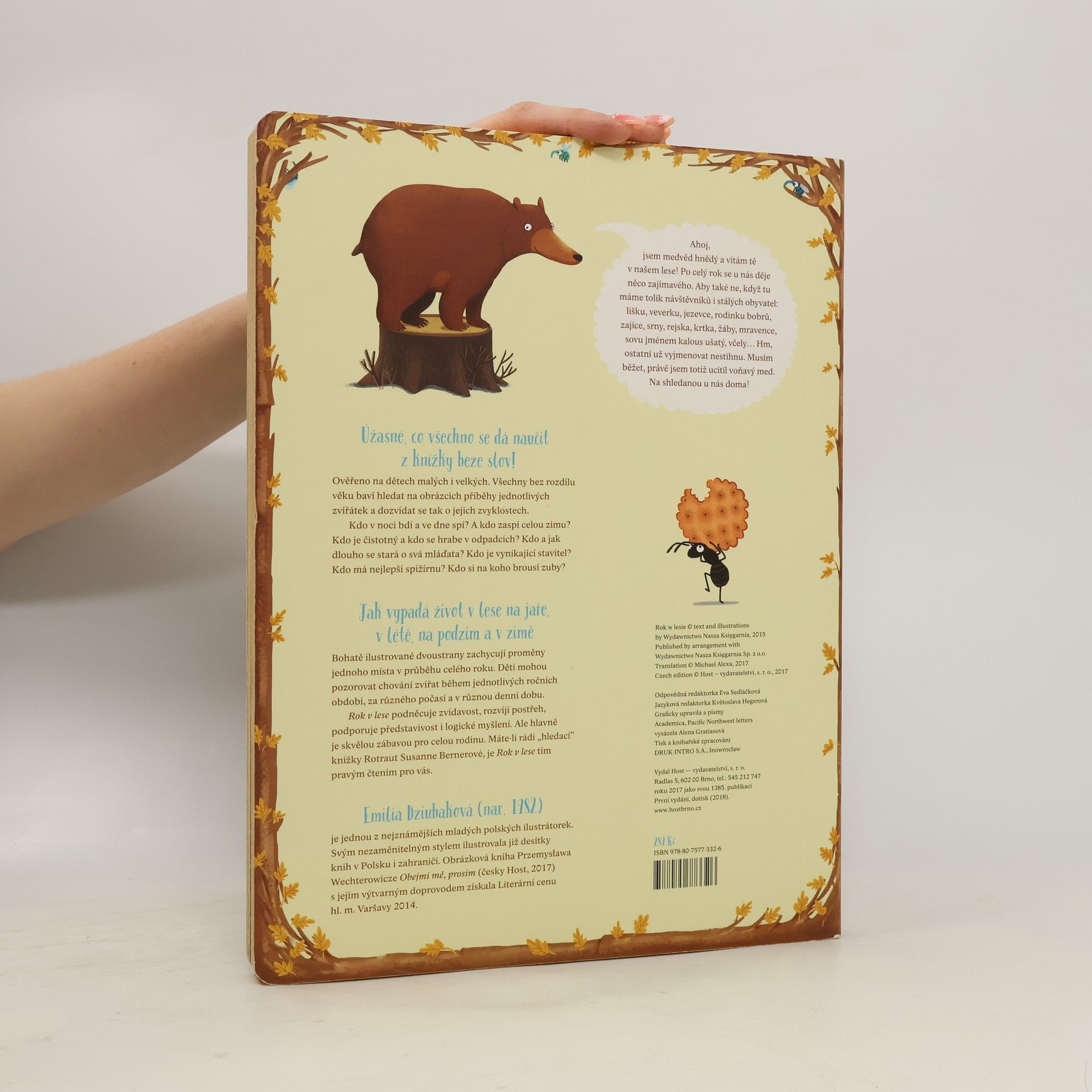 Jak vypadá život v lese na jaře, v létě, na podzim a v zimě? Bohatě ilustrované dvoustrany zachycují proměny jednoho místa v průběhu celého roku. Děti mohou pozorovat chování zvířat během jednotlivých ročních období, za různého počasí a v různou denní dobu. Rok v lese podněcuje zvídavost, rozvíjí postřeh, podporuje představivost i logické myšlení. Ale především je skvělou zábavou pro celou rodinu.