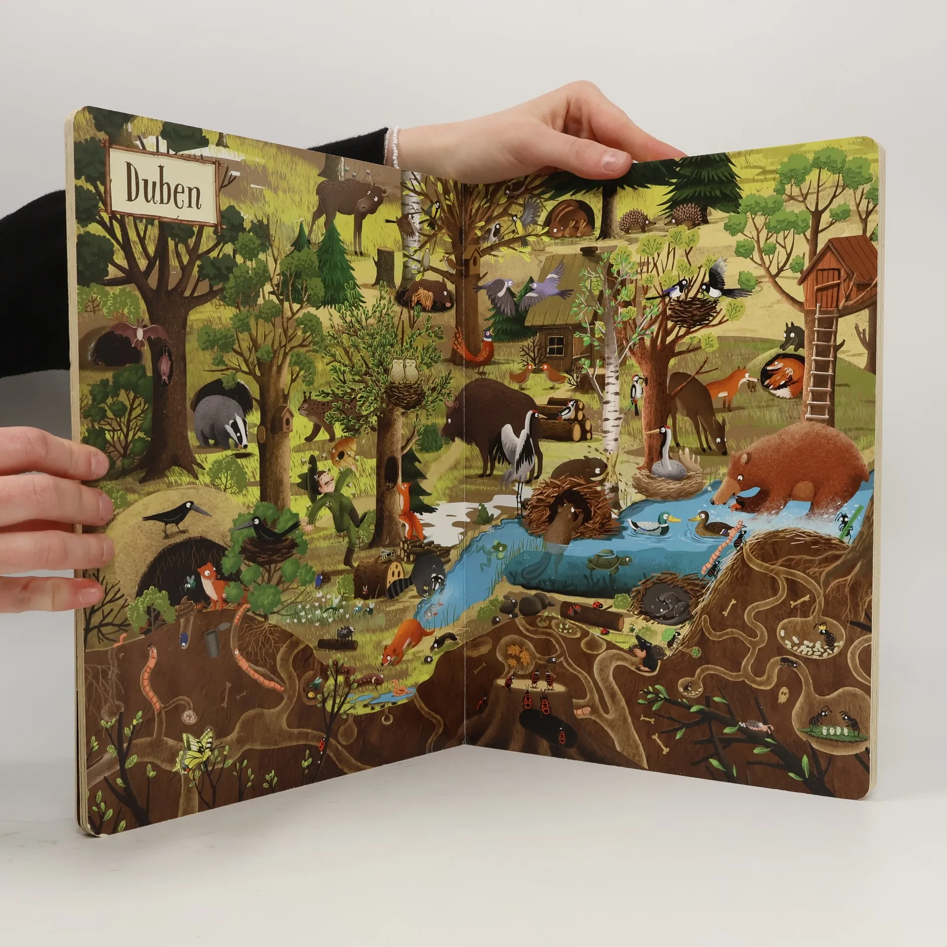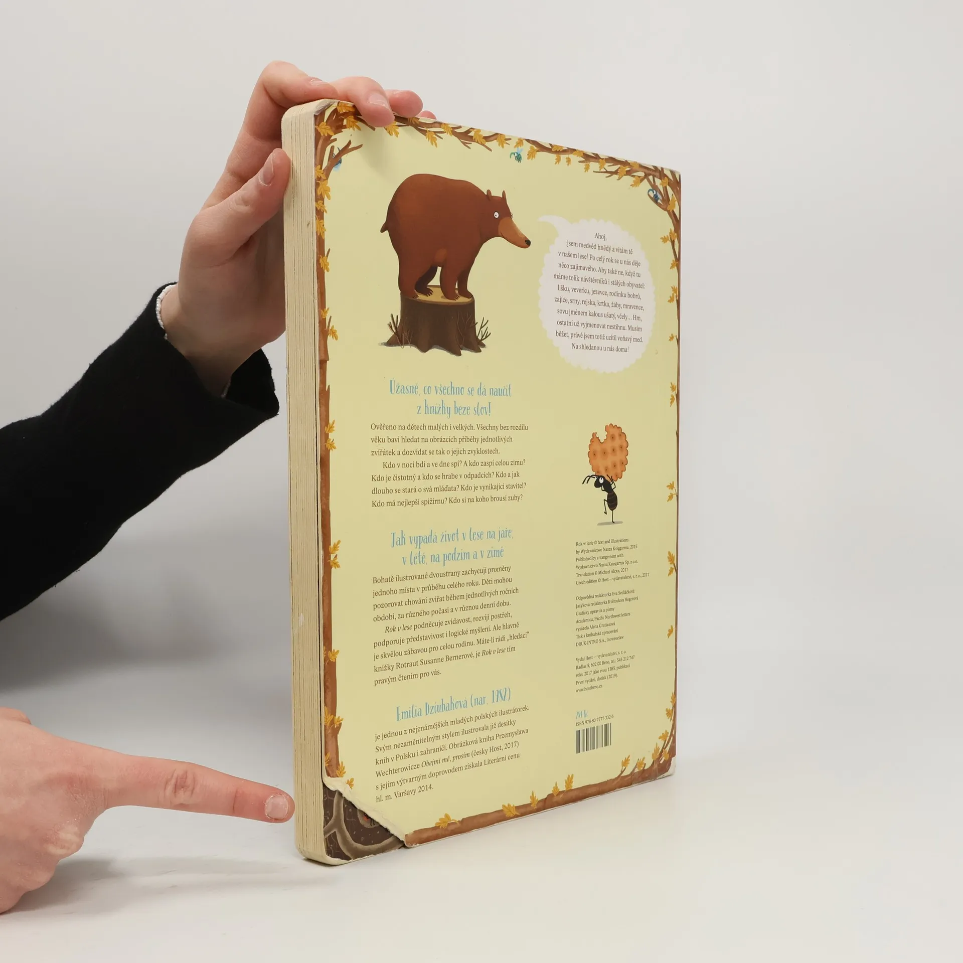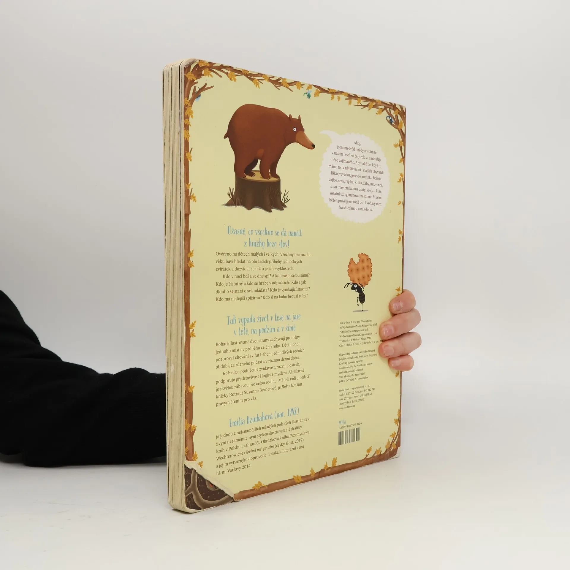 Jak vypadá život v lese na jaře, v létě, na podzim a v zimě? Bohatě ilustrované dvoustrany zachycují proměny jednoho místa v průběhu celého roku. Děti mohou pozorovat chování zvířat během jednotlivých ročních období, za různého počasí a v různou denní dobu. Rok v lese podněcuje zvídavost, rozvíjí postřeh, podporuje představivost i logické myšlení. Ale především je skvělou zábavou pro celou rodinu.