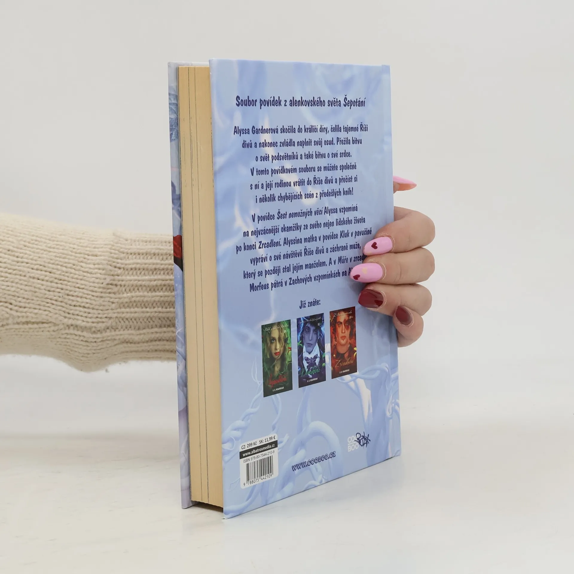 Soubor povídek z alenkovského světa Šepotání Alyssa Gardnerová prošla králičí dírou a rozhodla o svém osudu. Přežila bitvu o Říši Divů i bitvu o své srdce. V tomto povídkovém souboru se můžete společně s ní a její rodinou vrátit do Říše Divů. Zároveň si můžete přečíst i několik vymazaných scén z předešlých knih! Například povídce s názvem Šest nemožných věcí Alyssa vzpomíná na nejvzácnější okamžiky jejího života před tím, než přišlo Zrcadlení a na to, jak velkou roli hrají kouzla ve štěstí těch, které miluje. Alyssina matka pak v povídce Kluk v pavučině nostalgicky vypráví o svém čase, který strávila v Říši Divů, a zachraňovala muže, který se pak stal jejím manželem. A Morfeus se v povídce Můra v zrcadle pátrá v Zachových vzpomínkách na Šepotání.