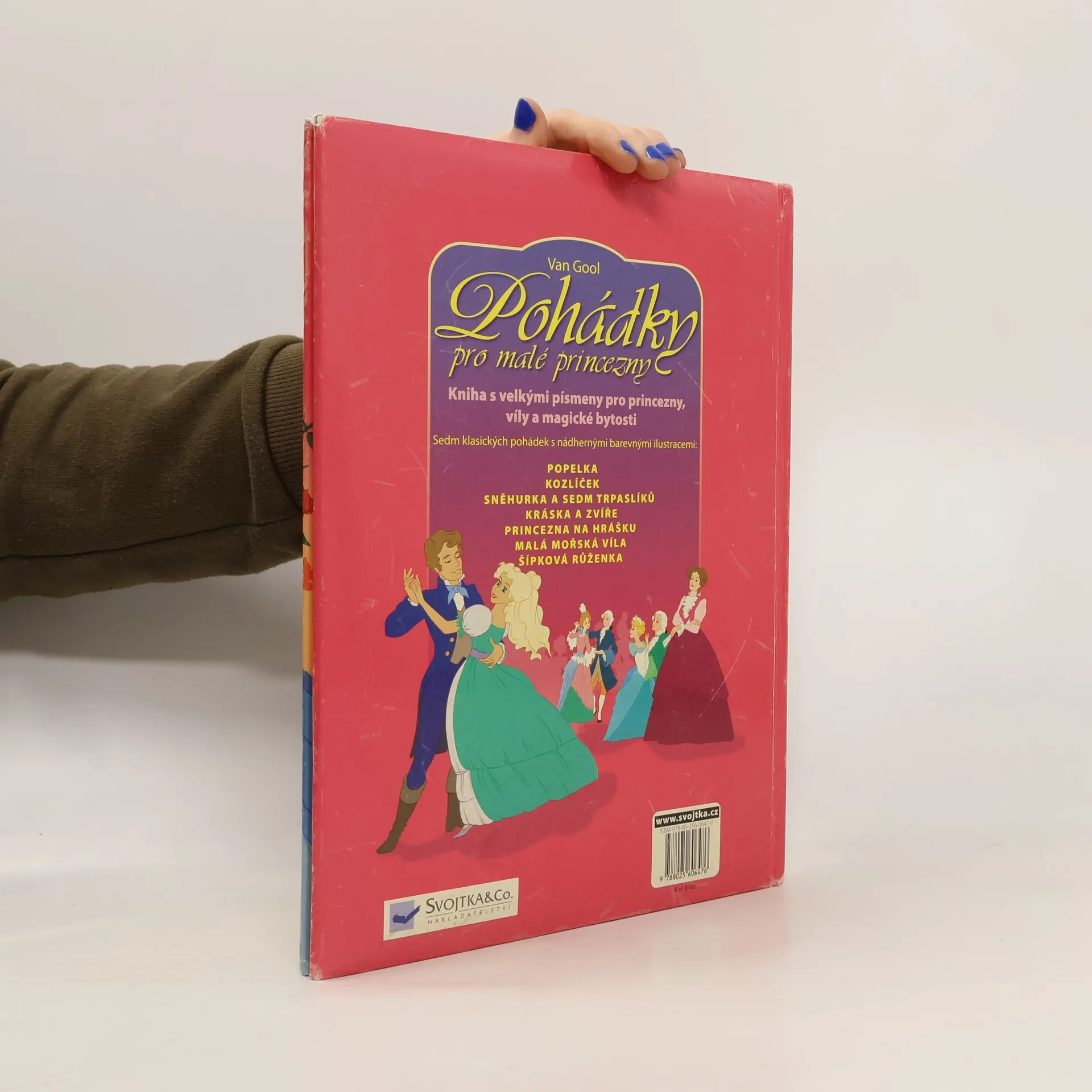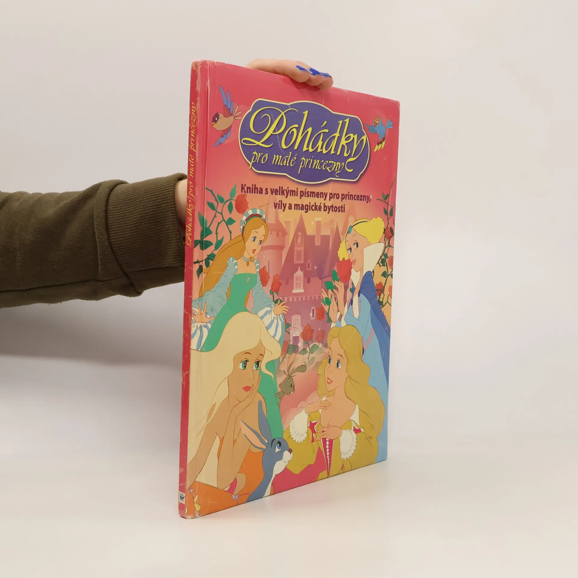 Kniha s velkými písmenky pro princezny, víly a magické bytosti; sedm klasických pohádek s nádhernými barevnými ilustracemi (Popelka; Kozlíček; Sněhurka; Kráska a zvíře; Princezna na hrášku; Malá mořská víla; Šípková Růženka)