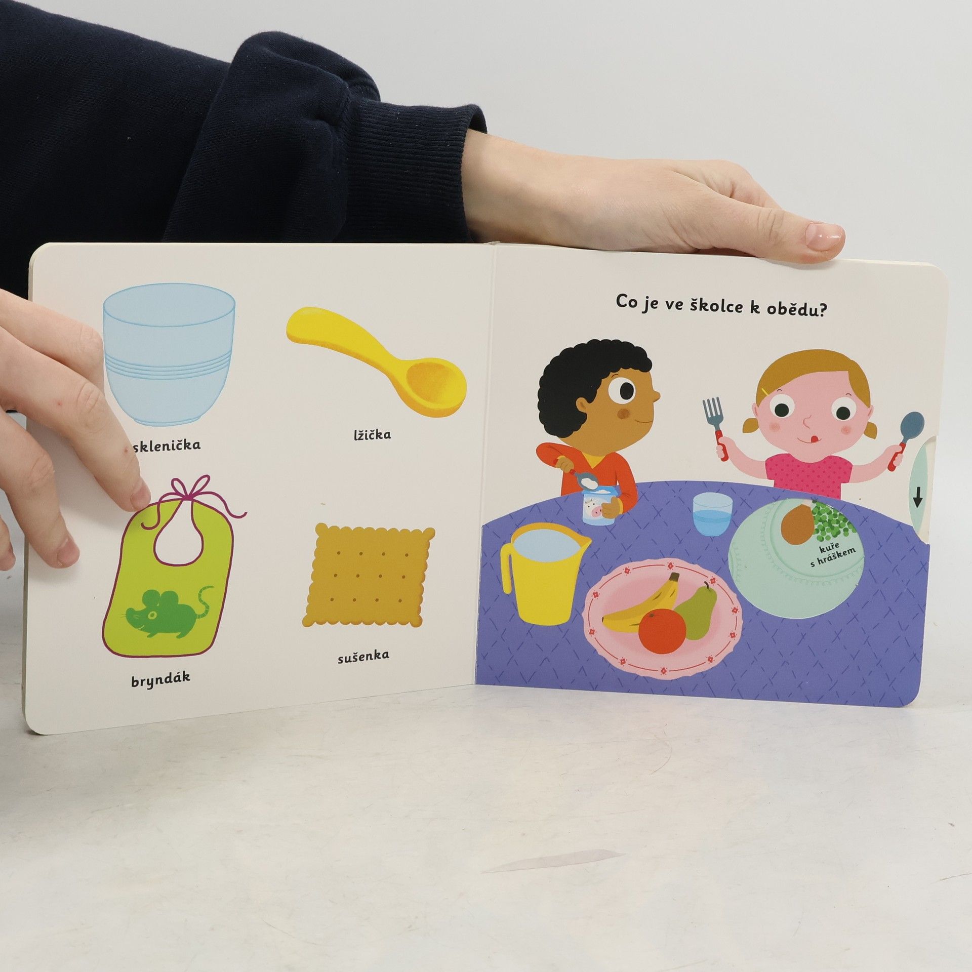 Chodíš do školky? A s kým si tam hraješ? Nebylo by fajn mít paní učitelku a kamarády ze školky i doma v knížce? Jaké jsou ve školce tvé nejoblíbenější hračky a co tam míváte k obědu? Chodíš domů "po o", nebo "po spa"? Vyjmenuj vše, co máš na školce nejraději! Namaluj pěkný obrázek pastelkami. V tomto leporelu s pevnými stránkami a všelijakými pohyblivými prvky si děti procvičí jemnou motoriku. Prostřednictvím pestrých ilustrací se seznámí s pravidly chování ve školce. Ať už do školky chodí, nebo se tam teprve chystají, tato knížka je bude bavit!