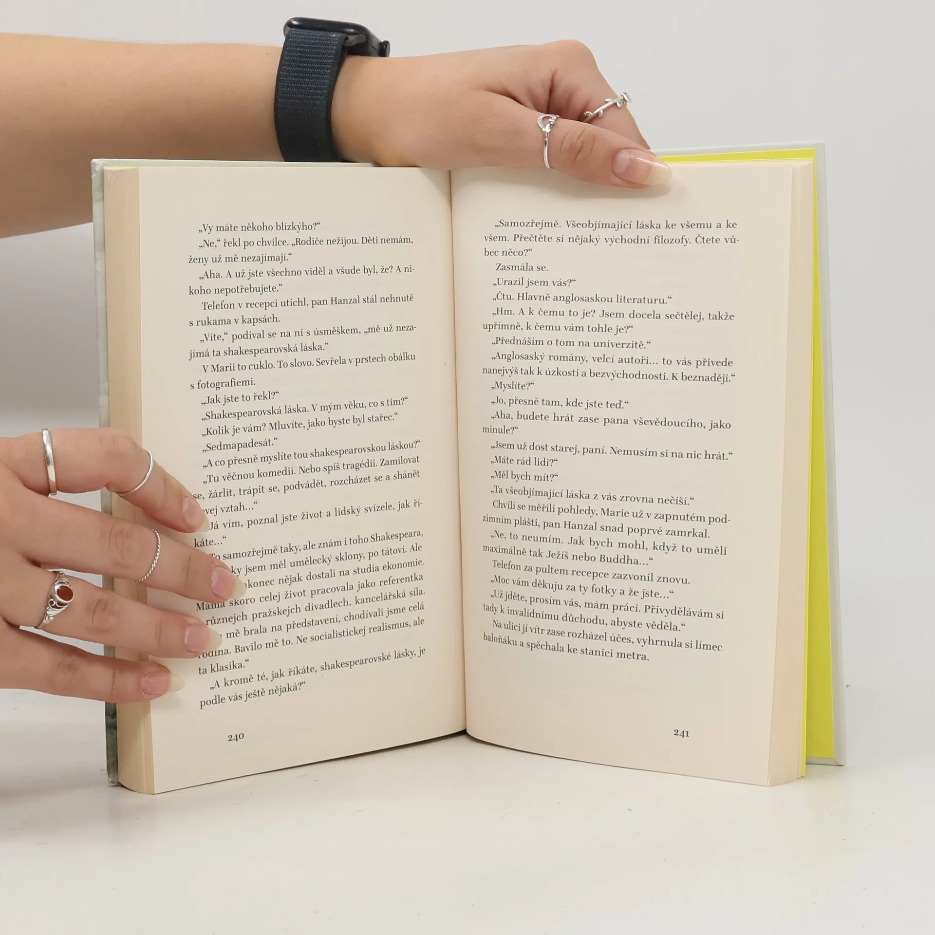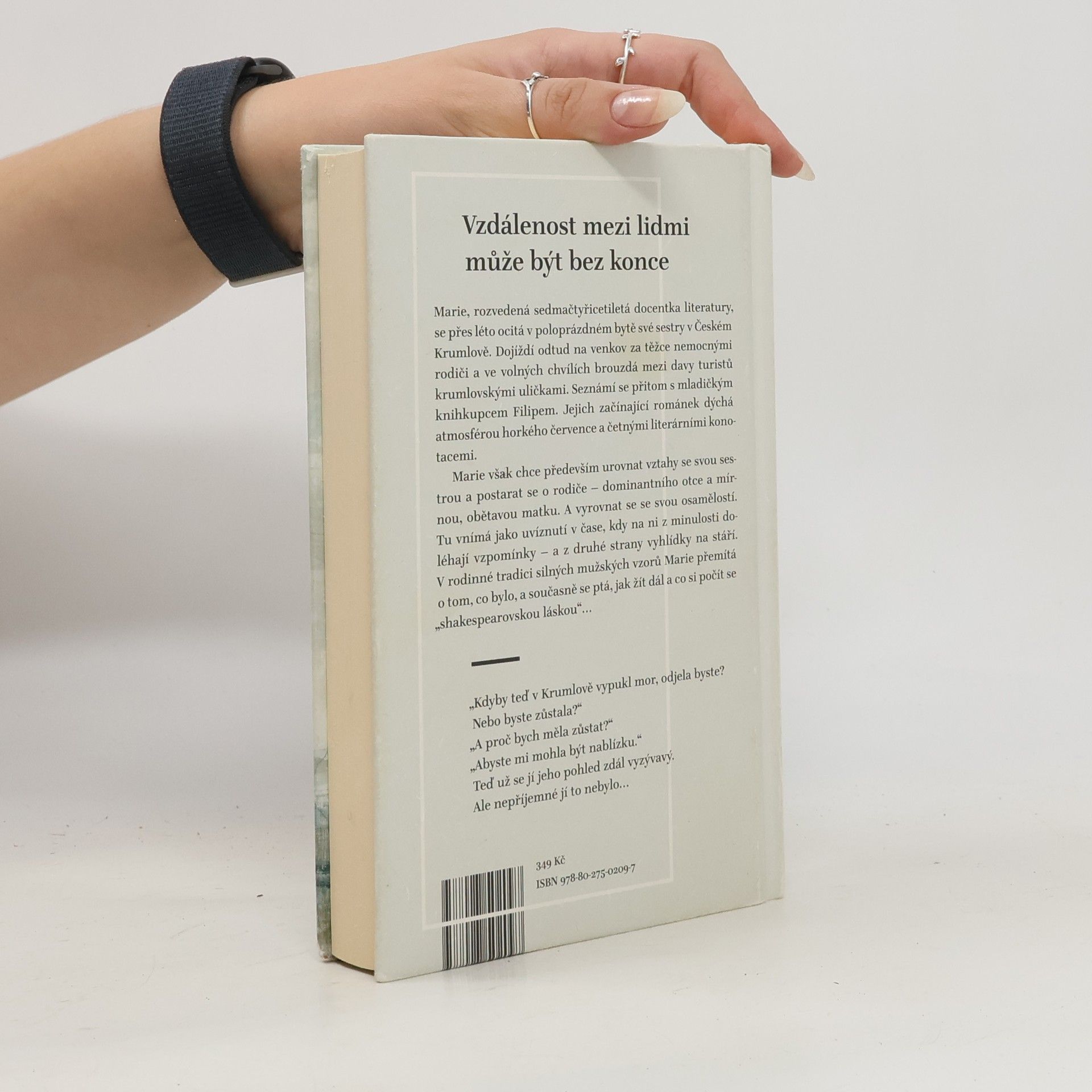 Marie, rozvedená sedmačtyřicetiletá docentka literatury, se přes léto ocitá v poloprázdném bytě své sestry v Českém Krumlově. Dojíždí odtud na venkov za těžce nemocnými rodiči a ve volných chvílích brouzdá mezi davy turistů krumlovskými uličkami. Seznámí se přitom s mladičkým knihkupcem Filipem. Jejich začínající románek dýchá atmosférou horkého července a četnými literárními konotacemi. Marie však chce především urovnat vztahy se svou sestrou a postarat se o rodiče – dominantního otce a mírnou, obětavou matku. A vyrovnat se se svou osamělostí. Tu vnímá jako uvíznutí v čase, kdy na ni z minulosti doléhají vzpomínky – a z druhé strany vyhlídky na stáří. V rodinné tradici silných mužských vzorů Marie přemítá o tom, co bylo, a současně se ptá, jak žít dál a co si počít se „shakespearovskou láskou“…