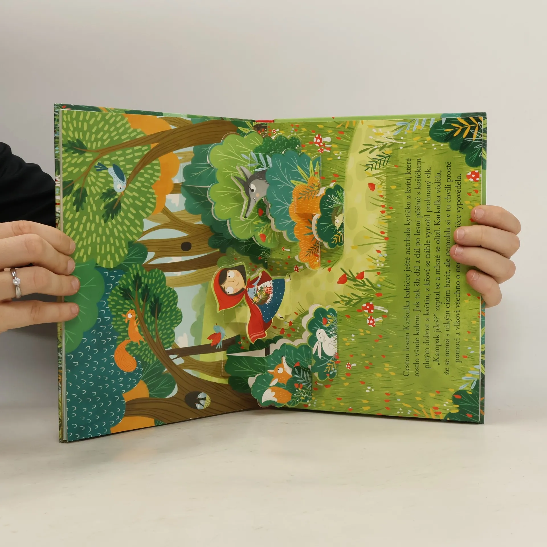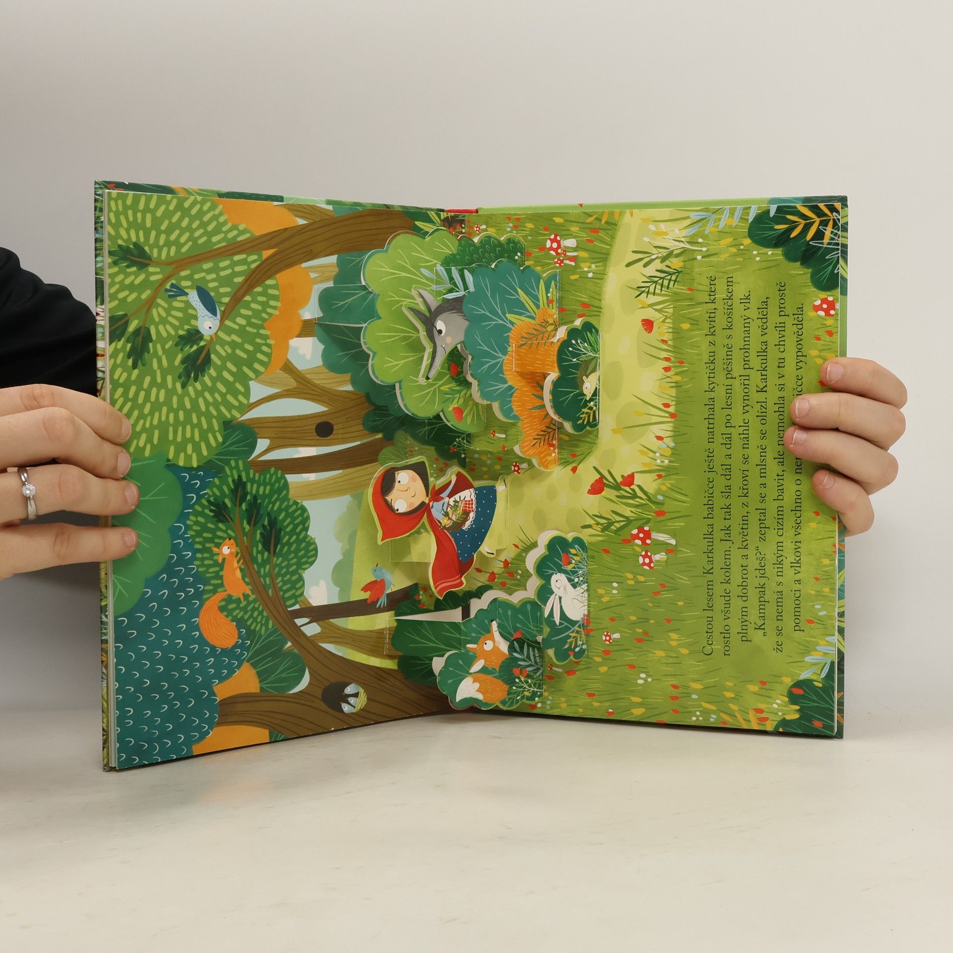 Cestou za babičkou Karkulka v lese potká hladového vlka, kterému se v hlavě zrodí lstivý plán. Dokáže mu jej někdo překazit? V úchvatném prostorovém leporelu najdete klasickou a dětmi oblíbenou pohádku o Červené karkulce. Zapojte do četby také děti a vyprávějte si příběh společně. Díky detailnímu provedení na jednotlivých stránkách vystoupí do prostoru postavy z příběhu i kulisy, které dodají pohádce tu správnou kouzelnou atmosféru.