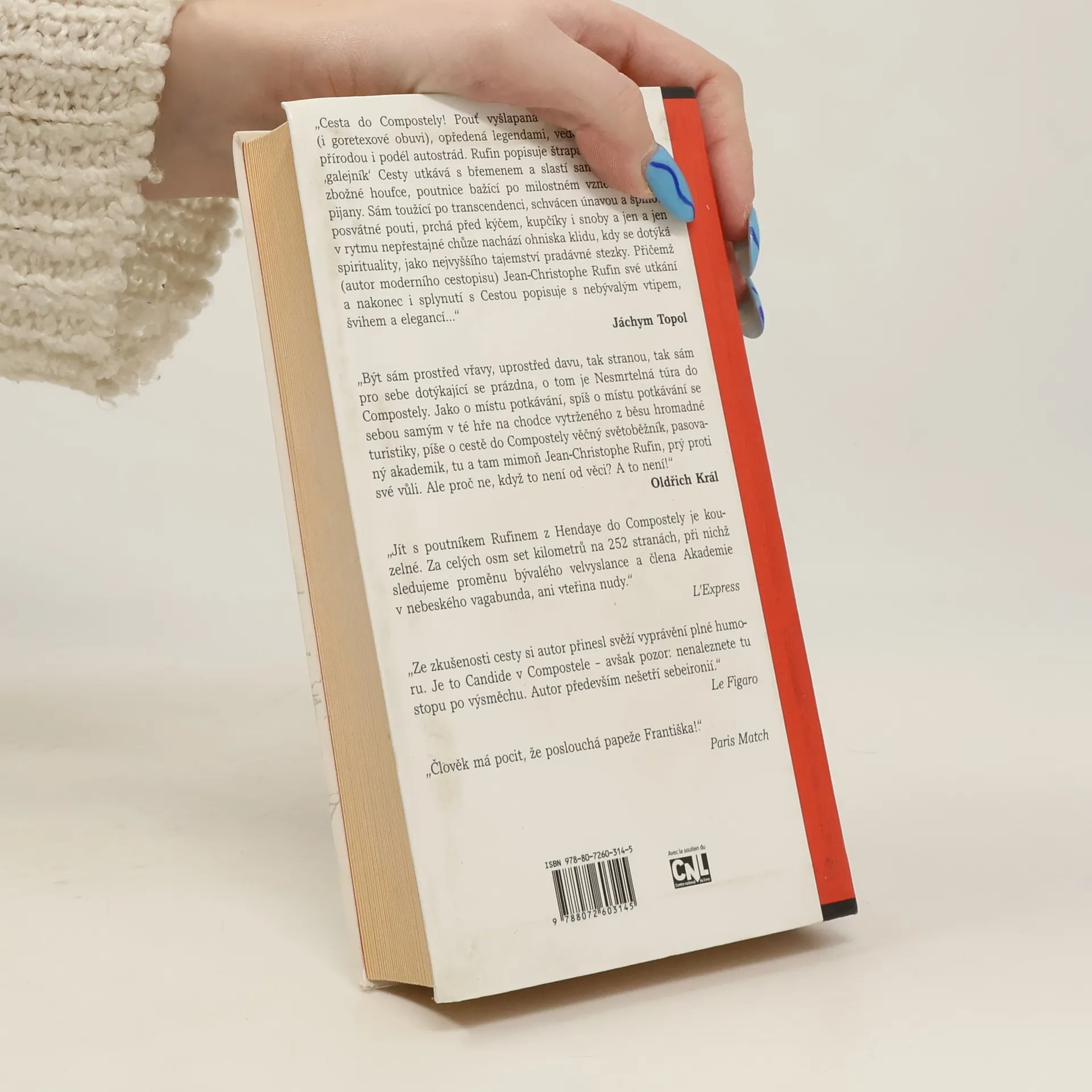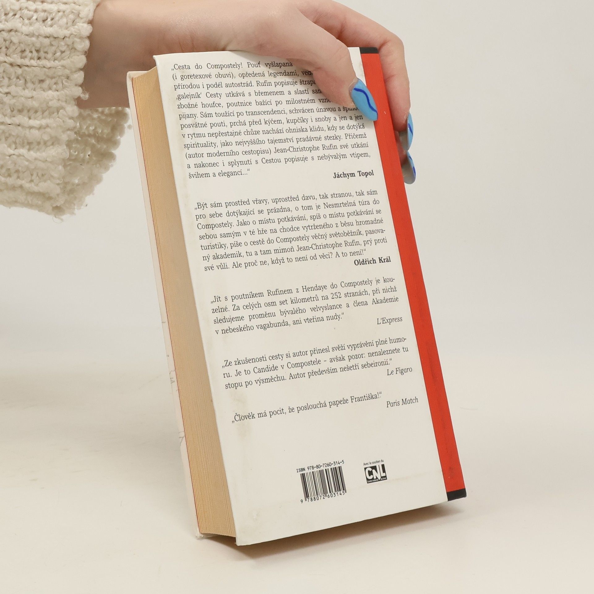 Cesta do Compostely! Pouť vyšlapaná už milióny opánků (i goretexové obuvi), opředená legendami, vedoucí úchvatnou přírodou i podél autostrád. Rufin popisuje štrapáci, kdy se jako „galejník“ Cesty utkává s břemenem a slastí samoty, potkává zbožné houfce, poutnice bažící po milostném vznětu i třeba pijany. Sám toužící po transcedenci, schvácen únavou a špínou posvátné pouti, prchá před kýčem, (kupčíky) i snoby a jen a jen v rytmu nepřestajné chůze nachází ohniska klidu, kdy se dotýká spirituality, jako nejvyššího tajemství pradávné stezky. Přičemž (autor moderního cestopisu) Jean Christophe Rufin své utkání a nakonec i splynutí s Cestou popisuje s nebývalým vtipem, švihem a elegancí …