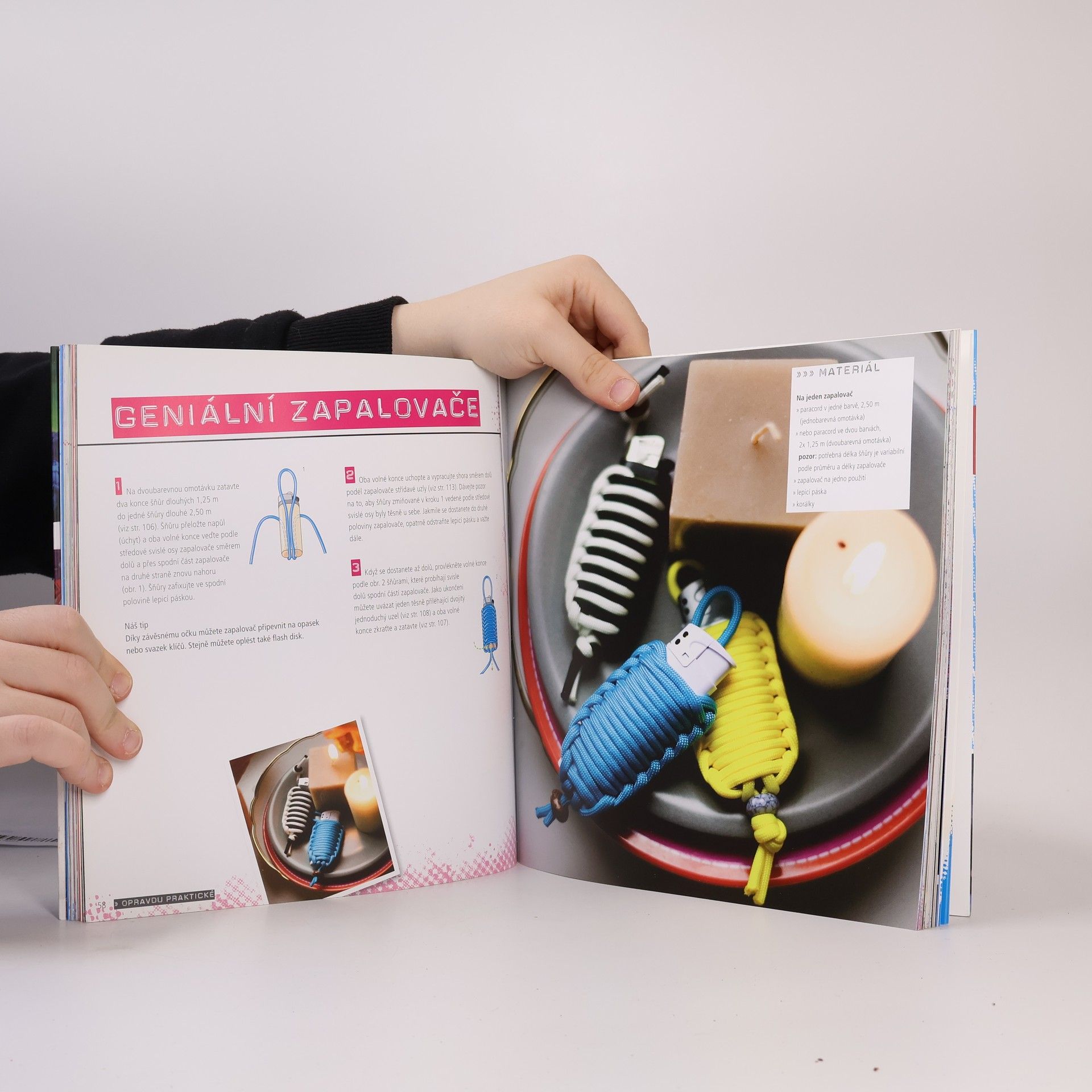 Paracord padáková šňůra je skvělým materiálem pro všechny, kteří rádi tvoří a má praktické využití. Tato outdoorová šňůra je velice robustní a stabilní a dá se nádherně vázat, splétat a uzlovat. S naší knihou vám chceme otevřít bránu do barevného světa paracordu. Najdete v ní přes 50 nápadů, které přinesou do vašeho života barvu a změnu. Svému nábytku propůjčíte díky paracordu zcela nový vzhled, praktičtí každodenní pomocníci jako jsou kapesní svítilny, kola nebo vodítka pro pejsky se stanou nádhernými unikáty. Můžete si z nich vytvořit i nápadité a módní náramky, šňůrky na brýle, řetízky, prstýnky, opasky a mnoho dalšího.