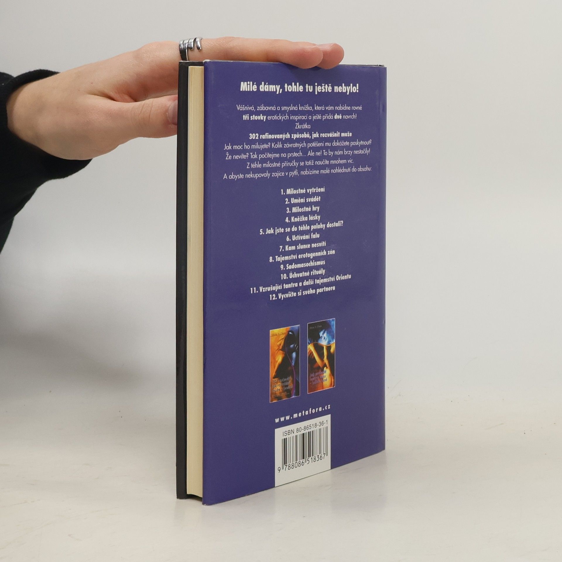 "Tajemství nespočívá ve fyzické kráse či v dokonalé technice, ale v odvaze, s níž odhalíte své nejniternější ženské já," říká Olivia St. Claire, autorka, jejíž příjmení by v doslovném překladu znamenalo „svatá Klára". A stejně jako se v ní nevinně ctnostné jméno pojí s líbezně lechtivými myšlenkami, tak se i v její knize mísí oddaná láska s nejodvážnějšími „postelovými" vylomeninami. Odvěké umění, jehož cílem vždycky bylo, je a bude připravit muže o rozum a utopit ho v uragánu vášně, se tentokrát zaměřuje na ty nejrafinovanější, pokročile milostné techniky a poskytuje nám tu nejžhavější inspiraci. Kdybychom chtěly vyzkoušet každý den jeden z jejích geniálních nápadů, mohly bychom dnes začít u prvního a ještě by nám vystačily skoro na celý rok.