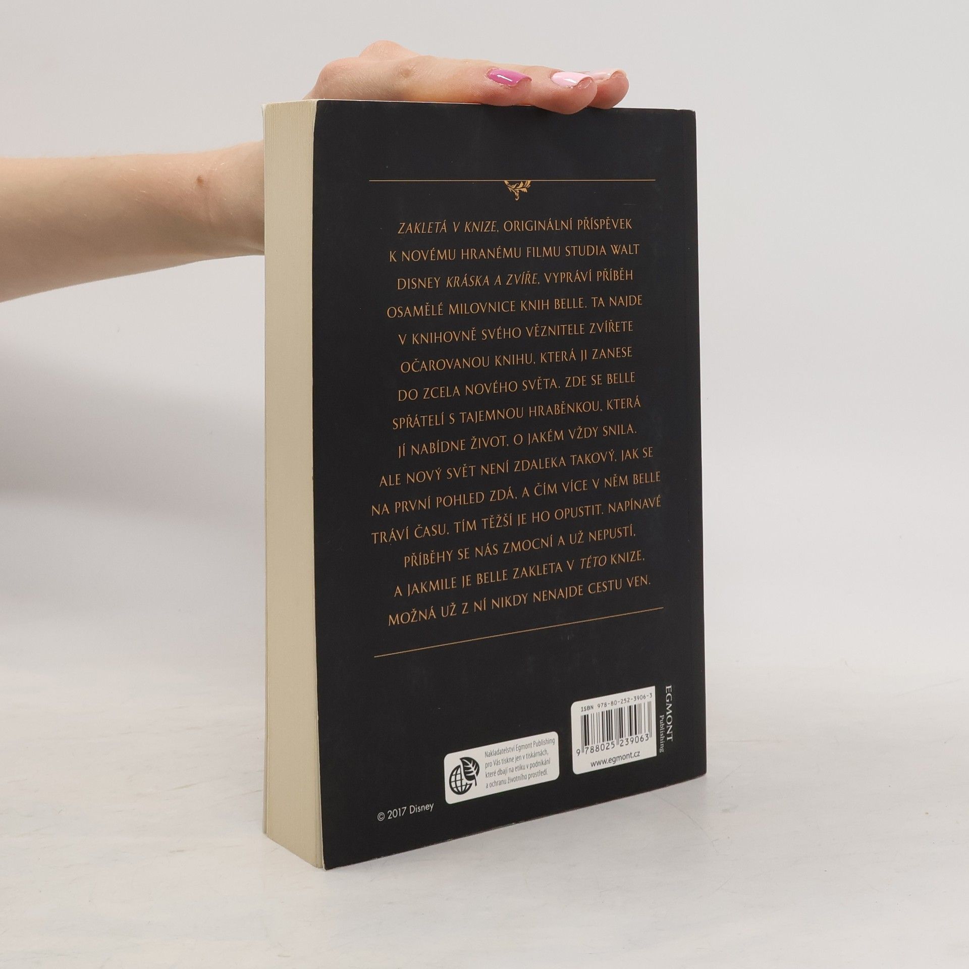 Zakleta v knize, originální příspěvek k novému hranému filmu studia Walt Disney Kráska a zvíře, vypráví příběh osamělé milovnice knih Belle. Ta najde v knihovně svého věznitele zvířete očarovanou knihu, která ji zanese do zcela nového světa. Zde se Belle spřátelí s tajemnou hraběnkou, která jí nabídne život, o jakém vždy snila. Ale nový svět není zdaleka takový, jak se na první pohled zdá, a čím více v něm Belle tráví času, tím těžší je ho opustit. Napínavé příběhy se nás zmocní a už nepustí, a jakmile je Belle zakleta v této knize, možná už z ní nikdy nenajde cestu ven.