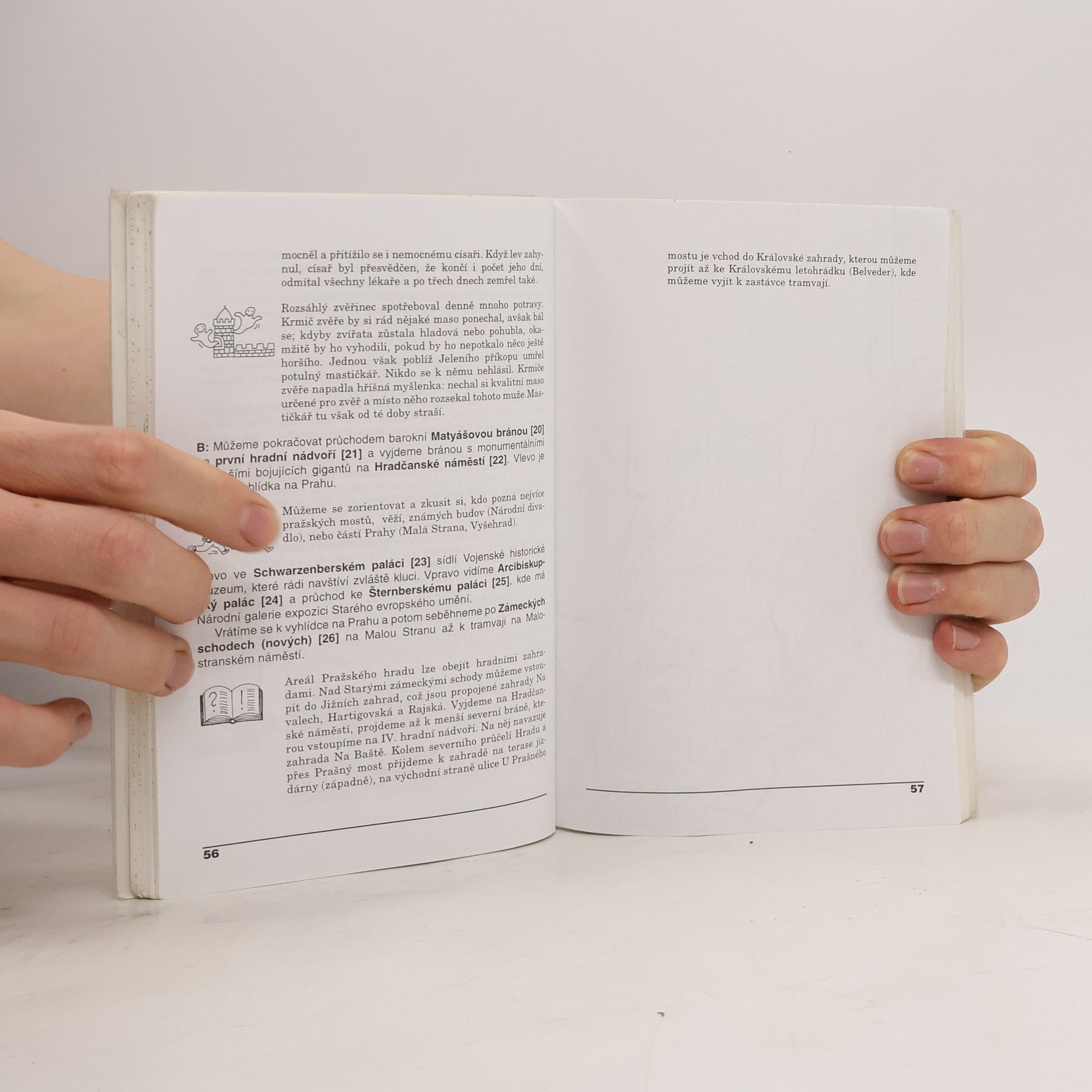 Netradiční soubor kratších vycházek po Praze a jejím blízkém okolí čtivou formou popisuje zajímavosti, pověsti, ale také hřiště a nabízí hry, které je možné si cestou zahrát. Průvodce je vhodný pro rodiče s dětmi ve věku od 5 do 13 let, pro vedoucí dětských skupin a učitele základních škol. Jednotlivé trasy přizpůsobené dětem lze absolvovat během dvou až pěti hodin. Orientaci usnadňuje náčrt v úvodu popisu každé trasy. Některé trasy jsou památkově-turistické, jiné jsou vhodné spíše pro sportování nebo vycházku. Zájemci poznají blíže nejen Pražský hrad, ale objeví i staroměstské průchody, mohou se vydat na neobvyklou prohlídku Prahy ze břehů podél Vltavy a vyzkoušet sportovní areály v Chuchli nebo v Kunratickém lese. Průvodce není určen jen pro mimopražské návštěvníky a školní výlety, mnoho zajímavostí objeví i rodilí Pražáci.