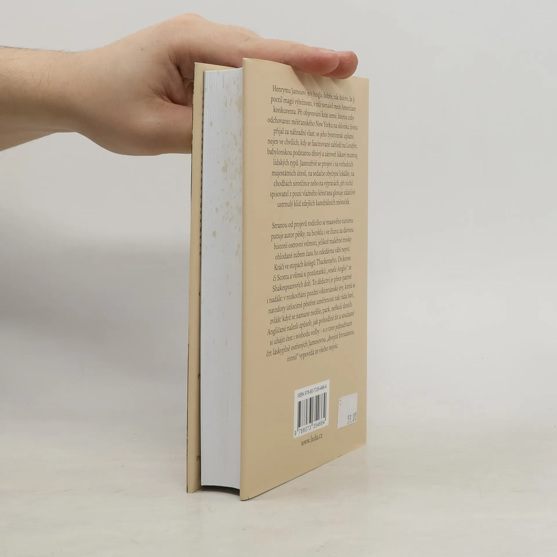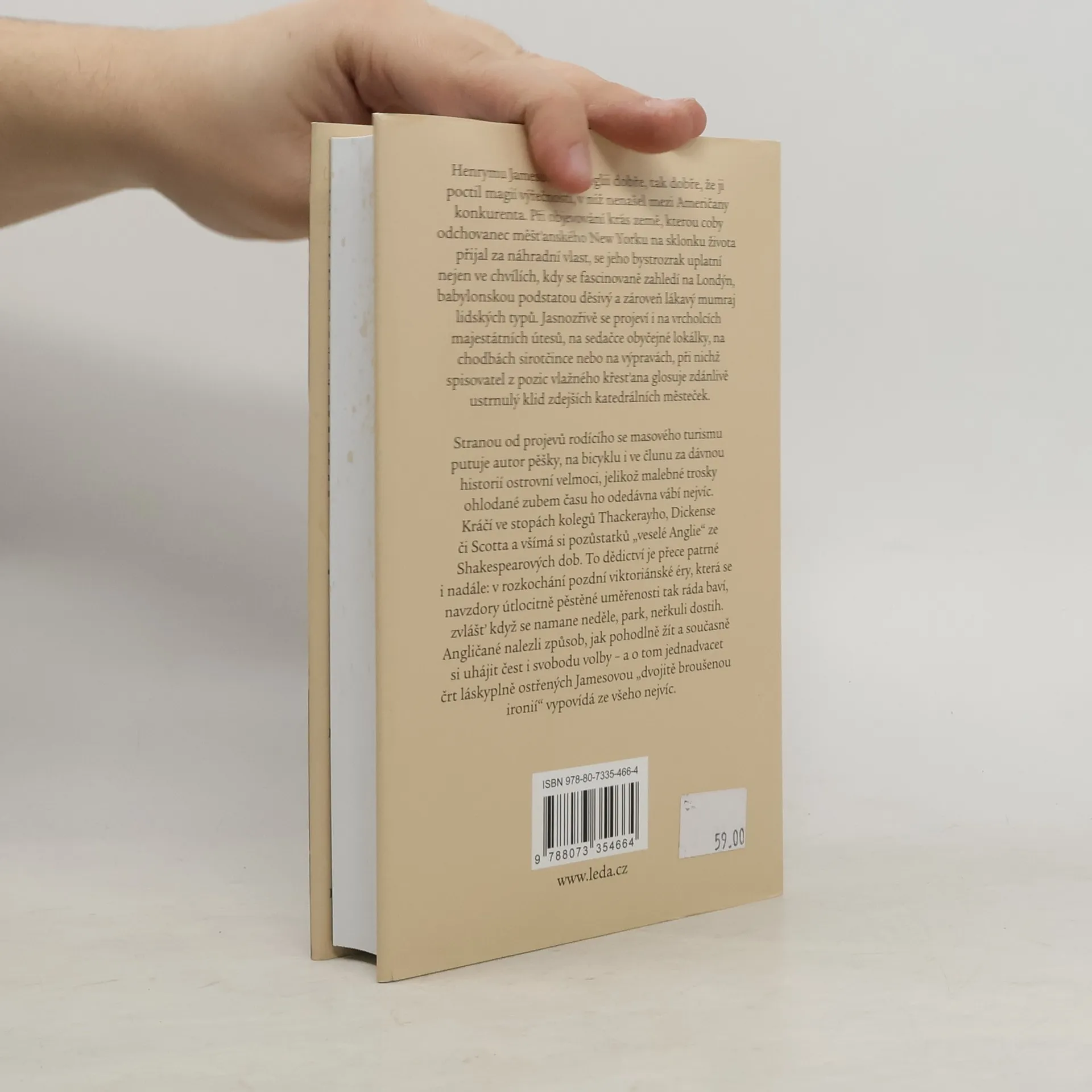 Henrymu Jamesovi je v Anglii dobře, tak dobře, že ji poctil magií výřečnosti, v níž svého času nenašel mezi Američany konkurenta. Při objevování krás země, kterou coby odchovanec měšťanského New Yorku na sklonku života přijal za náhradní vlast, se jeho bystrozrak uplatní nejen ve chvílích, kdy se fascinovaně zahledí na Londýn, babylonskou podstatou děsivý a zároveň lákavý mumraj lidských typů. Jasnozřivě se projeví i na vrcholcích majestátních útesů, na sedačce obyčejné lokálky, na chodbách sirotčince nebo na výpravách, při nichž spisovatel z pozic vlažného křesťana glosuje zdánlivě ustrnulý klid zdejších katedrálních městeček. Stranou od projevů rodícího se masového turismu putuje autor pěšky, na bicyklu i ve člunu za dávnou historií ostrovní velmoci, jelikož malebné trosky ohlodané zubem času ho odedávna vábí nejvíc. Kráčí ve stopách kolegů Thackerayho, Dickense či Scotta a všímá si pozůstatků „veselé Anglie“ ze Shakespearových dob. To dědictví je přece patrné i nadále: v rozkochání pozdní viktoriánské éry, která se navzdory útlocitně pěstěné uměřenosti tak ráda baví, zvlášť když se namane neděle, park, neřkuli dostih v Derby. Angličan svého času vynašel způsob, jak pohodlně žít a současně si uhájit čest i svobodu volby – a o tom jednadvacet črt láskyplně ostřených Jamesovou „dvojitě broušenou ironií“ vypovídá ze všeho nejvíc.