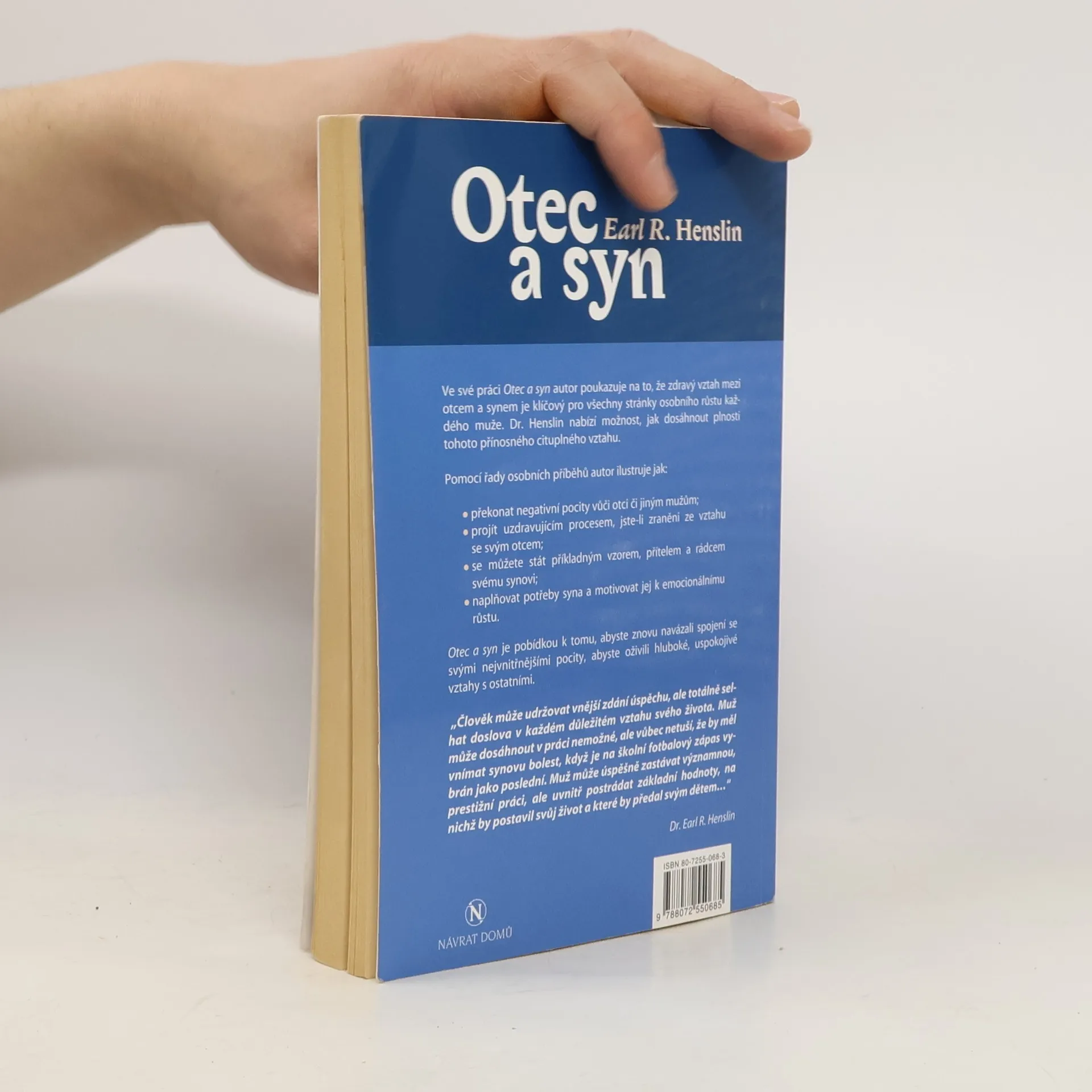 Ve své práci autor poukazuje na to, že zdravý vztah mezi otcem a synem je klíčový pro všechny stránky osobního růstu každého muže. Dr. Henslin nabízí možnost, jak dosáhnout plnosti tohoto přínosnéího cituplného vztahu. (oficiální text vydavatele)