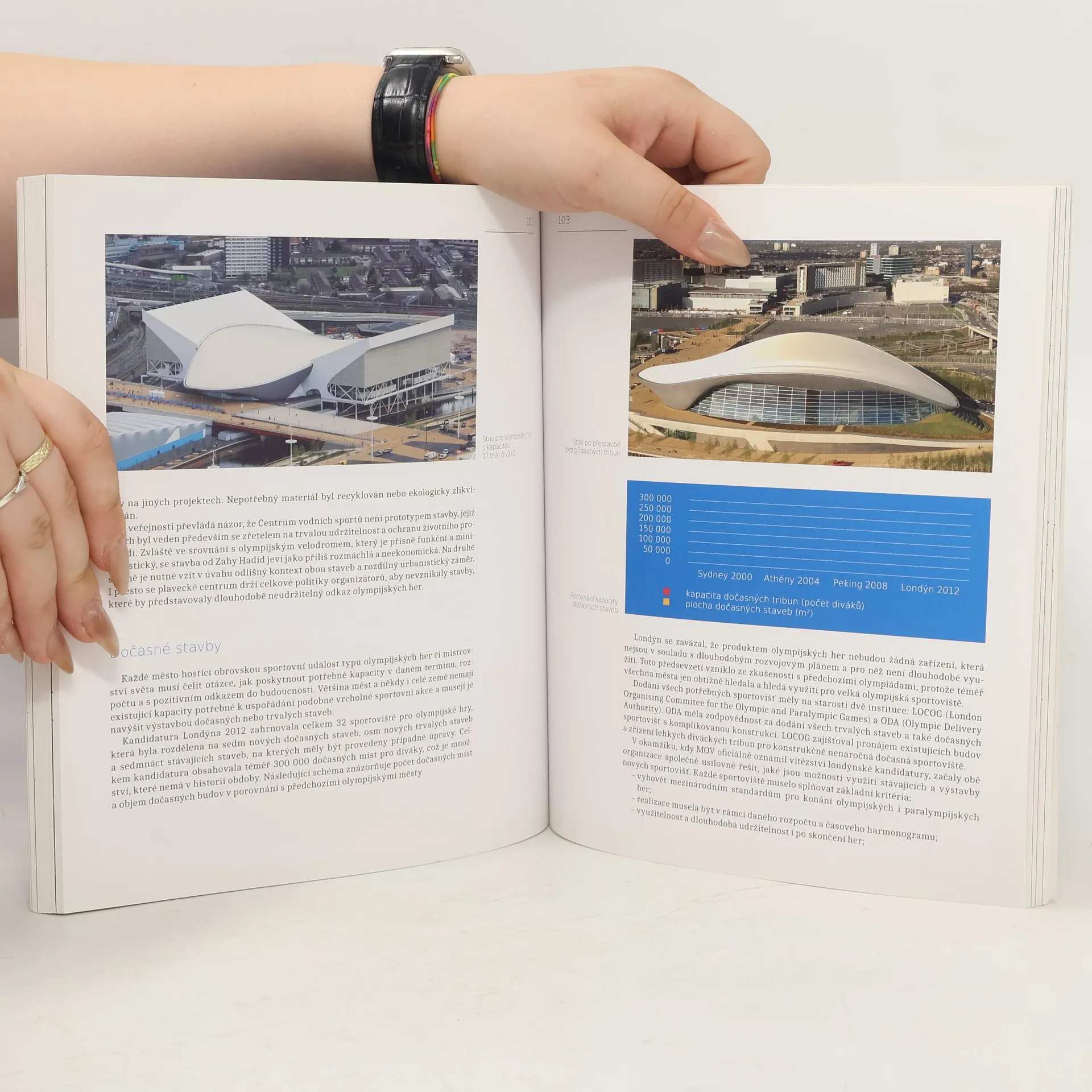 Kniha je pozoruhodným exkurzem do historie architektury a technologie olympijských staveb, přičemž novodobé olympijské hry pojednává o poznání obsáhleji. Neobvyklou problematiku olympijské architektury ovšem autor knihy uvádí do širokých souvislostí, představuje ji z hlediska dopadů na ekonomiku, společnost i životní prostředí. Nabízí také možné perspektivy a výhledy do budoucnosti.