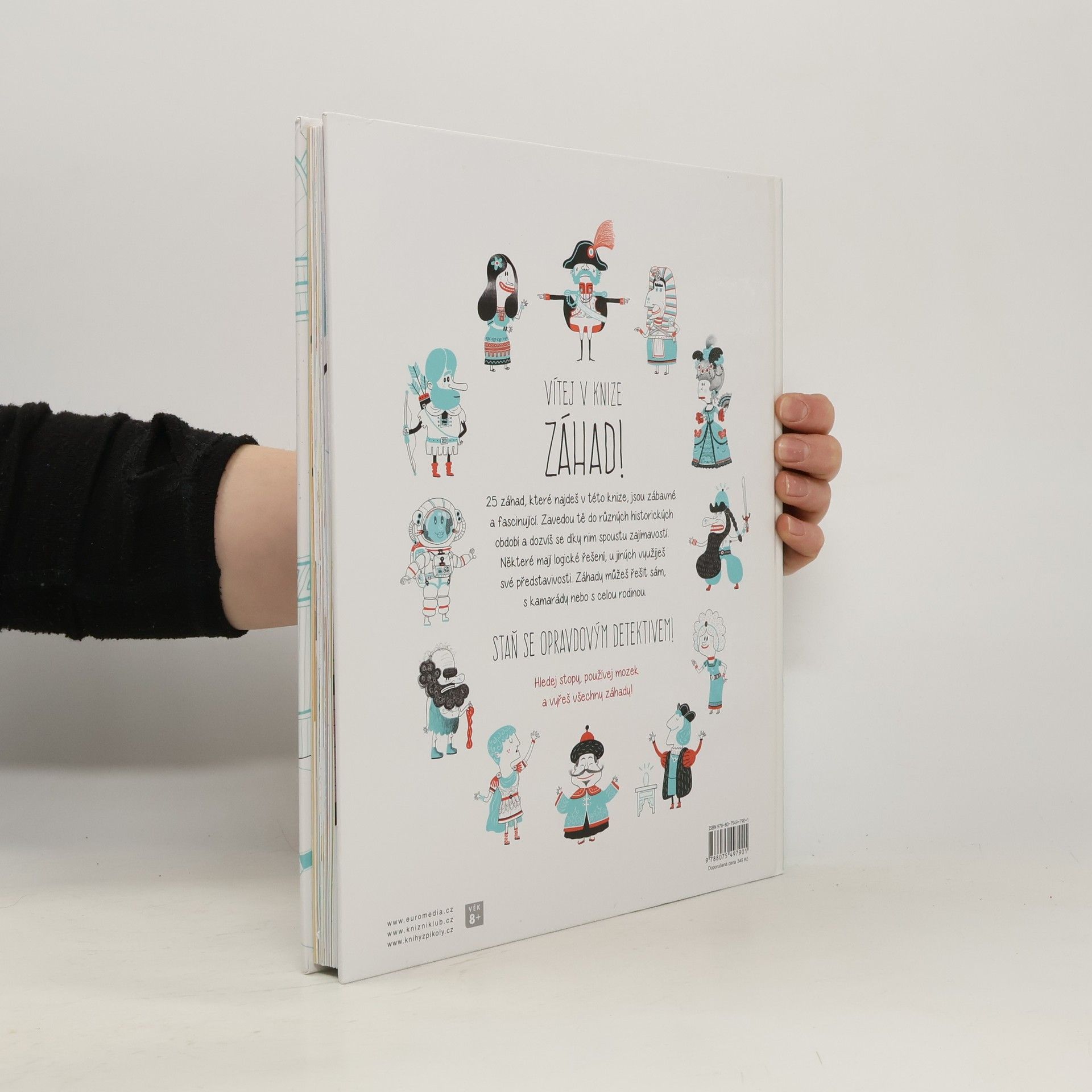 Vítej v knize záhad! Přijdeš na kloub 25 tajuplným záhadám z oblasti historie? Některé mají logické řešení, u jiných využiješ své představivosti. A hlavně – hledej v zábavných obrázcích, a stopu máš nadosah. Záhady můžeš řešit sám, s kamarády nebo s celou rodinou. Staň se opravdovým detektivem! Hledej stopy, používej mozek a vyřeš všechny záhady. Věnováno dětem od 8 let a jejich rodičům, kteří mají chuť přicházet na kloub záhadám.