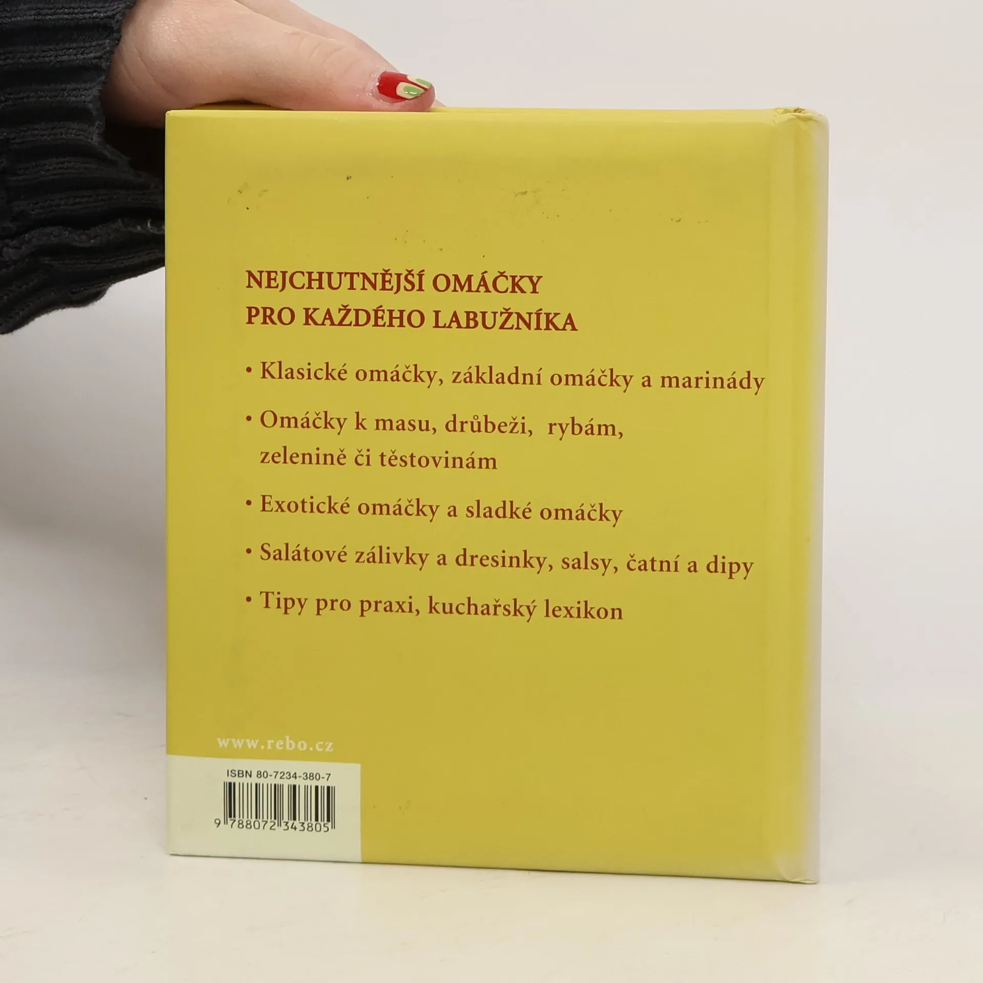 Kniha přináší nejchutnější omáčky pro každého labužníka. Najdete v ní nejen klasické omáčky a marinády, ale také exotické a sladké omáčky. V přípravě pokrmů se můžete inspirovat řadou receptů na omáčky k masu, drůbeži, rybám, zelenině či těstovinám. Nechybí ani recepty na řadu salátových zálivek, dresinků a sals.