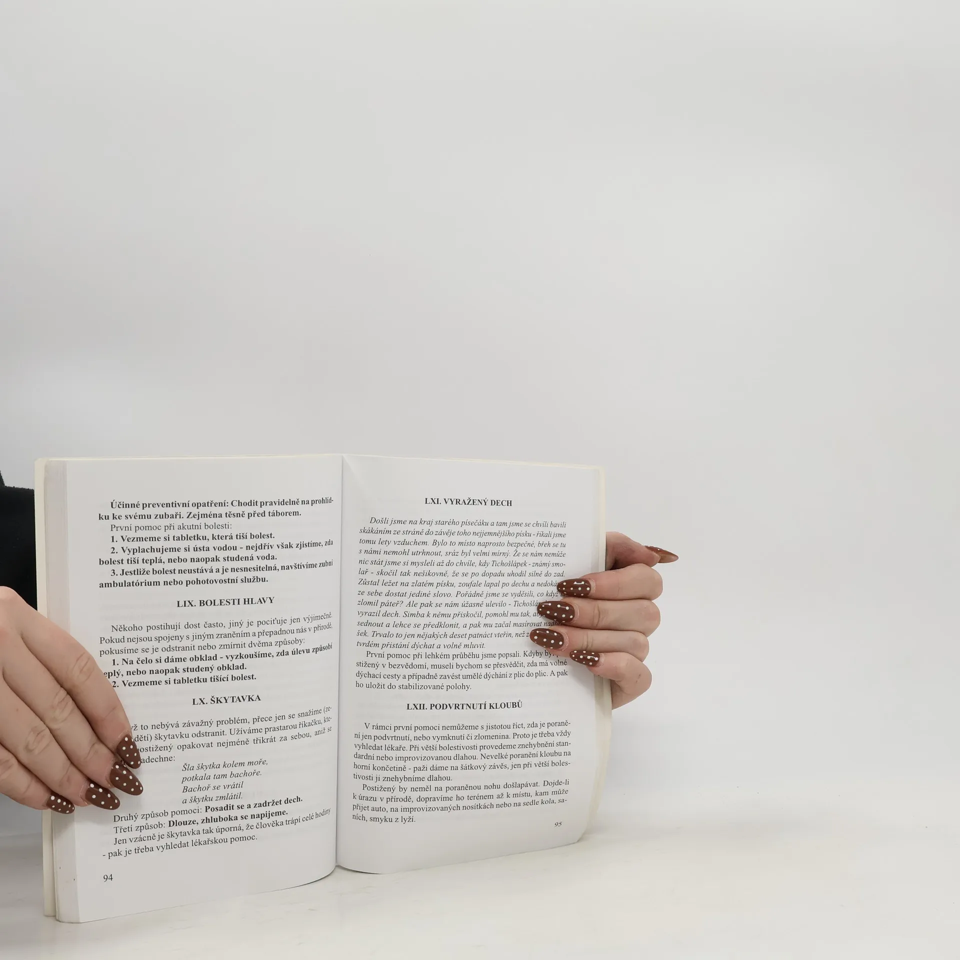 Skautská příručka první pomoci, obsahuje desítky modelových příkladů, často ze "skautské černé kroniky".