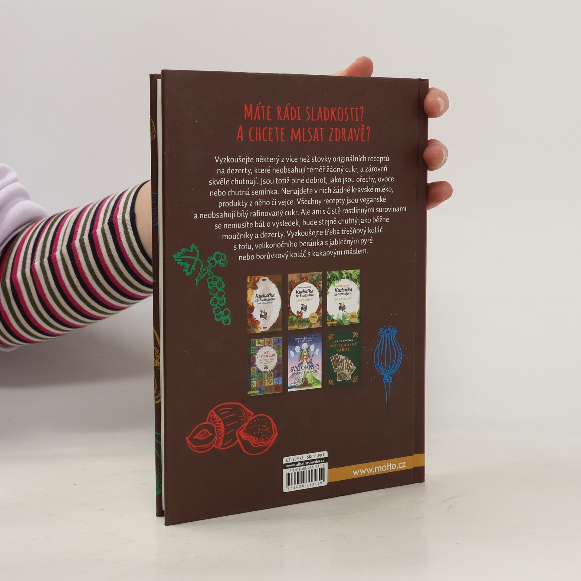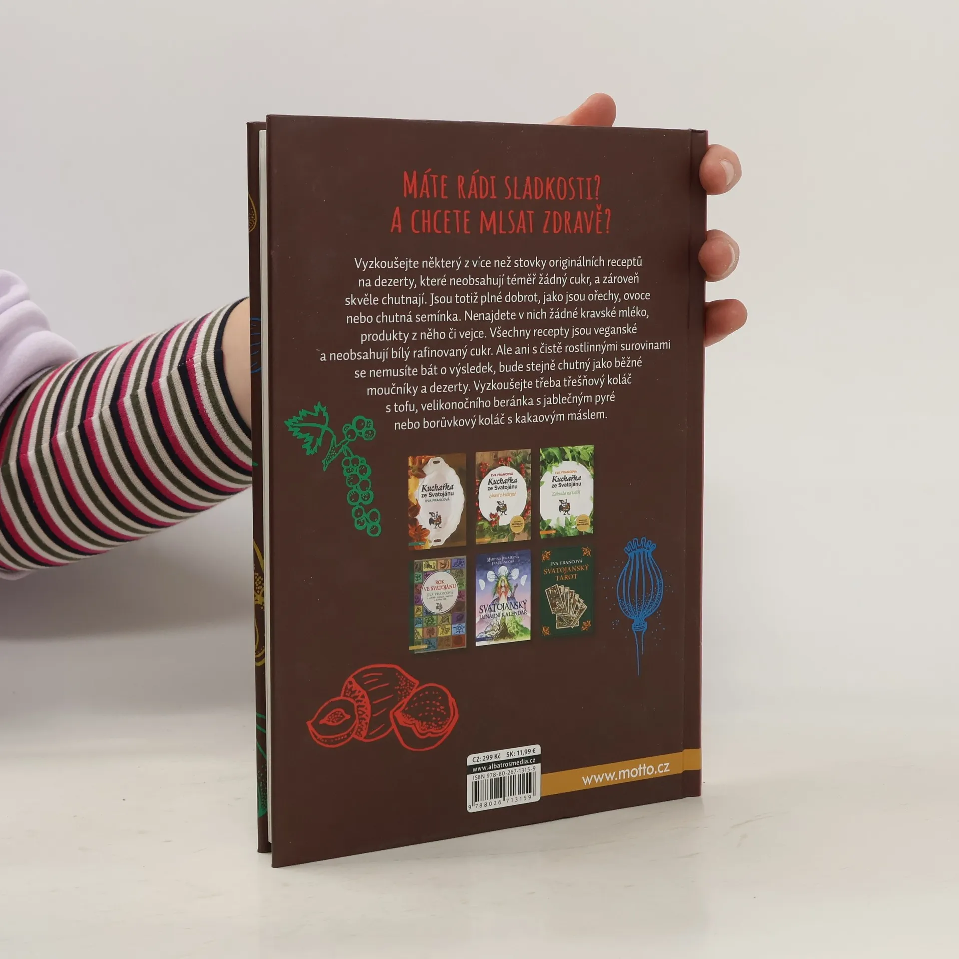 Máte rádi sladkosti? A chcete mlsat zdravě? Vyzkoušejte některý z více než stovky originálních receptů na dezerty, které neobsahují téměř žádný cukr, a zároveň skvěle chutnají. Jsou totiž plné dobrot, jako jsou ořechy, ovoce nebo chutná semínka. Nenajdete v nich však žádné kravské mléko, produkty z něho či vejce. Všechny recepty jsou veganské a neobsahují bílý rafinovaný cukr. Ale ani s čistě rostlinnými surovinami se nemusíte bát o výsledek, bude stejně chutný jako běžné moučníky a dezerty. Vyzkoušejte třeba třešňový koláč s tofu, velikonočního beránka s jablečným pyré nebo borůvkový koláč s kakaovým máslem.