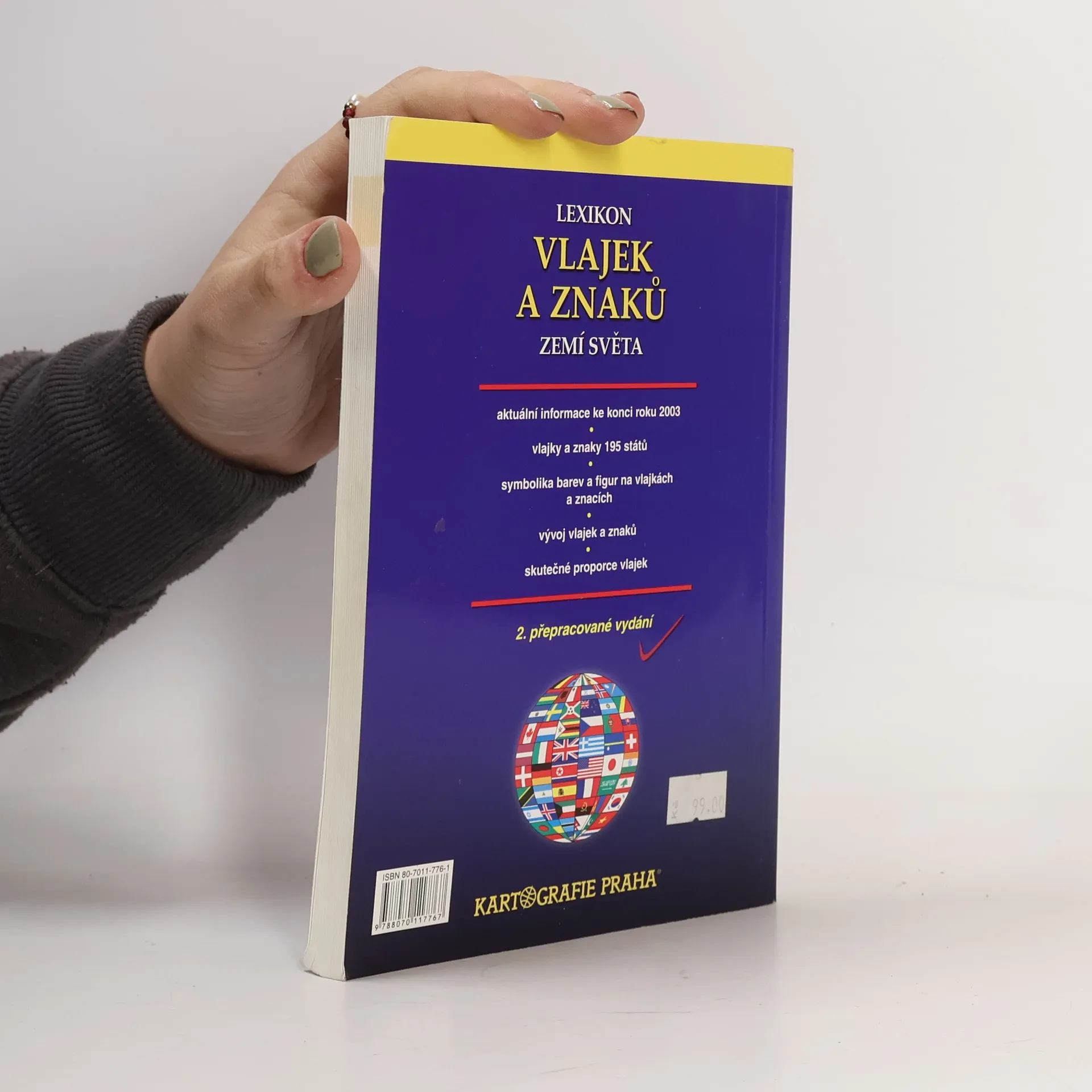 Lexikon vlajek a znaků zemí světa je 2. přepracované vydání - aktuální a obsahuje informace ke konci roku 2003, vlajky a znaky 195 států, stručný historický přehled, politické mapy jednotlivých světadílů, řazeno abecedně, symbolika barev a figur na vlajkách a znacích, vývoj vlajek a znaků, skutečné proporce vlajek.