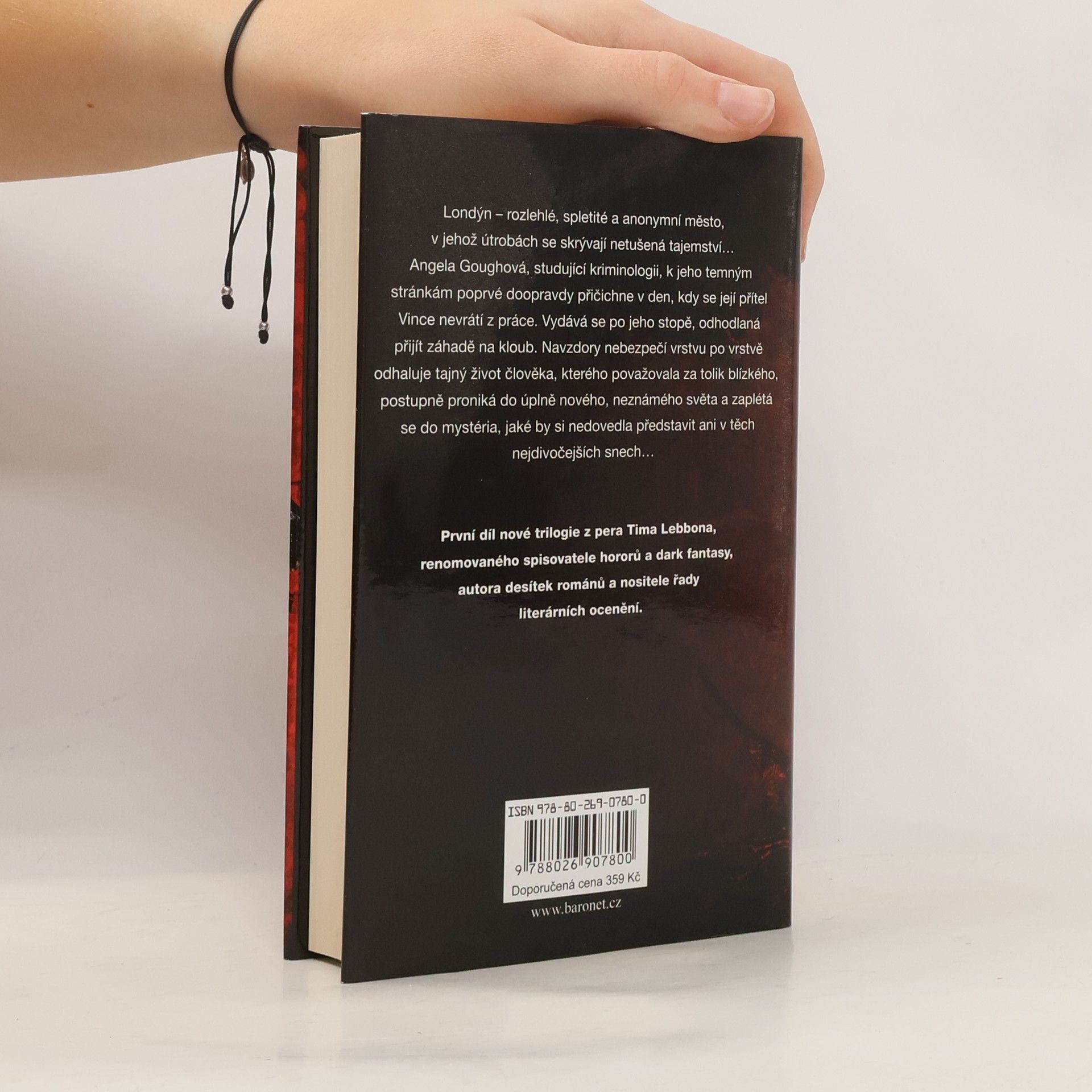 Londýn – rozlehlé, spletité a anonymní město, v jehož útrobách se skrývají netušená tajemství… Angela Goughová, studující kriminologii, k jeho temným stránkám poprvé doopravdy přičichne v den, kdy se její přítel Vincent nevrátí z práce. Vydává se po jeho stopě, odhodlaná přijít záhadě na kloub. Navzdory nebezpečí vrstvu po vrstvě odhaluje tajný život člověka, kterého považovala za tolik blízkého, postupně proniká do úplně nového, neznámého světa a zaplétá se do mystéria, jaké by si nedovedla představit ani v těch nedivočejších snech… První díl nové trilogie z pera Tima Lebbona, renomovaného spisovatele hororů a dark fantasy, autora desítek románů a nositele řady literárních ocenění.